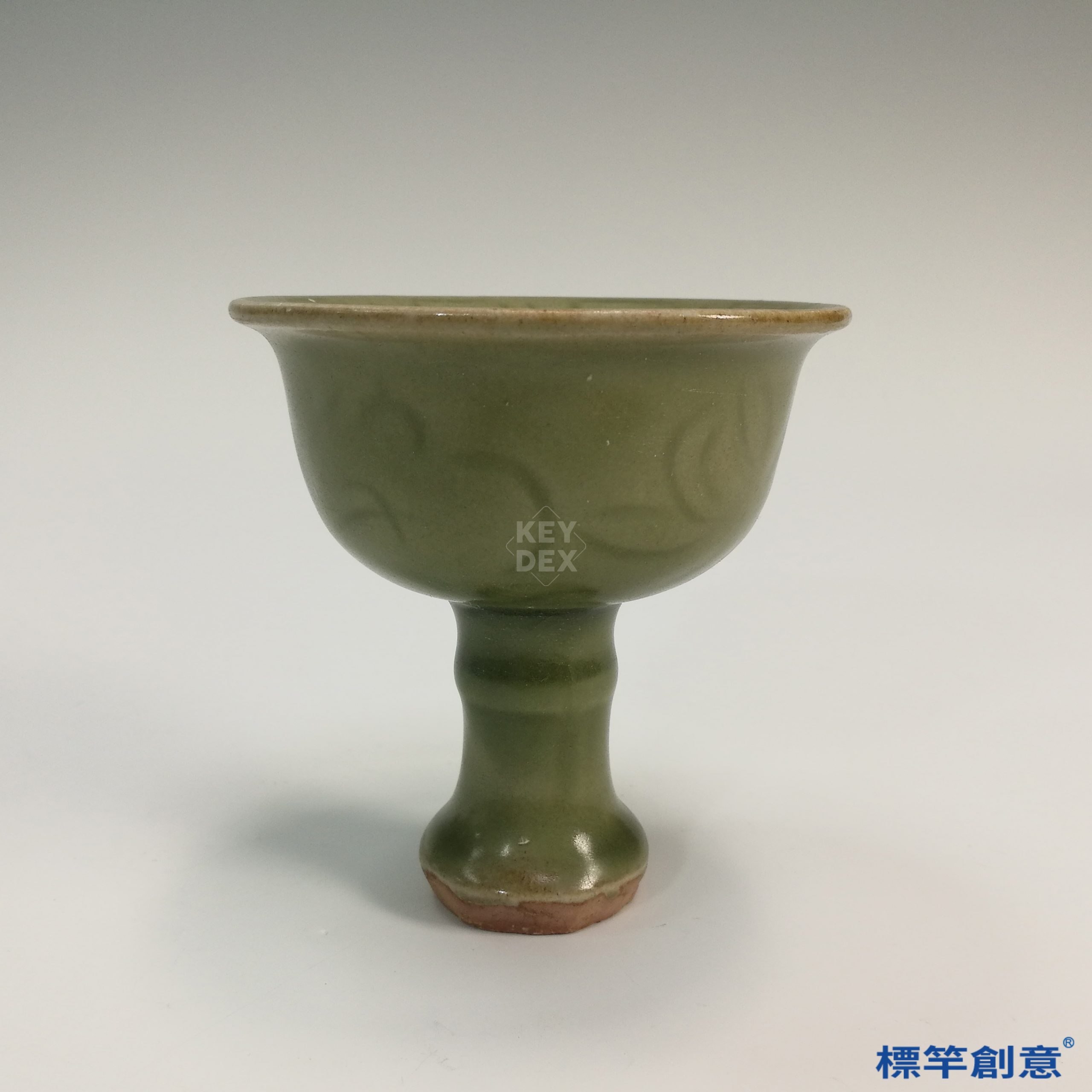 HA053 元代龍泉窯土青瓷刻花高足杯