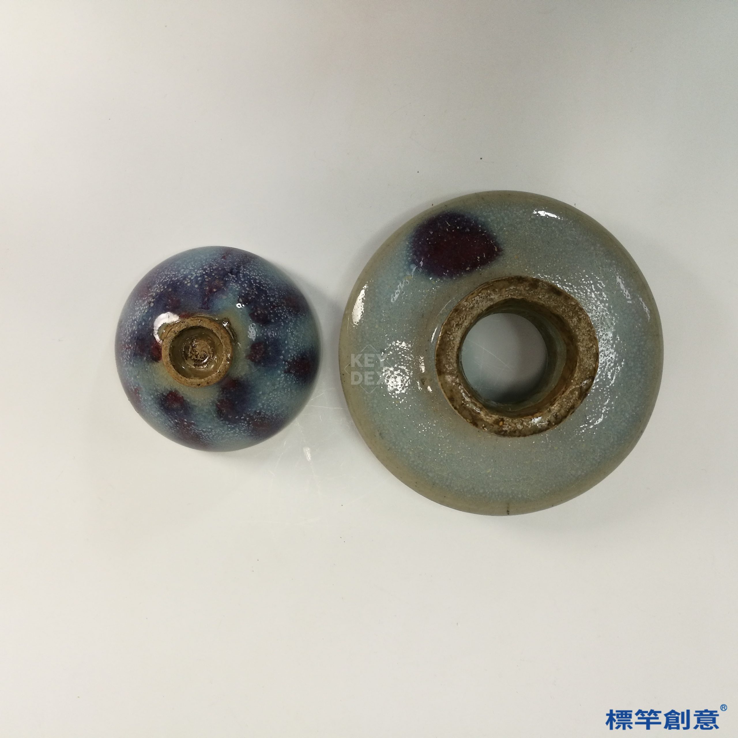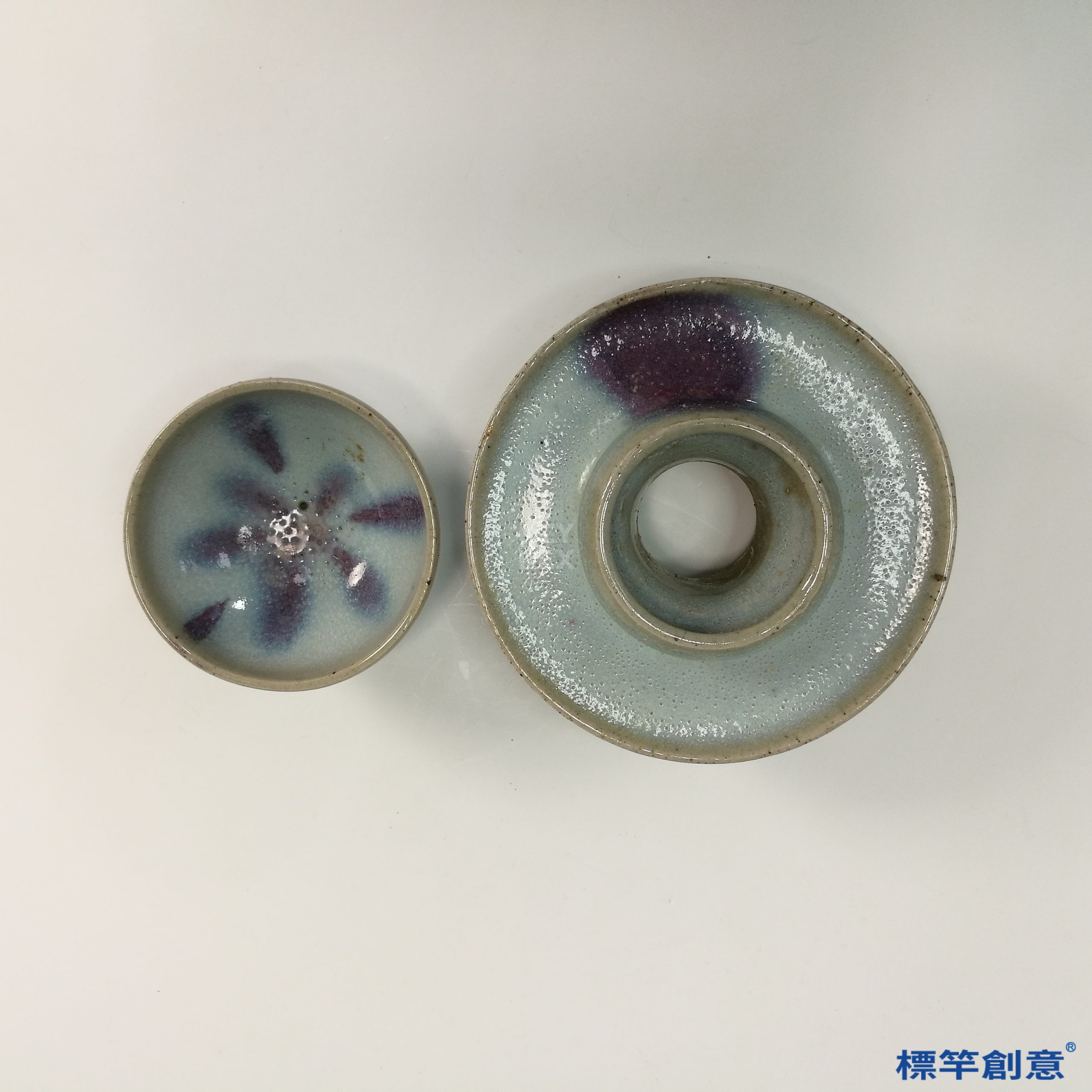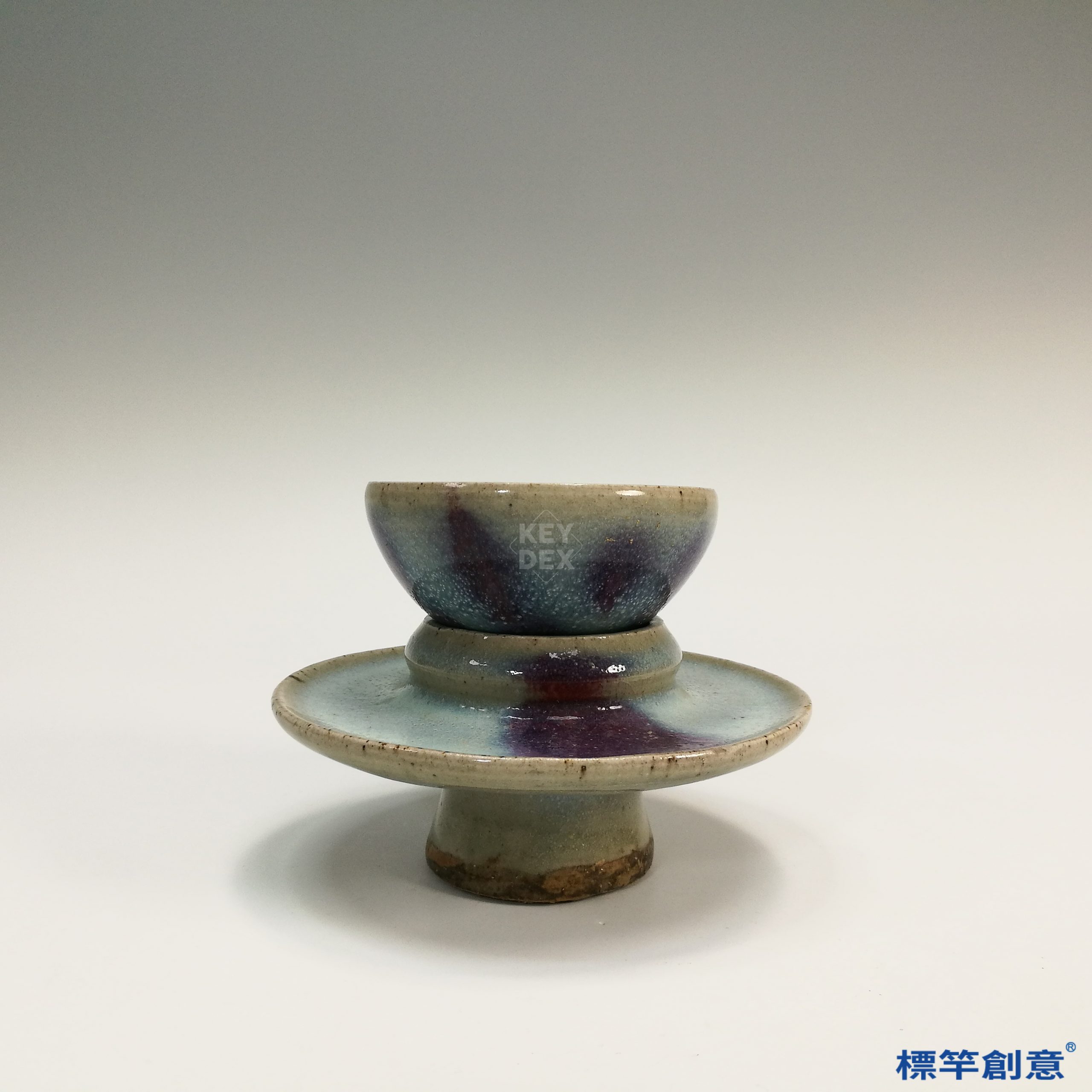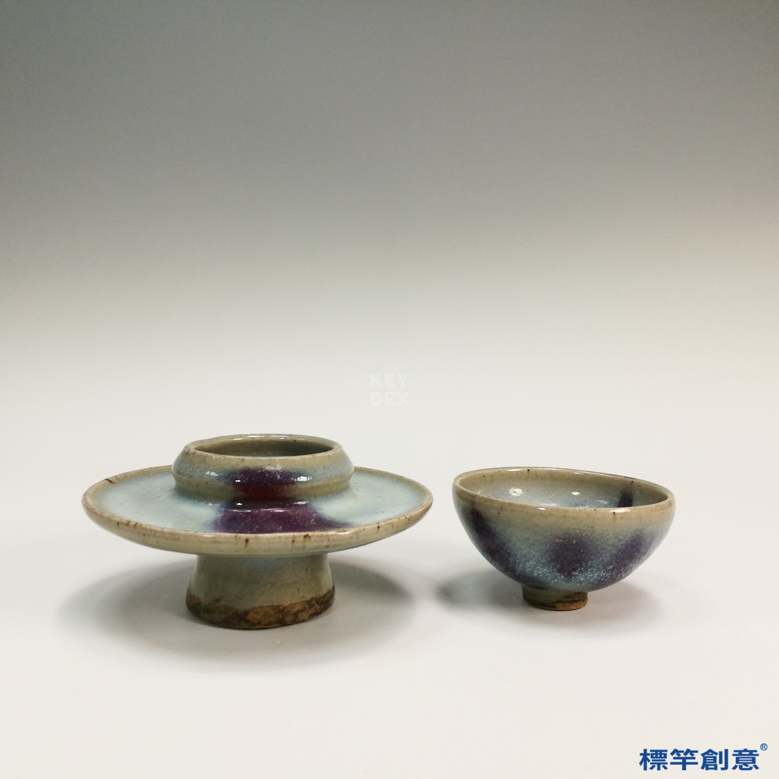HA065 元代鈞窯淺藍釉紫斑盞托一組