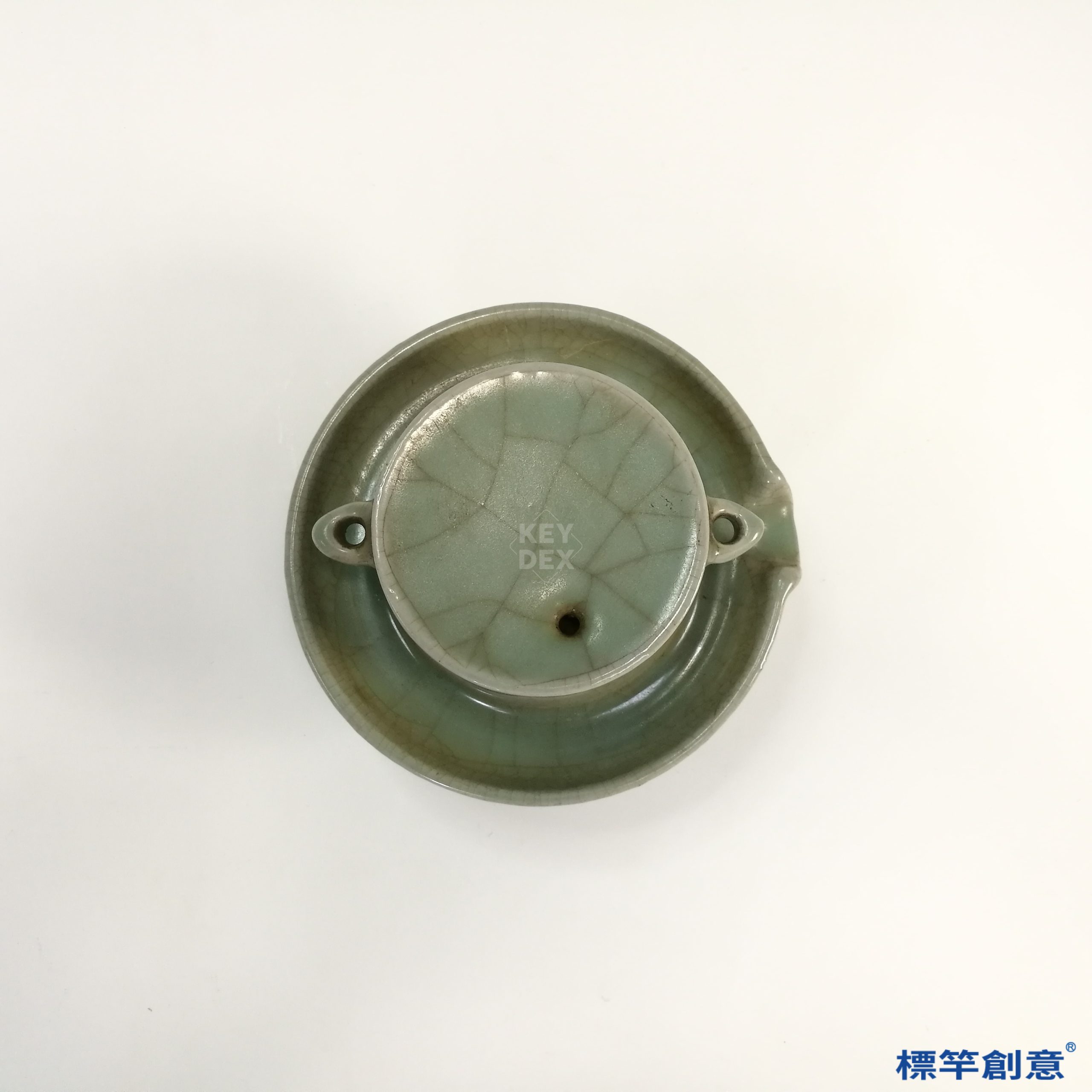 HA069 元代龍泉窯青瓷冰裂紋點茶茶磨