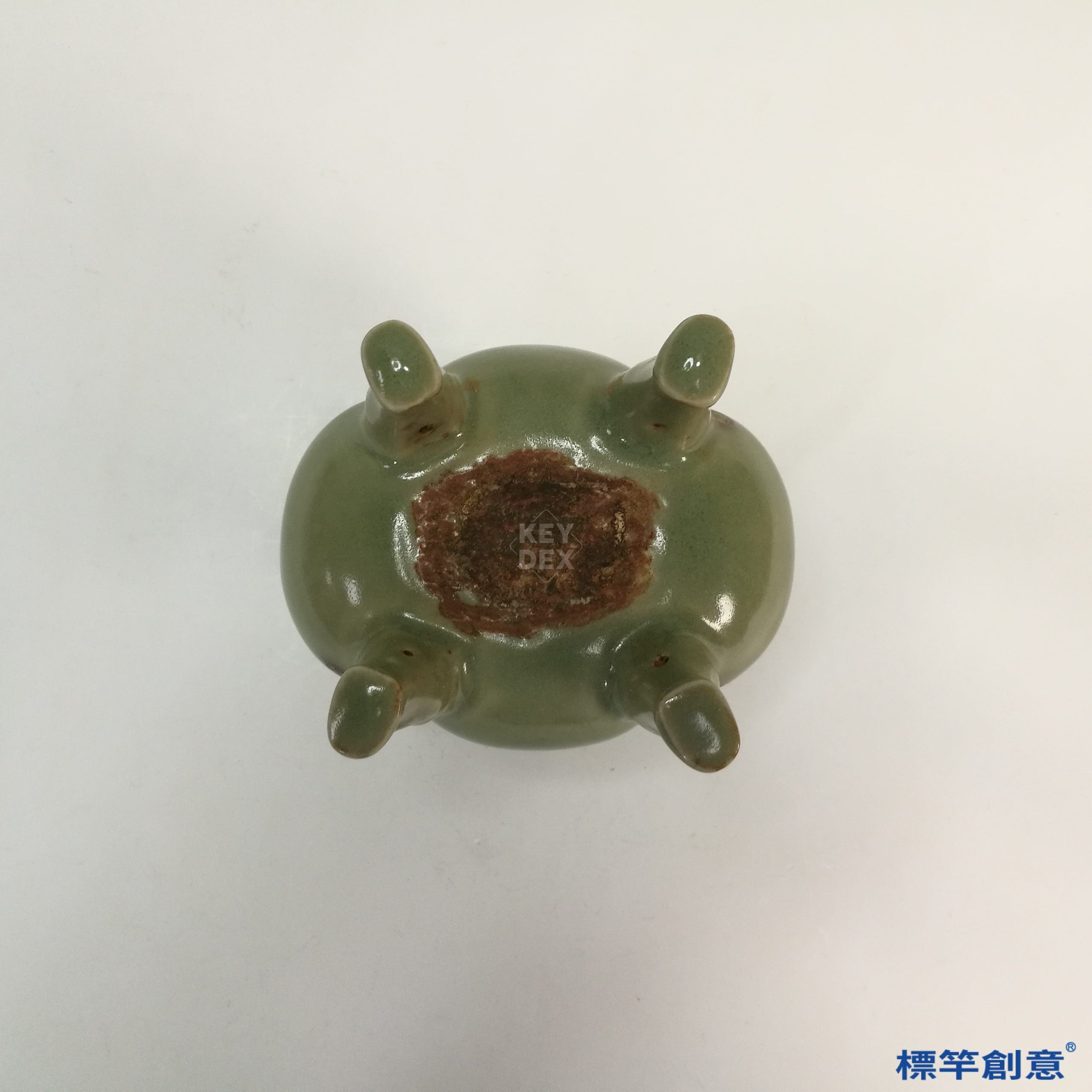 HA078 元代龍泉窯粉青釉點褐彩四足鼎式香爐