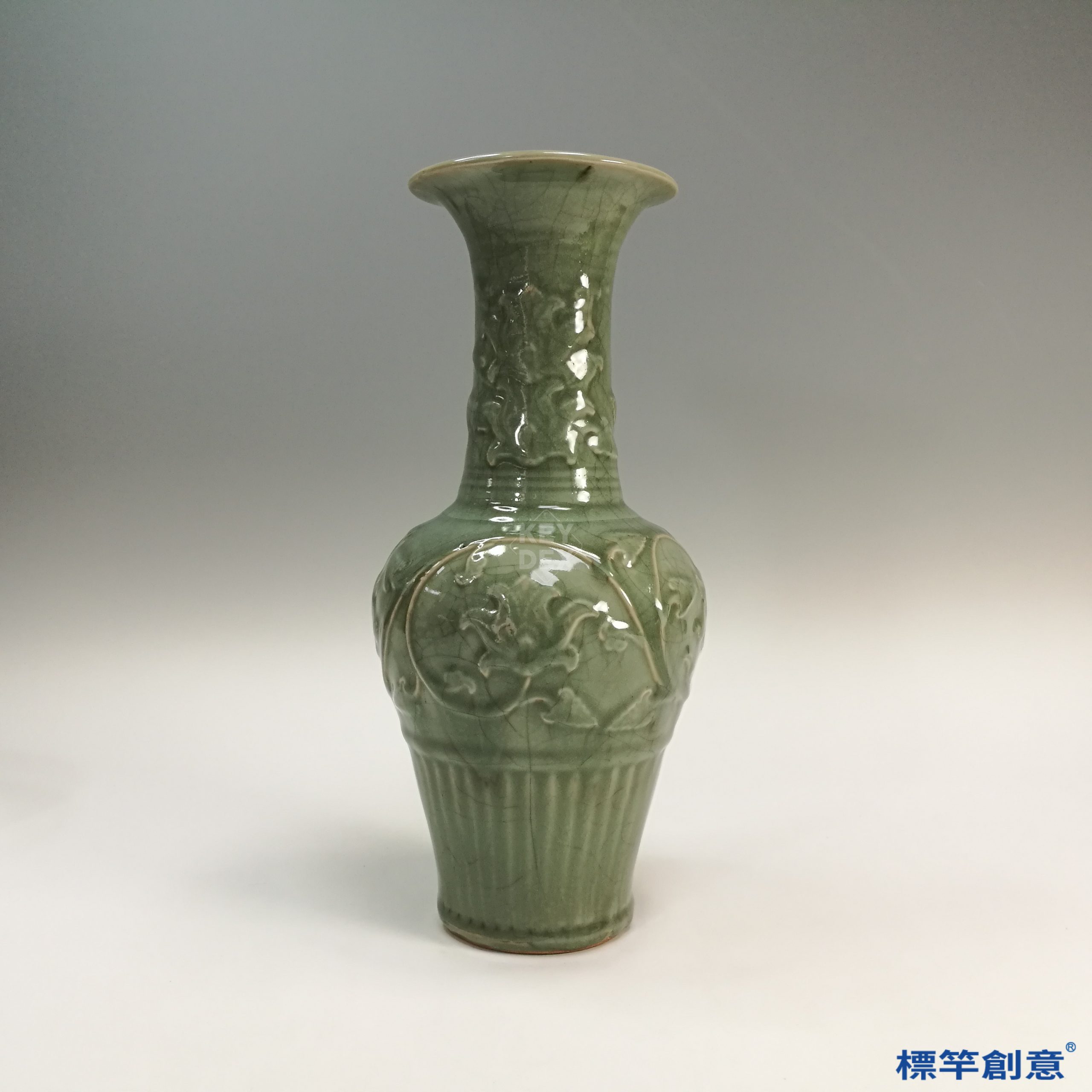 HA081 元代龍泉窯青瓷刻纏枝蓮紋鳳尾瓶