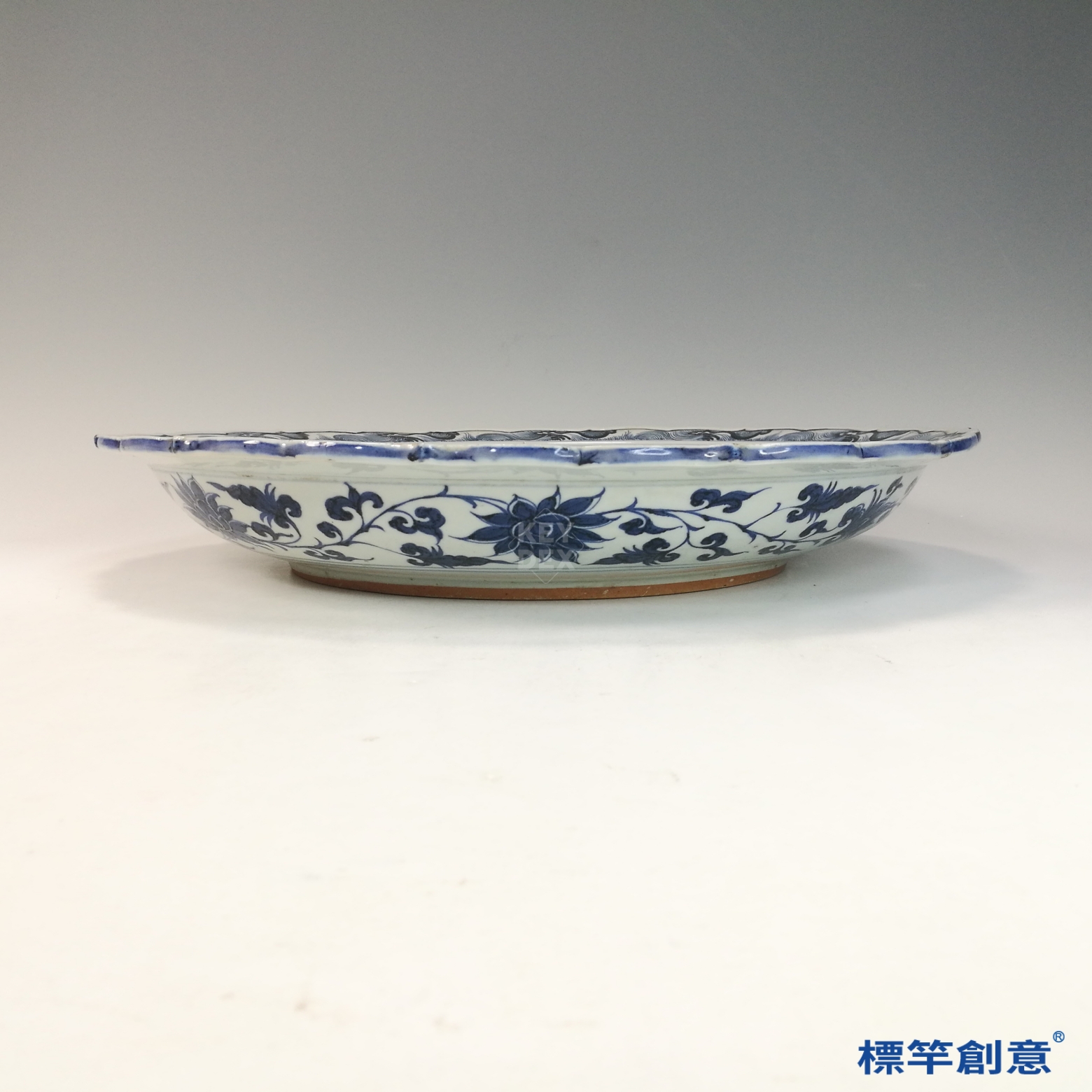 HA102 元代景德鎮窯青花繪花卉紋葵口大盤
