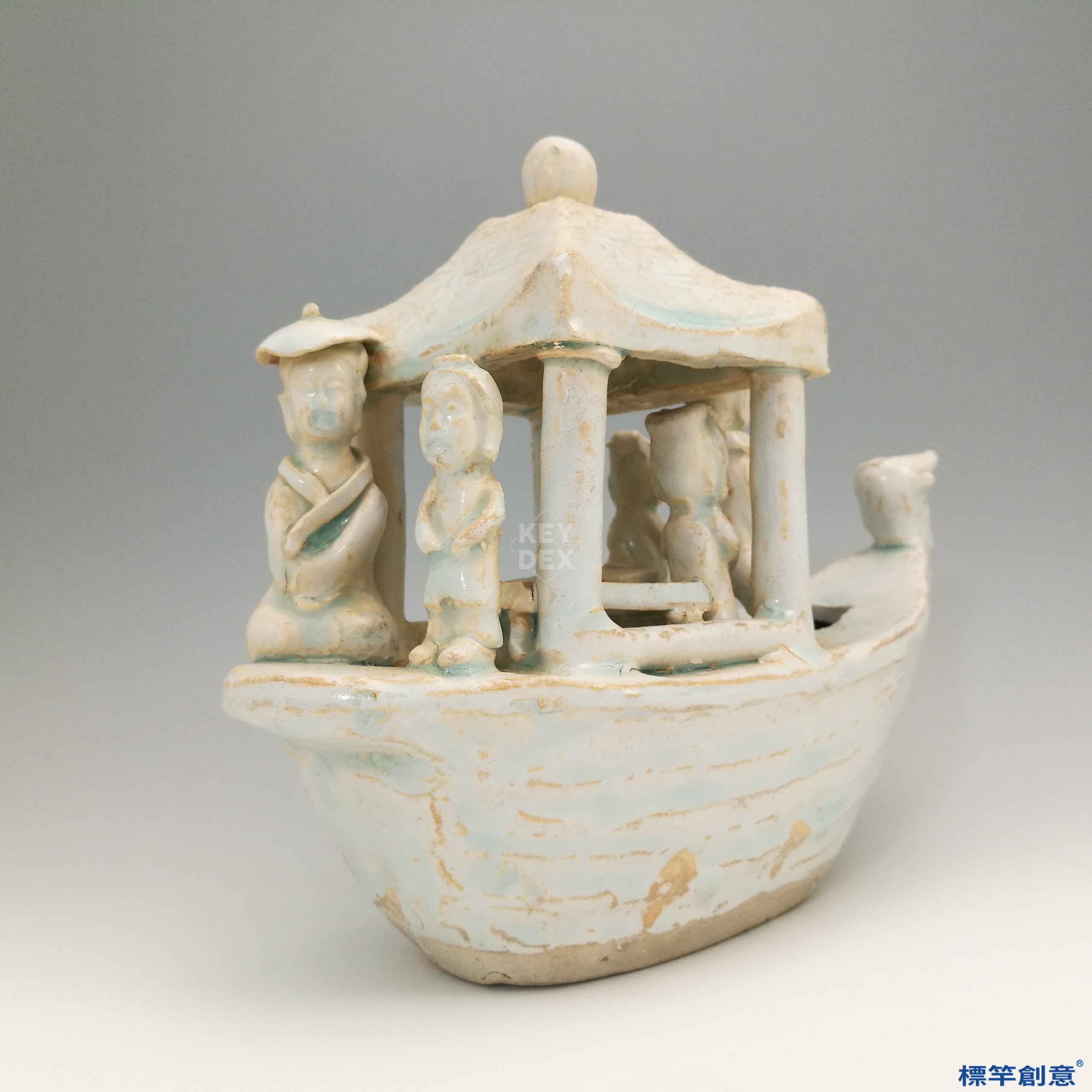 HB006 明代湖田窯青白瓷塑人物陪葬船舟