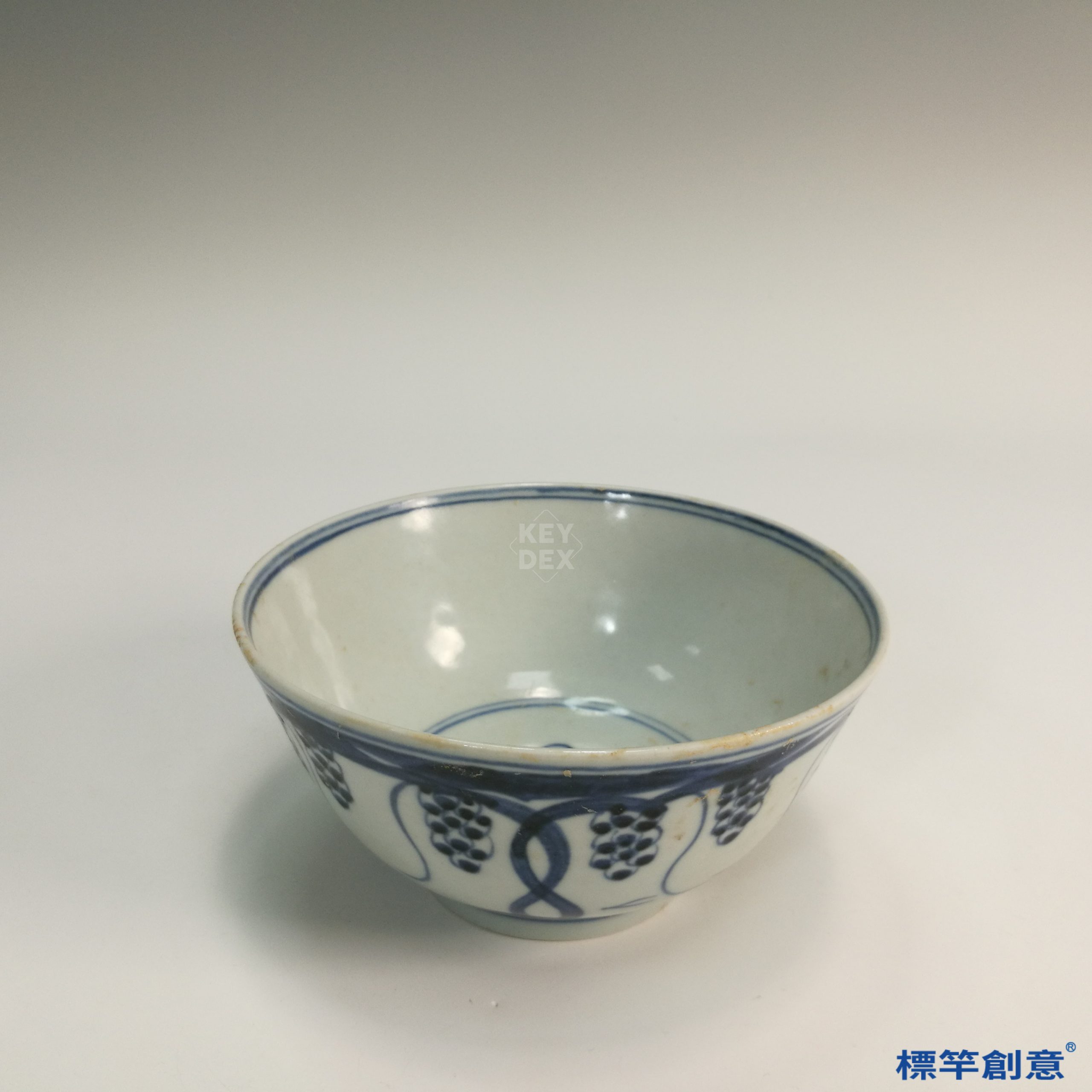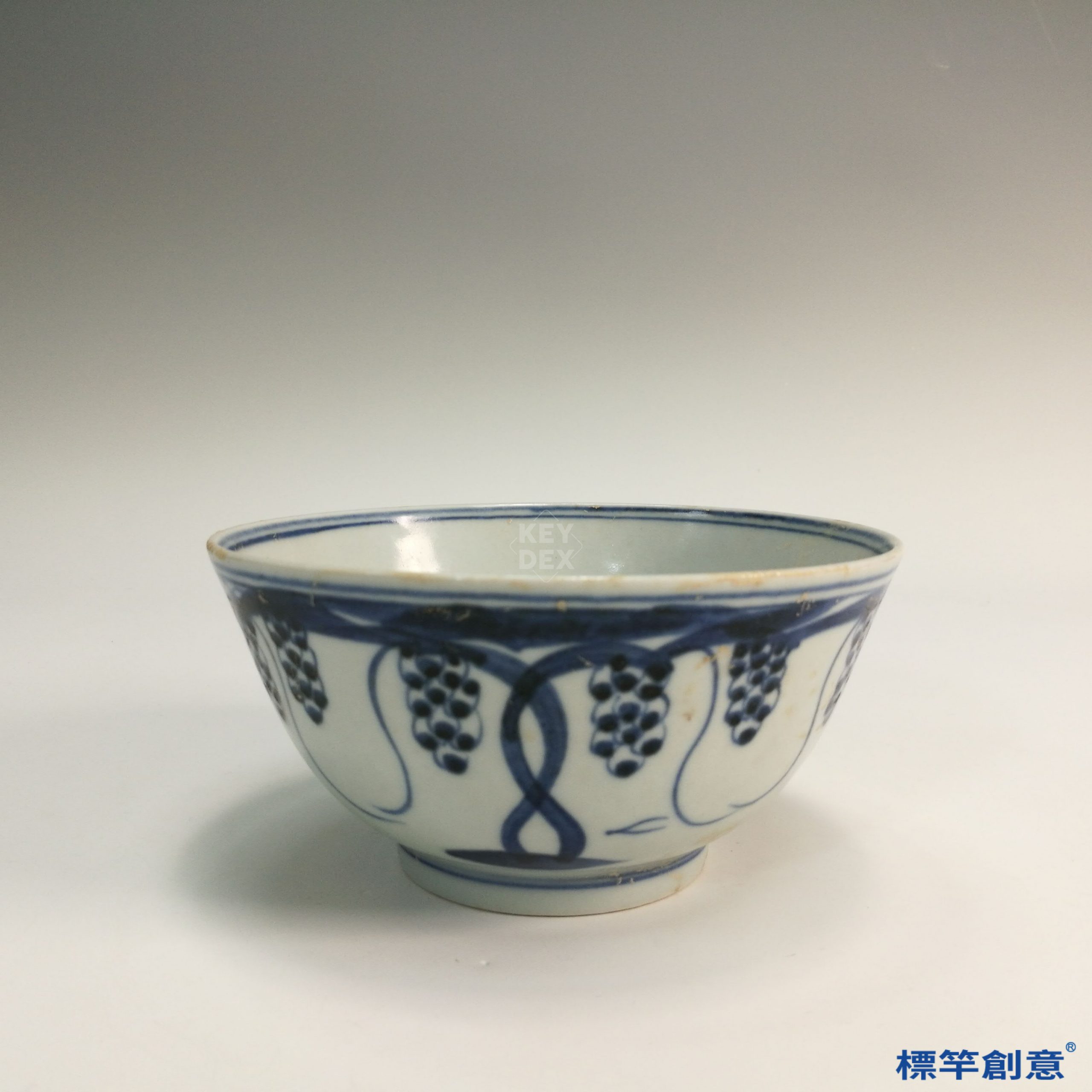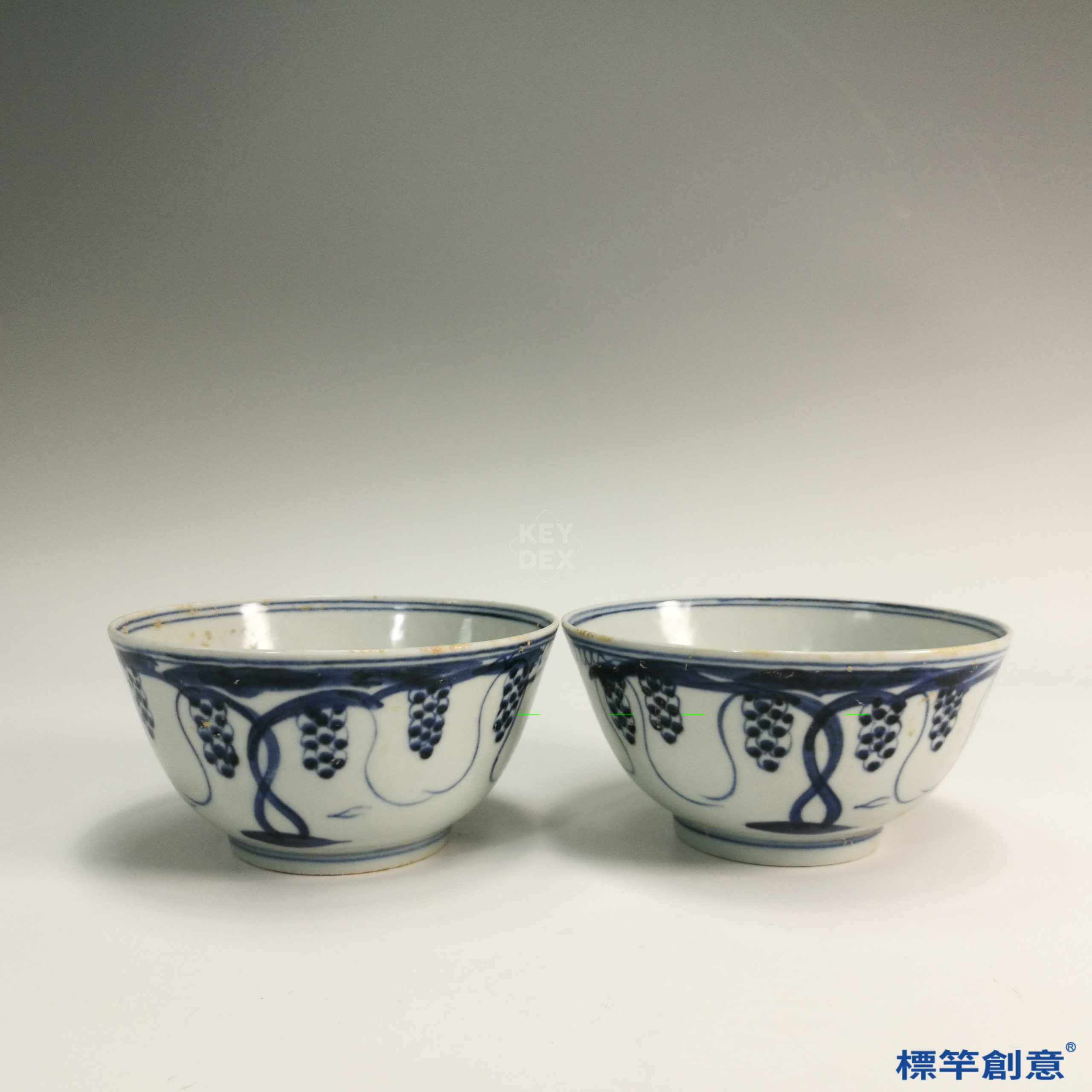 HB024 明代景德鎮窯青花繪葡萄紋食用碗一對
