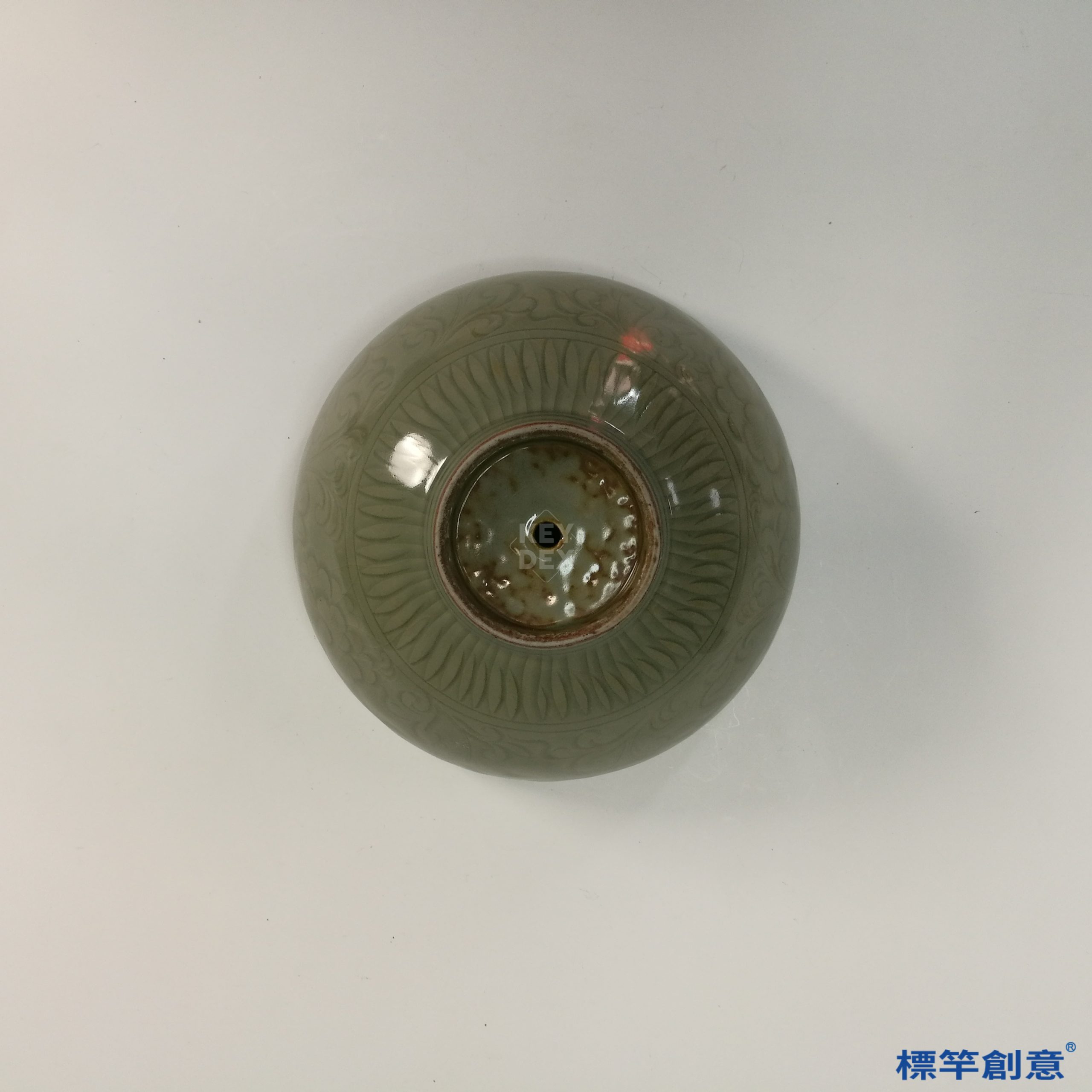 此盆出自明代龍泉窯,龍泉窯位於浙江麗水一帶,自南宋以來即以青瓷著稱。至明代,除傳統大件器皿與宗教器具外,也出現文人與手工藝者自用或訂製的趣味型制。