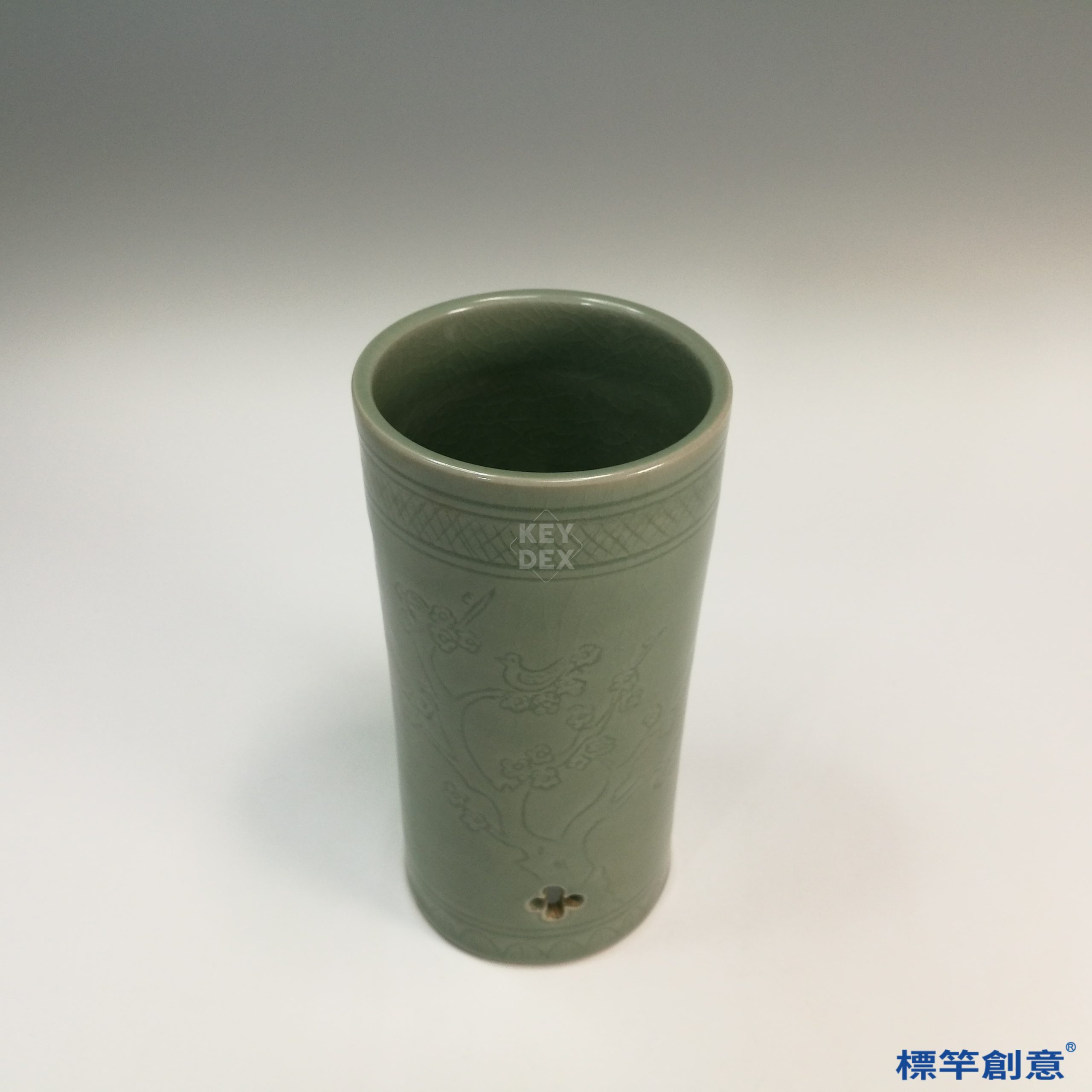 適合作為當代文房器物、書齋花器或香插器形的設計參考,亦可衍生為青瓷筆筒或現代居家文具收納件之靈感來源。