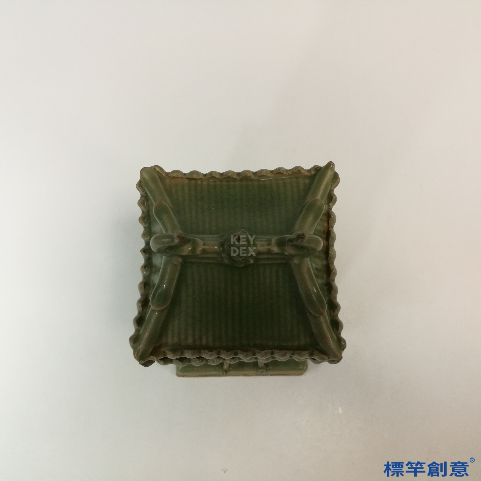 本件應採分段模塑成型,燒製前組合修整,施釉後一次高溫還原焰燒成。屋脊與柱間縫隙均未見變形,燒製控制得當。