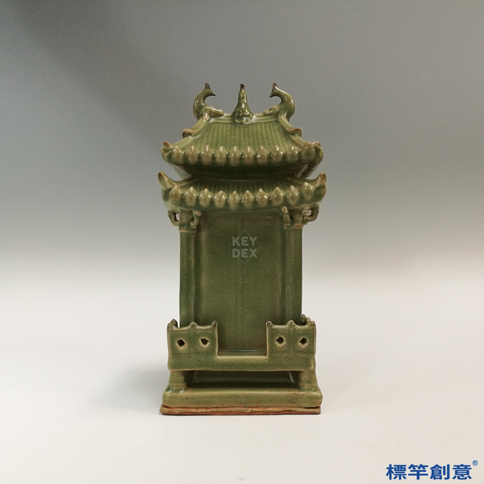 HB036 明代龍泉窯青瓷塑亭式紙錢金爐