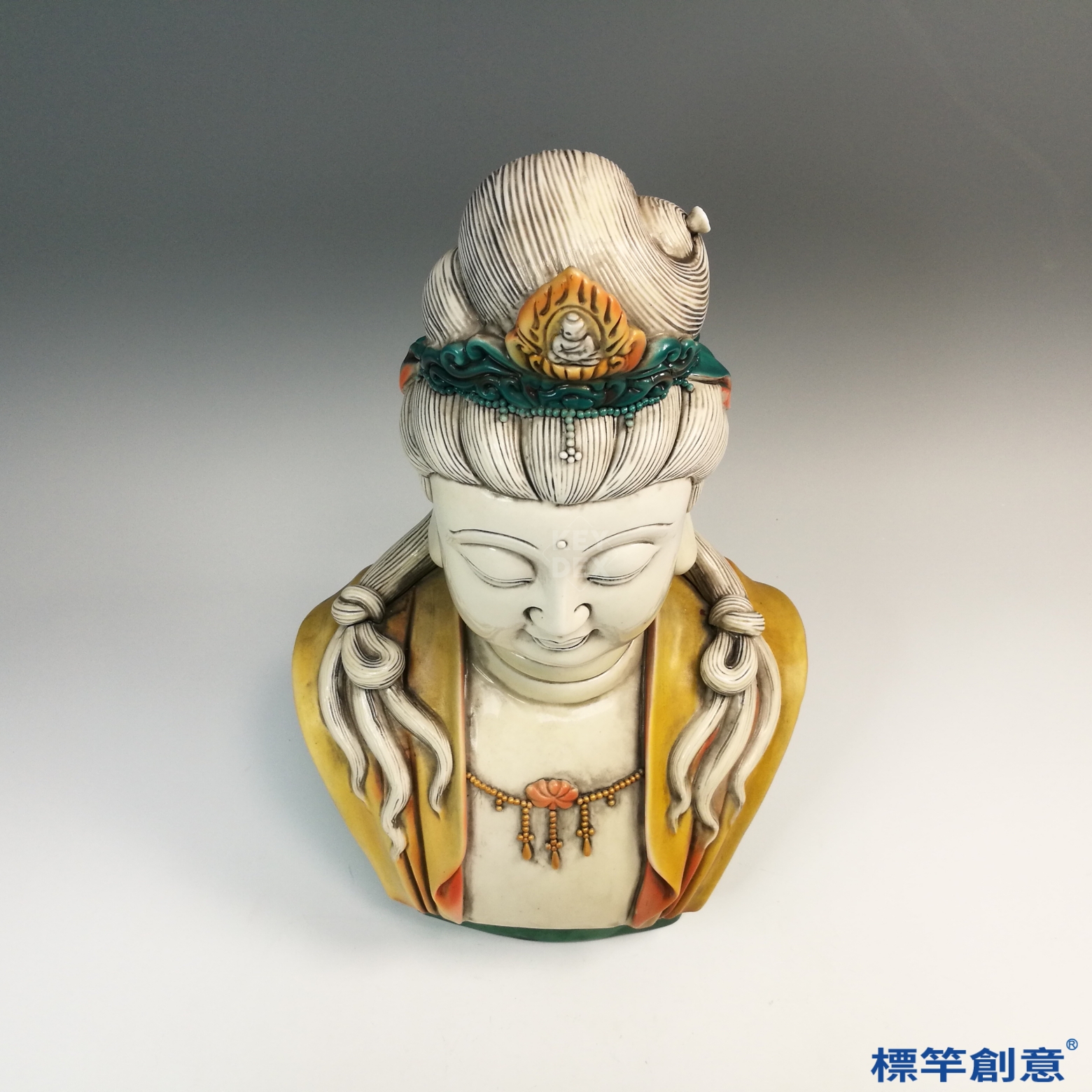 HB046 明代德化窯釉下彩觀音菩薩首像