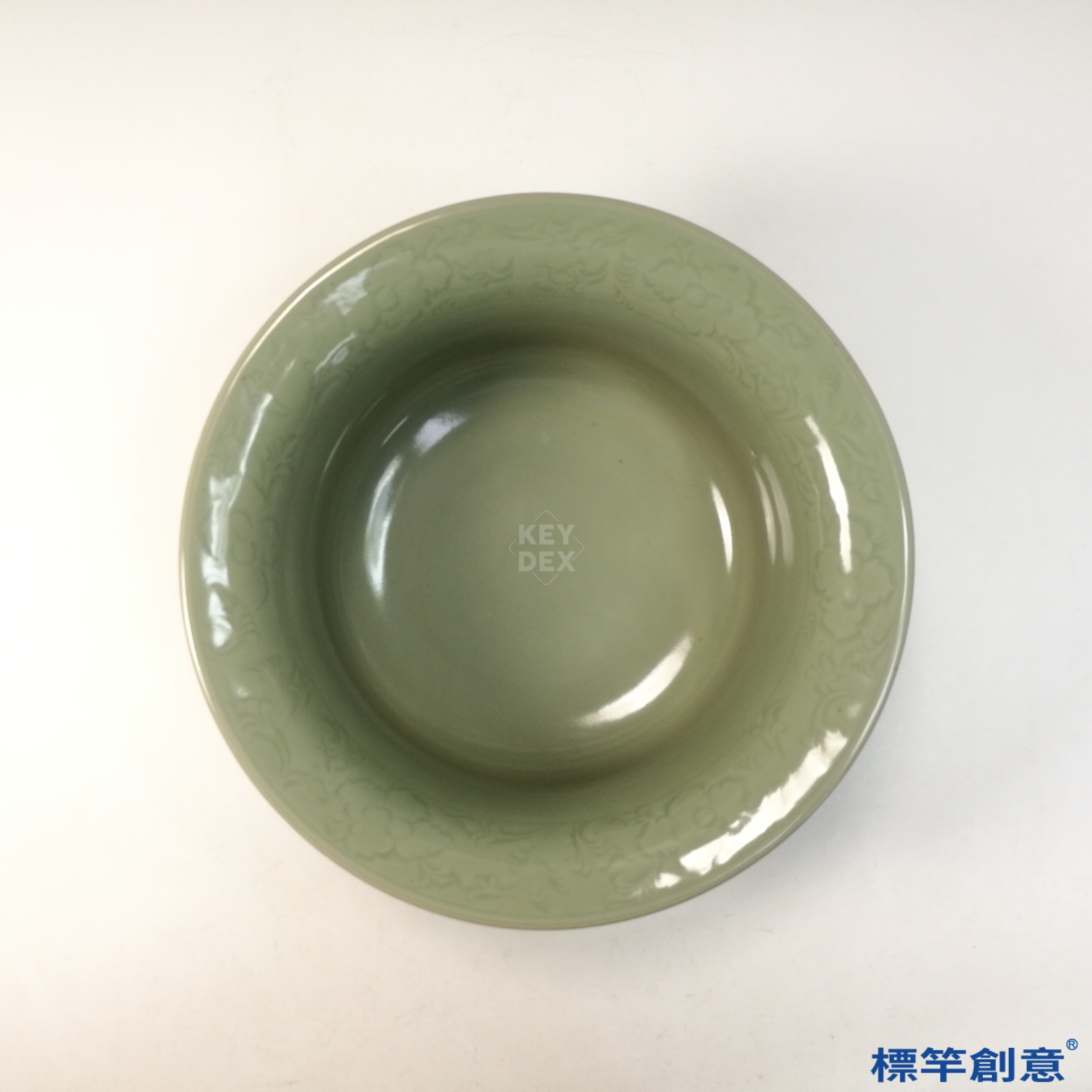 HB052 明代中期龍泉窯粉青釉刻龍紋宮廷用臉盆