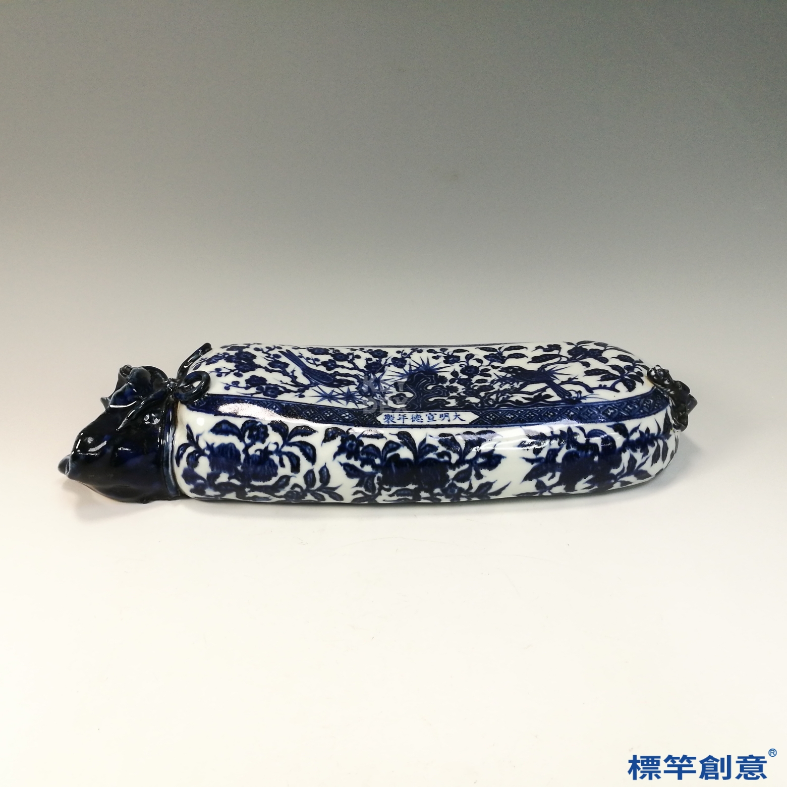HB060 明代宣德景德鎮窯青花繪花鳥紋布袋形瓷枕