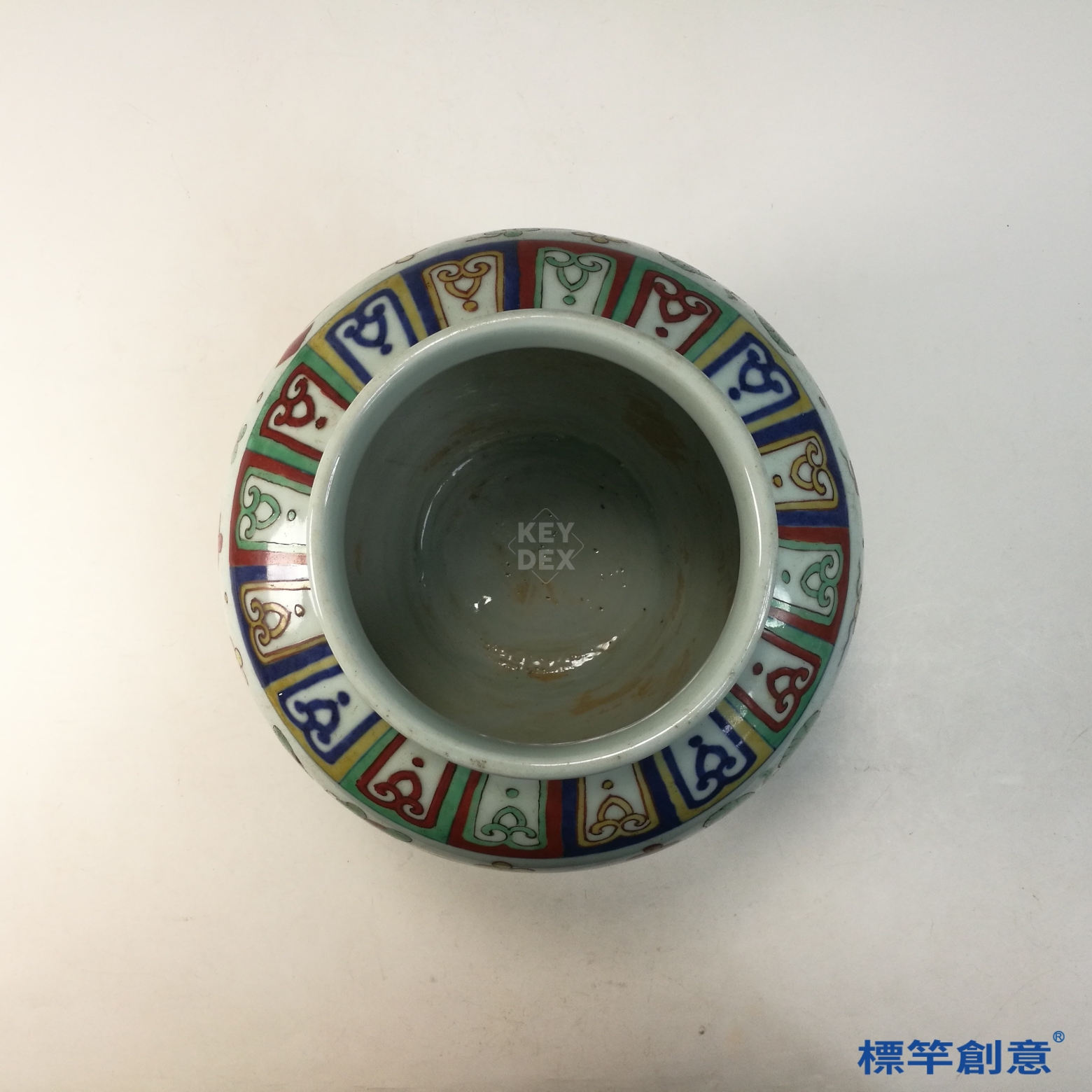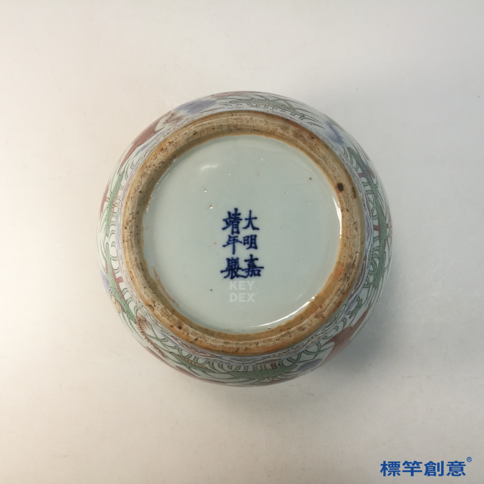 嘉靖五彩為明代五彩發展之高峰,魚藻紋為代表性吉祥圖案。本品主題清晰、構圖繁麗,展現嘉靖時期多色裝飾語彙與審美風格,具歷史與藝術價值。