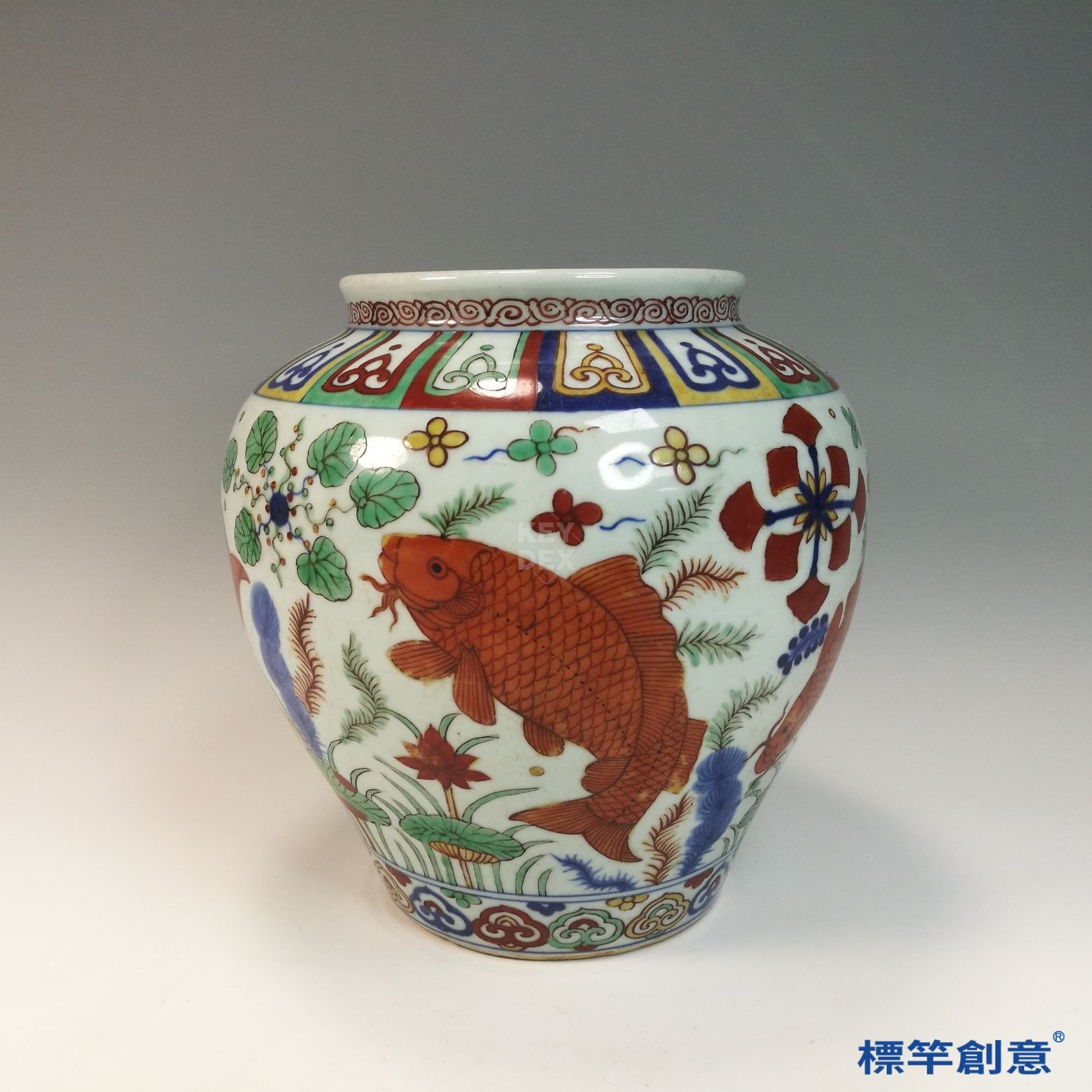 HB084 明代嘉靖景德鎮窯五彩繪魚藻紋罐