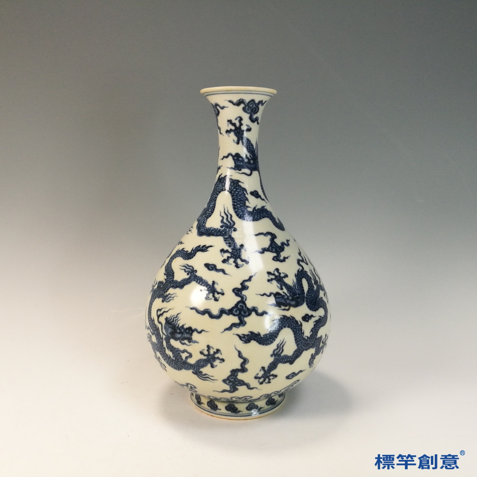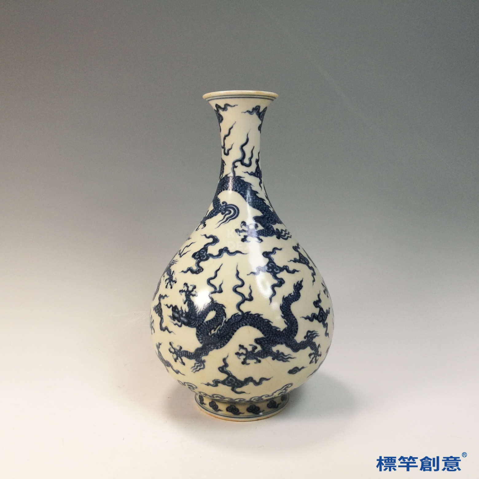 本器可作為當代瓷器設計仿古範本,適用於玉壺春瓶形制、龍紋主題、青花裝飾之創作。其結構比例、圖案配置與青花層次,亦可用於現代高端文創或祭祀禮器設計靈感來源。