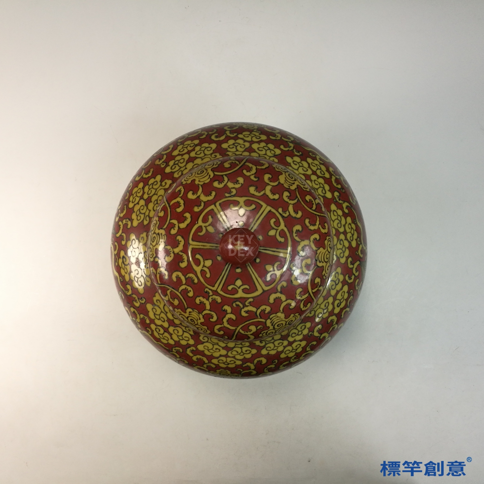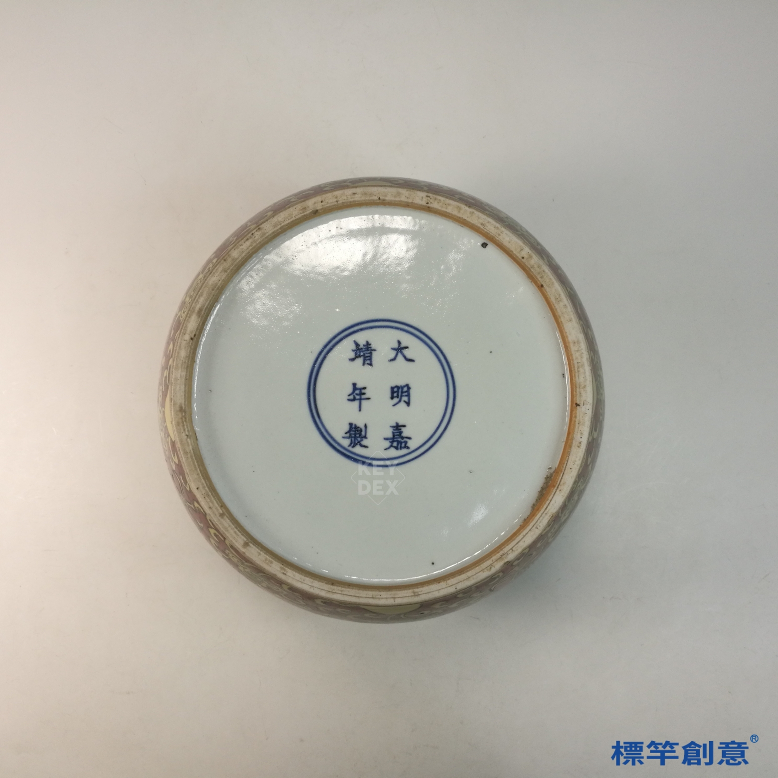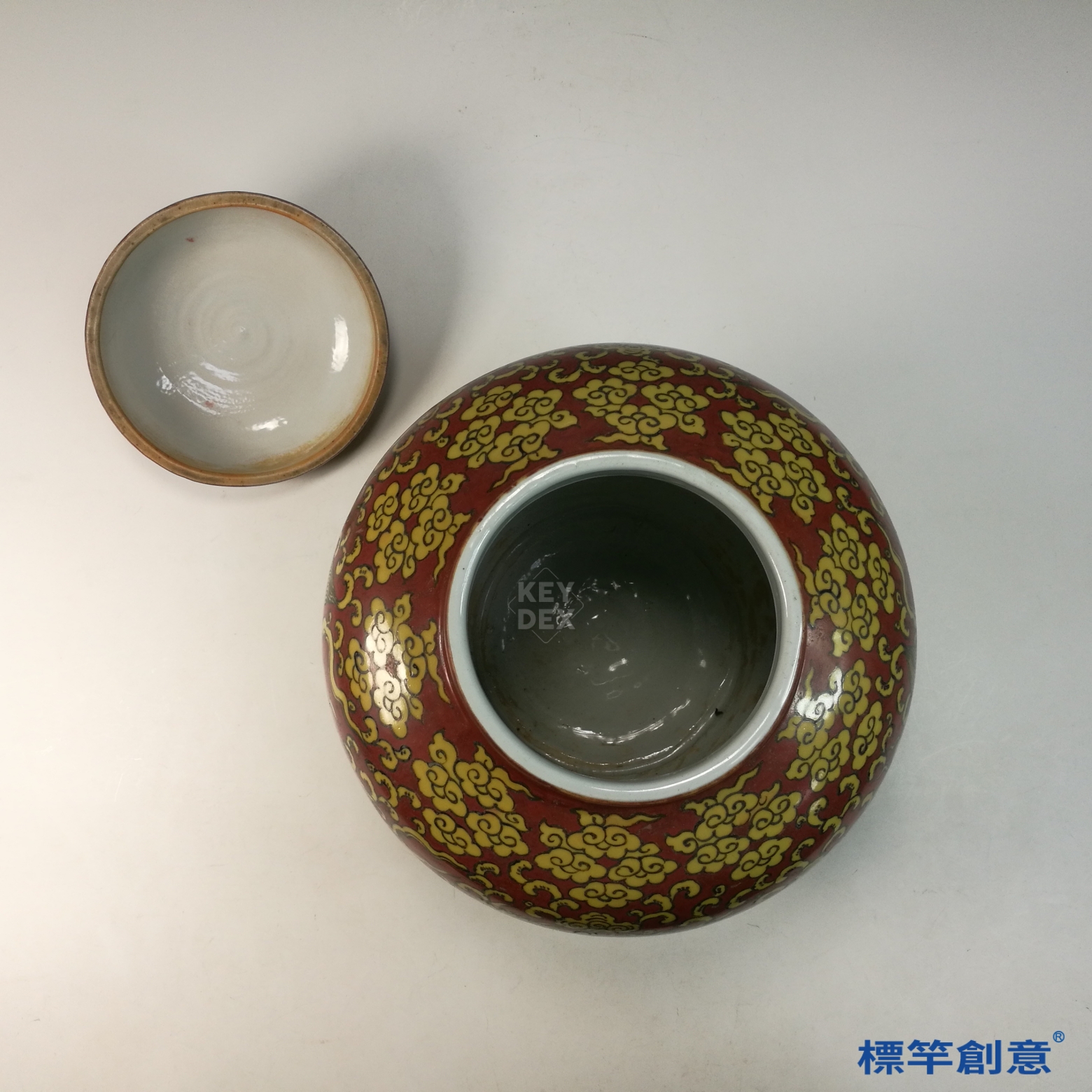 此罐結合釉地與彩繪雙重工藝,象徵皇權神授與祈福納祥。五爪龍紋代表帝王權威,紅地黃彩尤為嘉靖官窯標誌性風格,反映該朝對道教與龍紋圖像的崇拜。為嘉靖官窯中難得之精器,具有極高藝術與歷史價值。