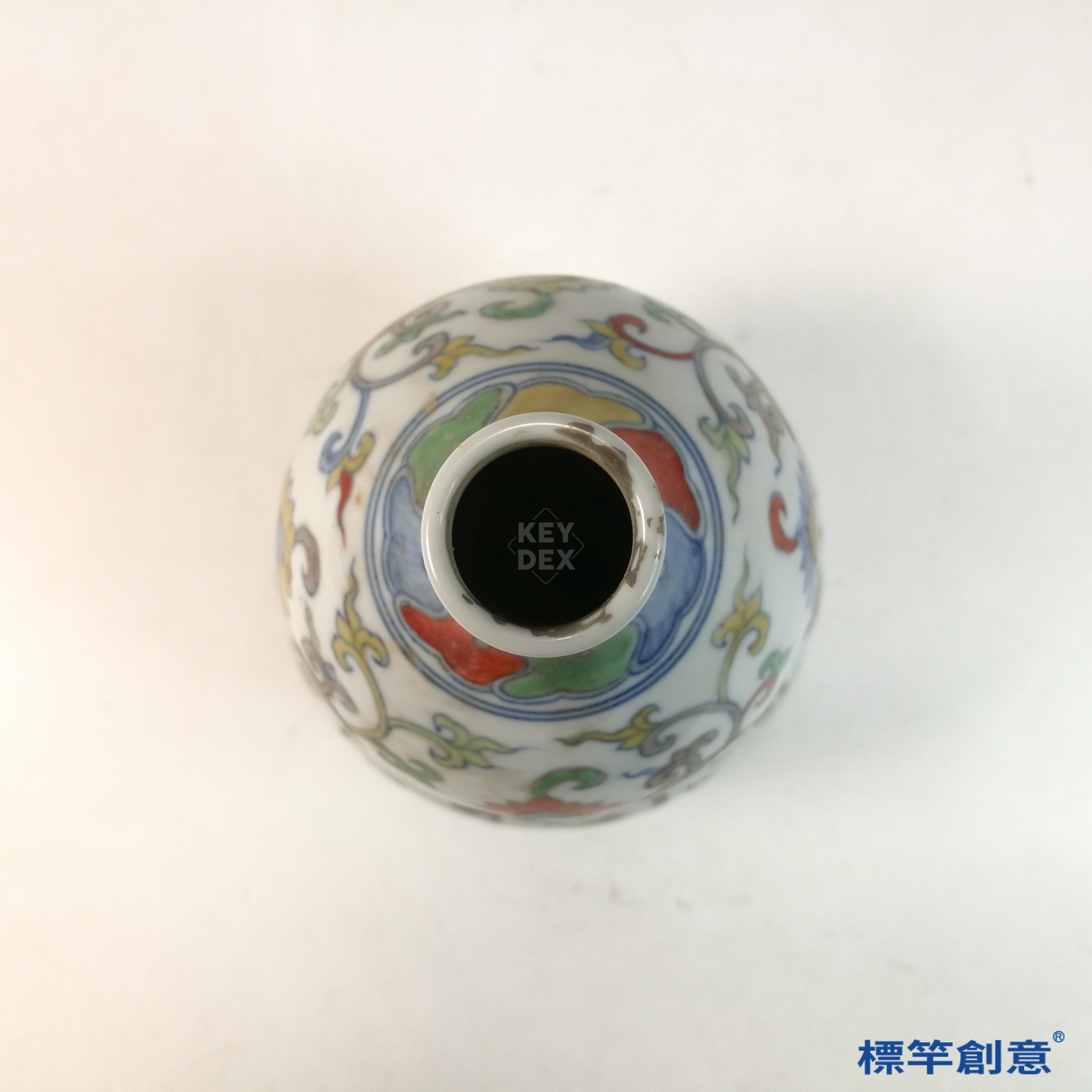 採鬥彩工藝製作,先以青花描繪輪廓後經高溫(約1300°C)還原焰燒成,次以低溫(約800°C)釉上彩二次焙燒,方顯其色澤斑斕與層次分明之特徵。