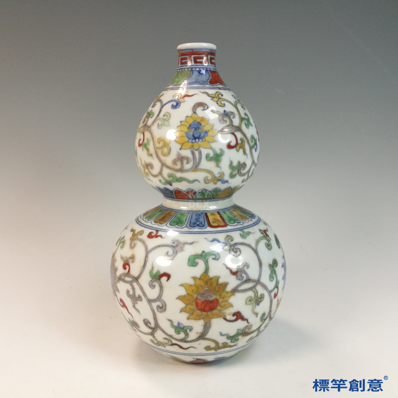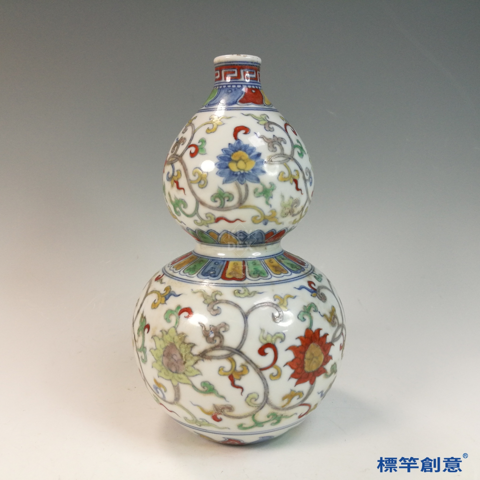 HB097 明代晚期景德鎮窯鬥彩成化款纏枝花卉紋葫蘆瓶