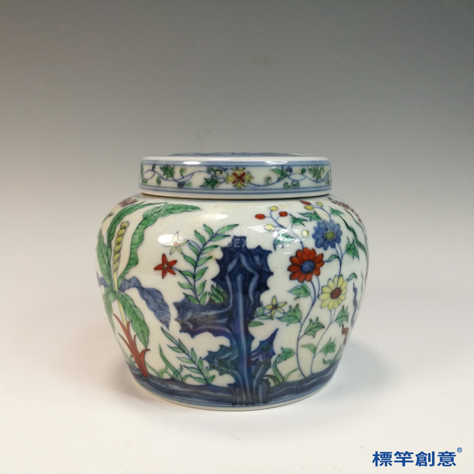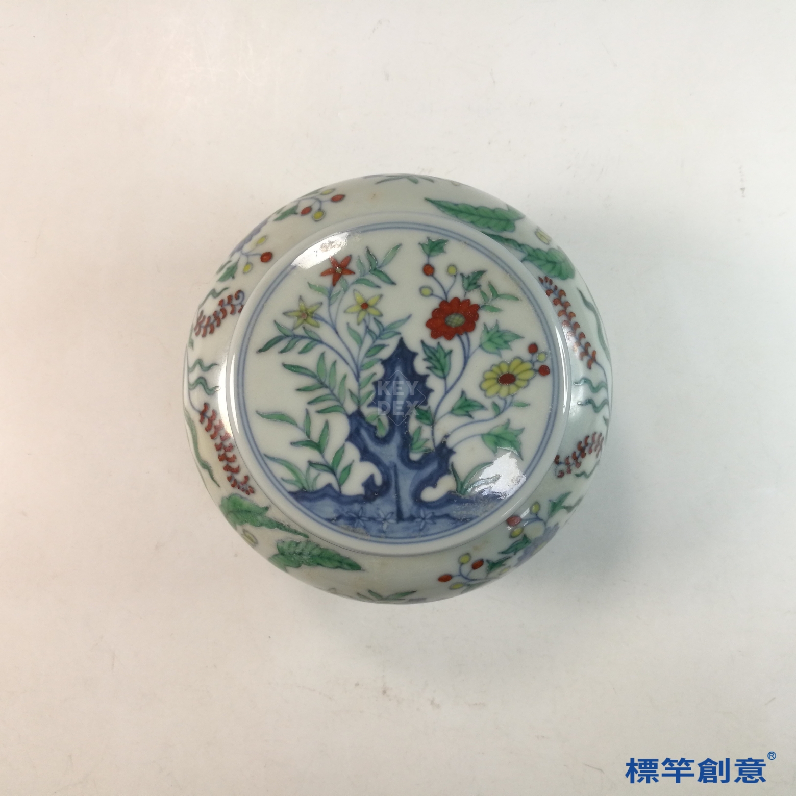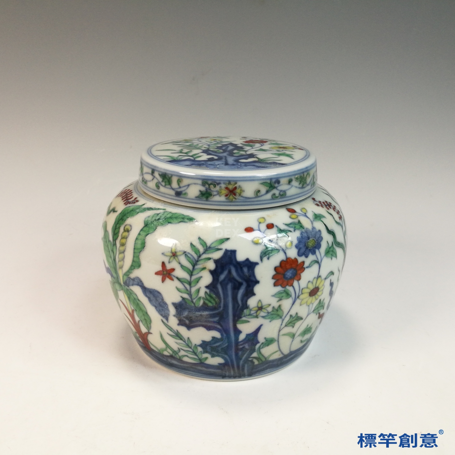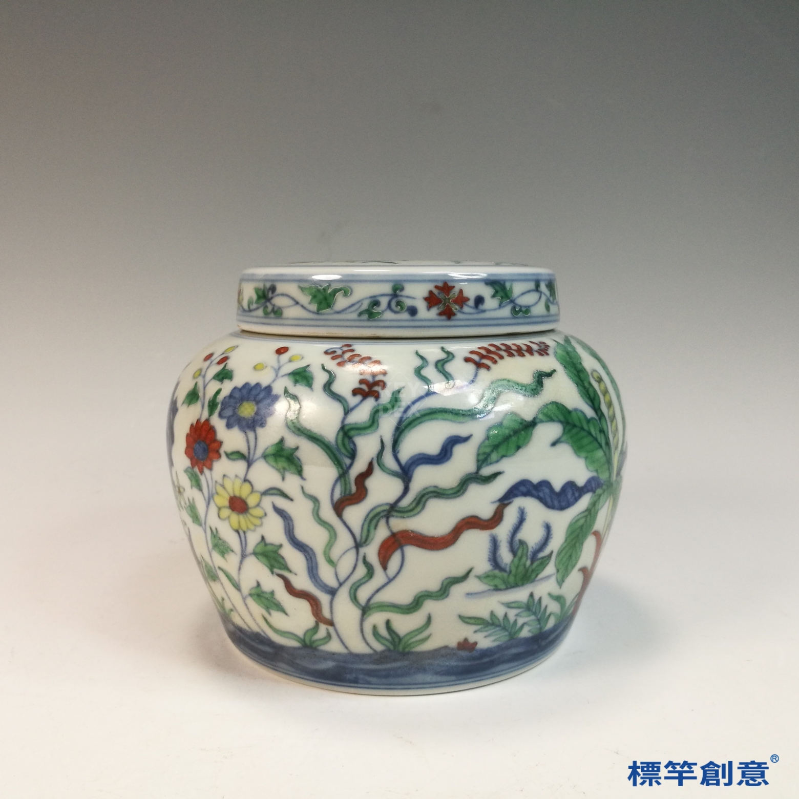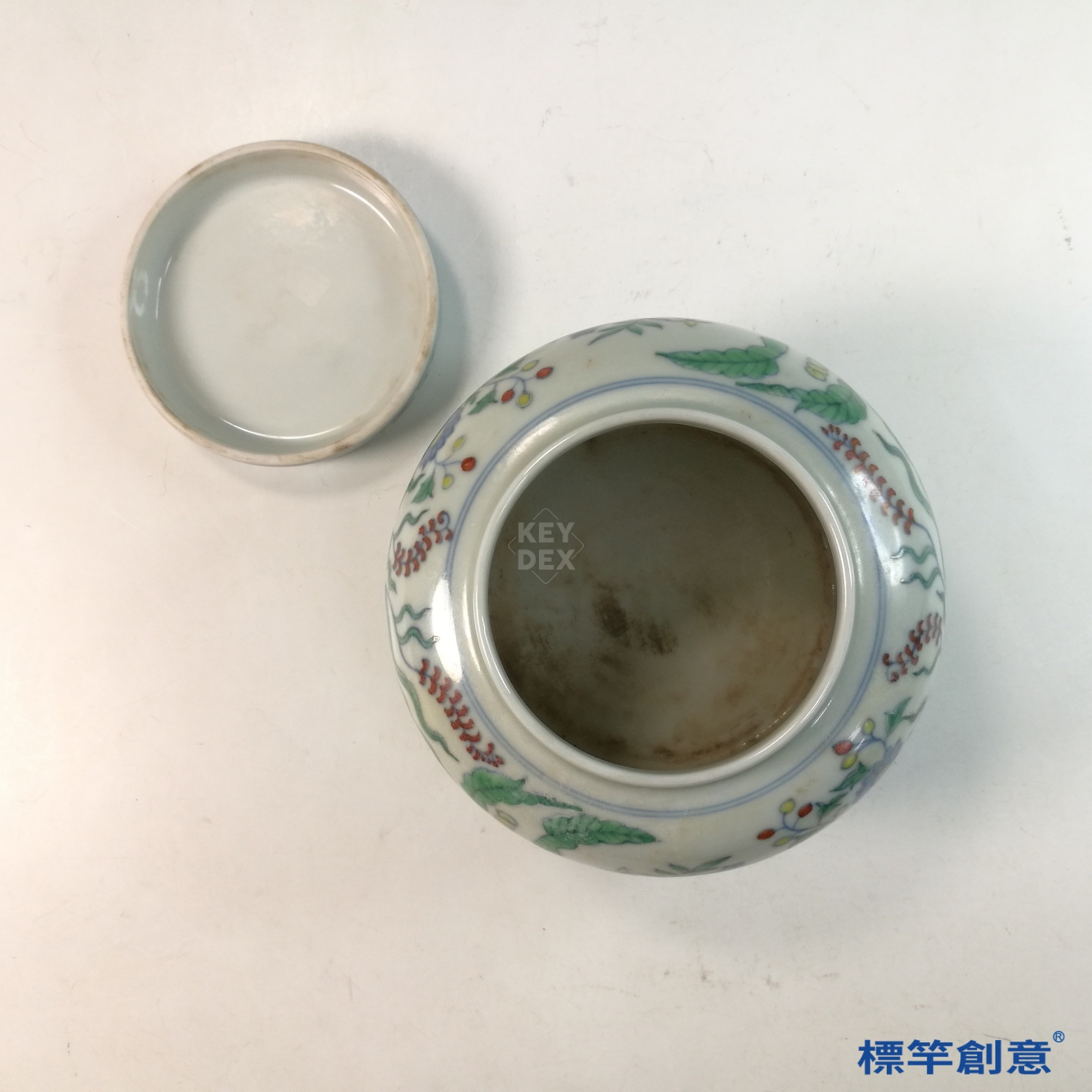 HB098 明代晚期景德鎮窯鬥彩成化款山石花卉紋蓋罐