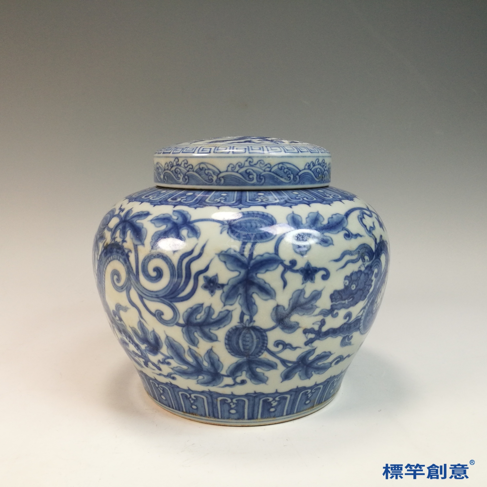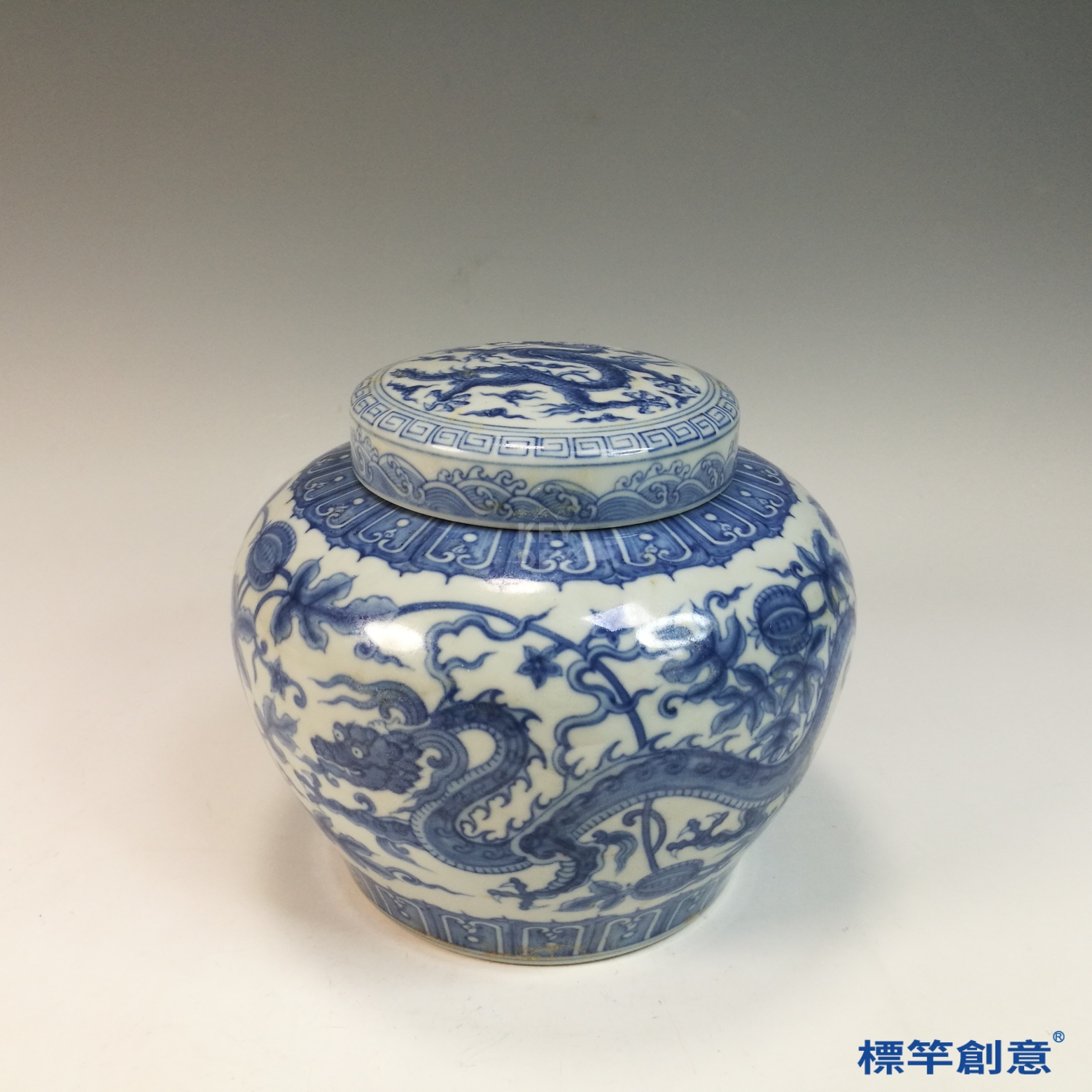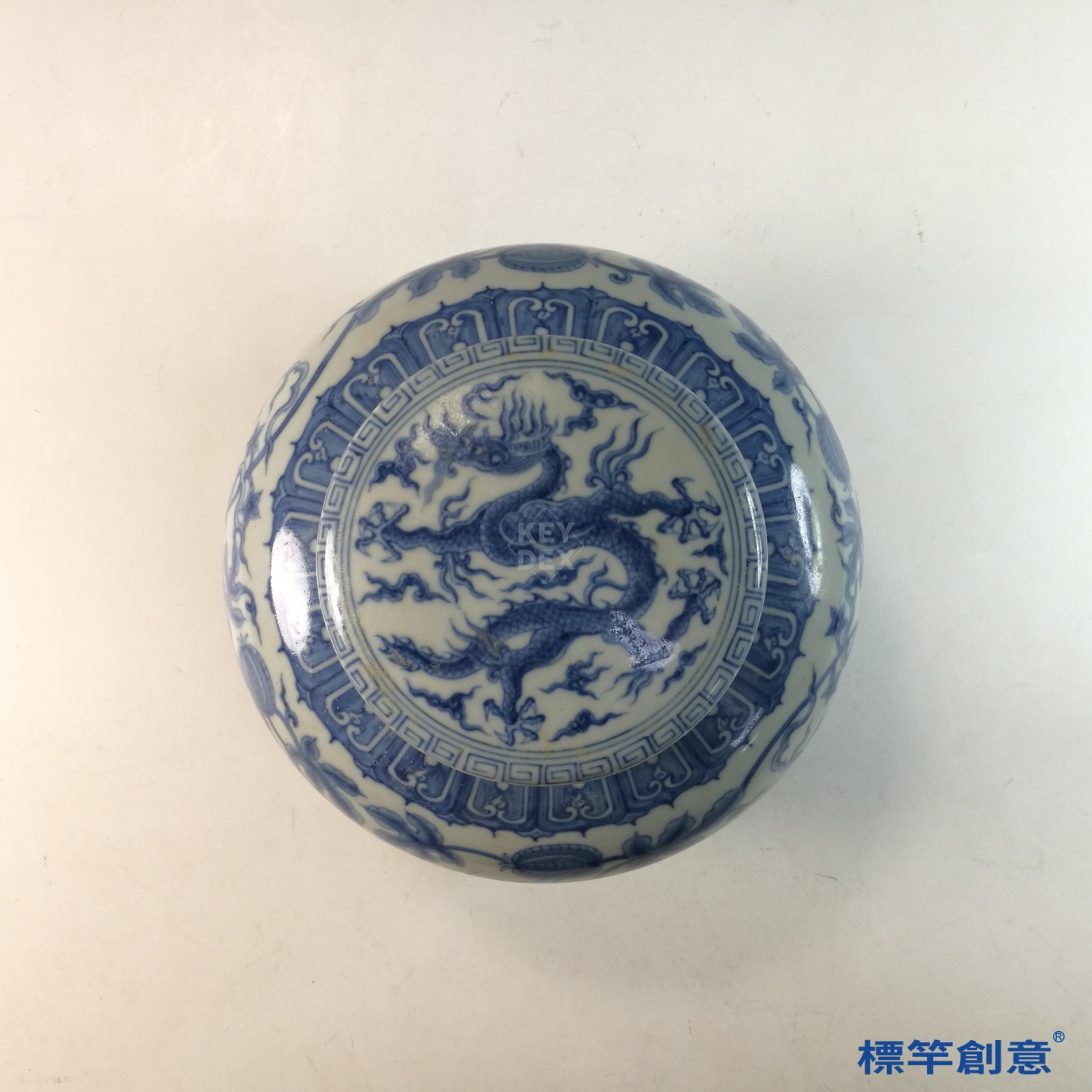 HB100 明代晚期景德鎮窯青花天字款三爪龍紋蓋罐