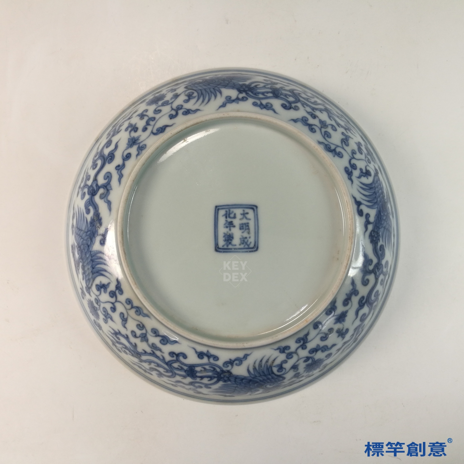 HB104 明成化靑花官窯繪雙鳳紋盤