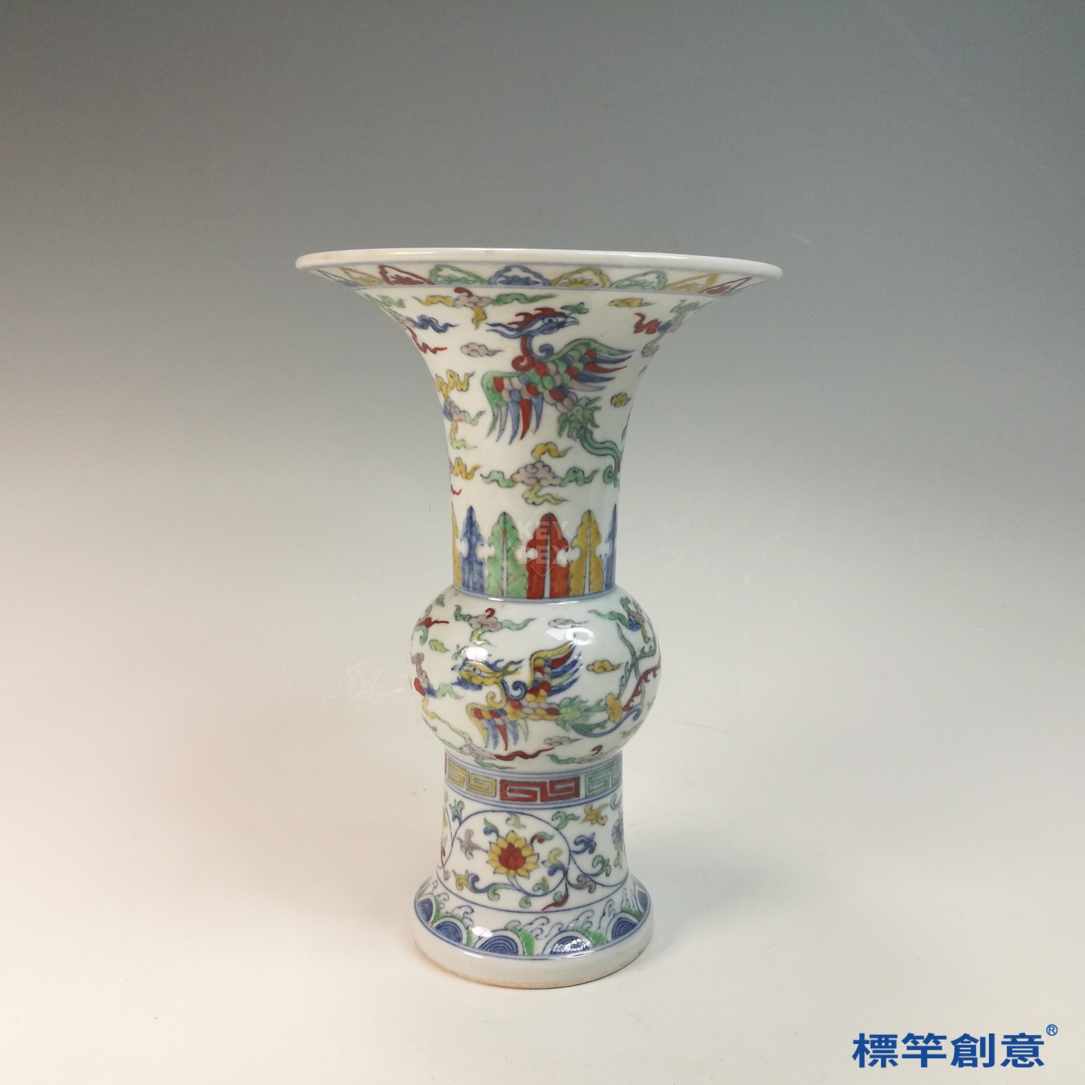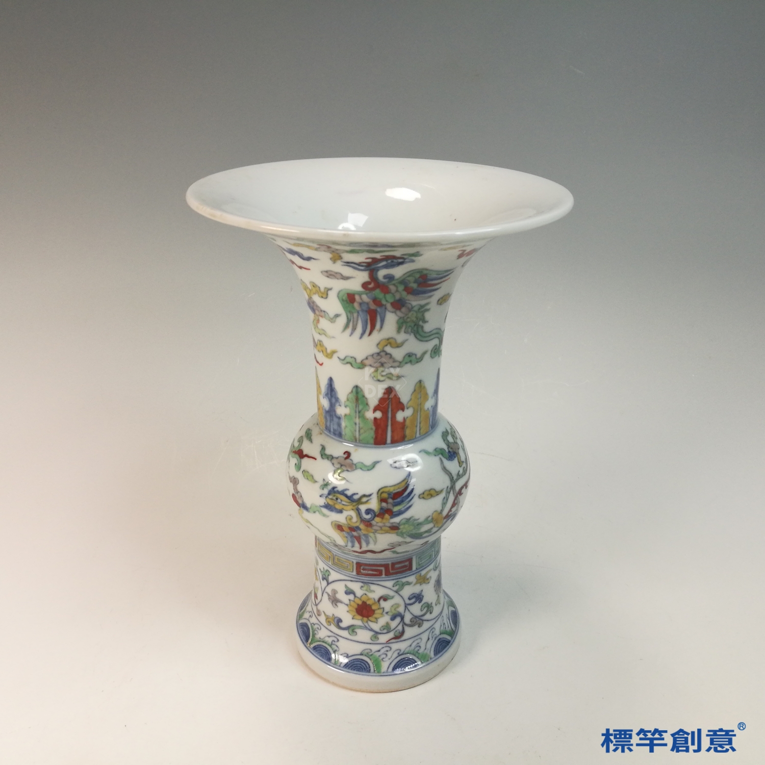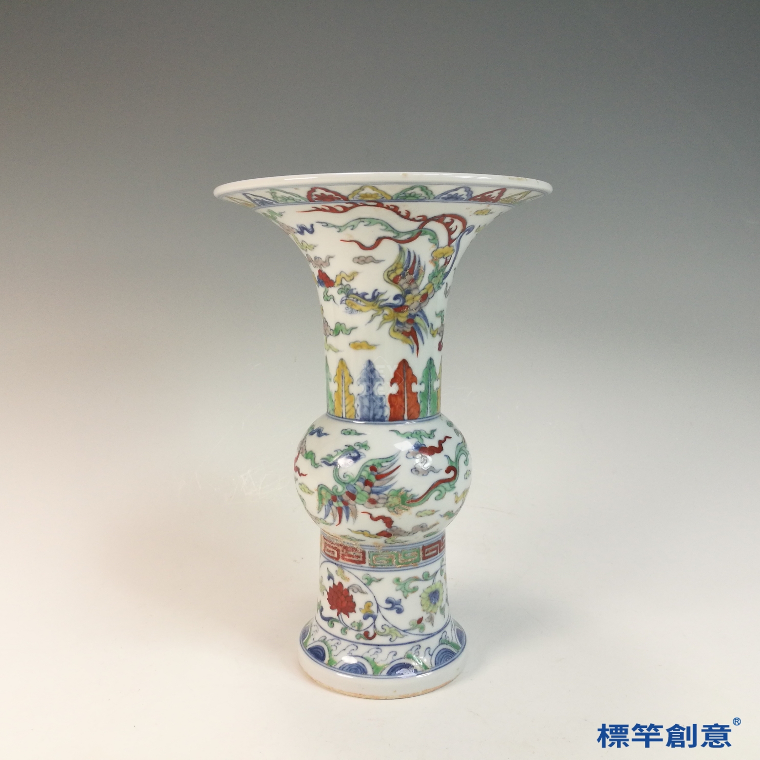 HB107 明中晚期鬥彩成化款花卉雲鳳紋花觚瓷觚