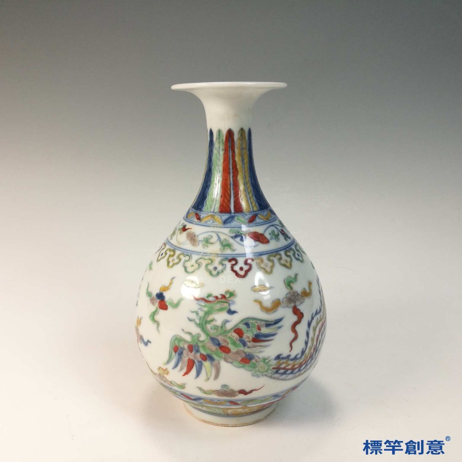 HB108 明中晚期鬥彩成化款雲鳳紋玉壺春瓶