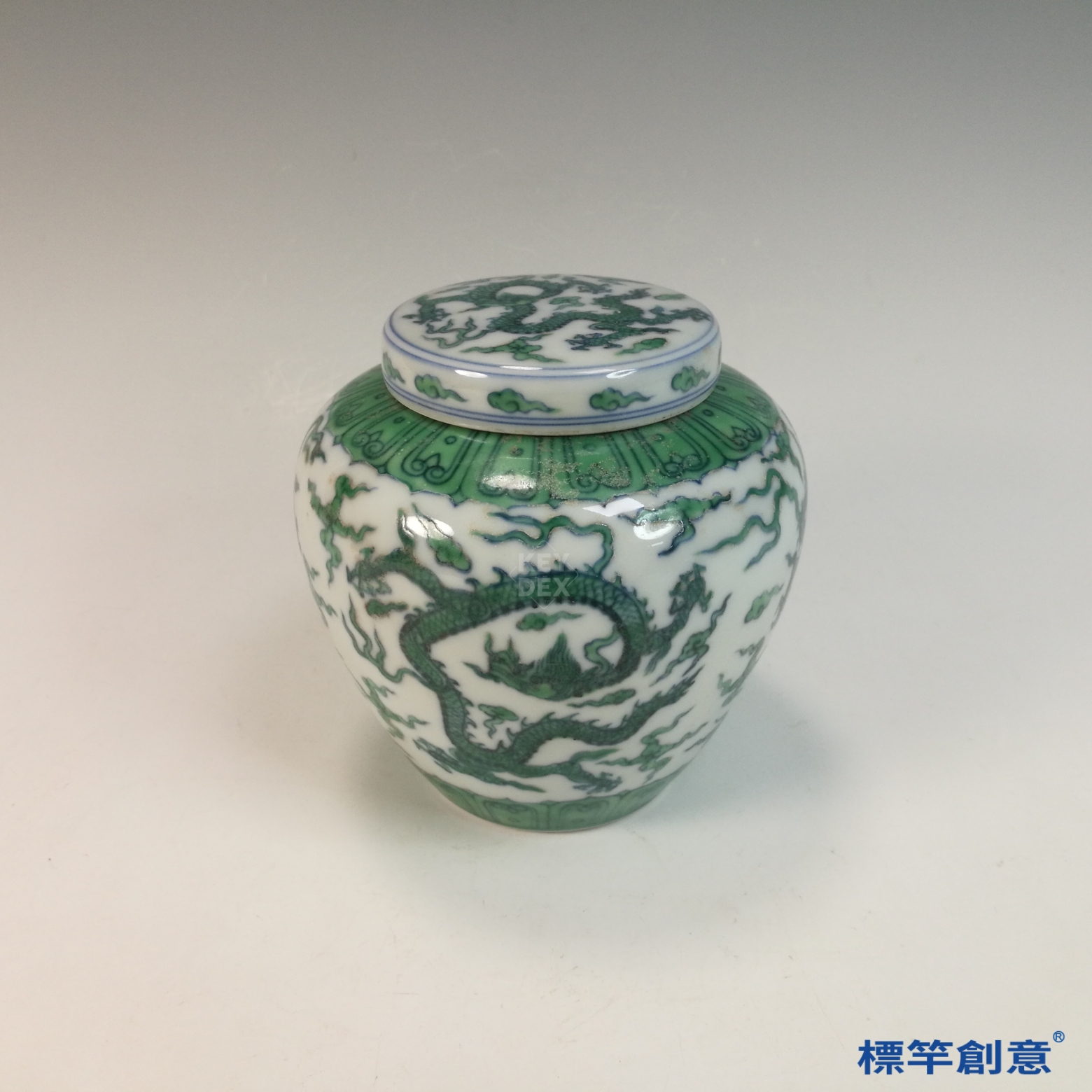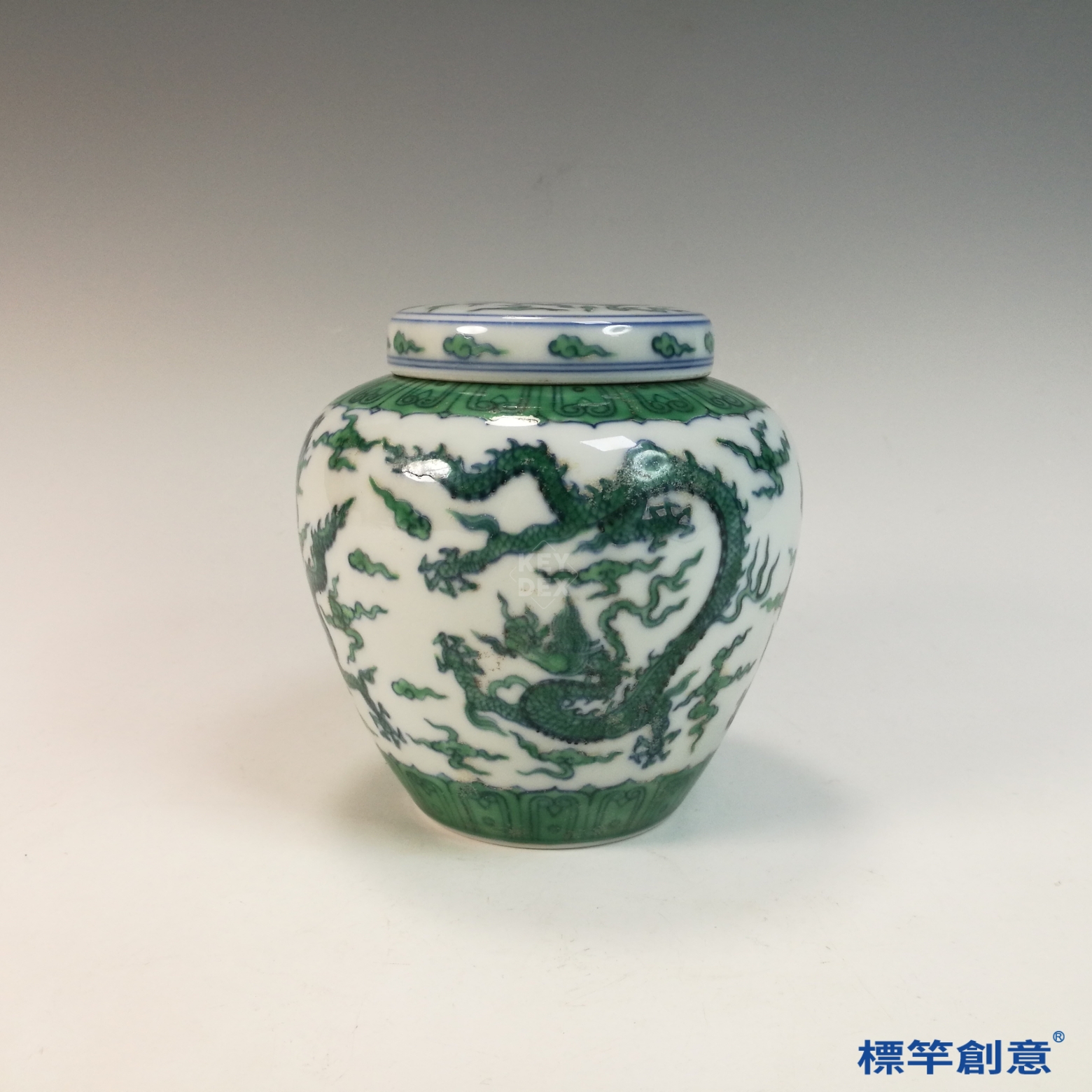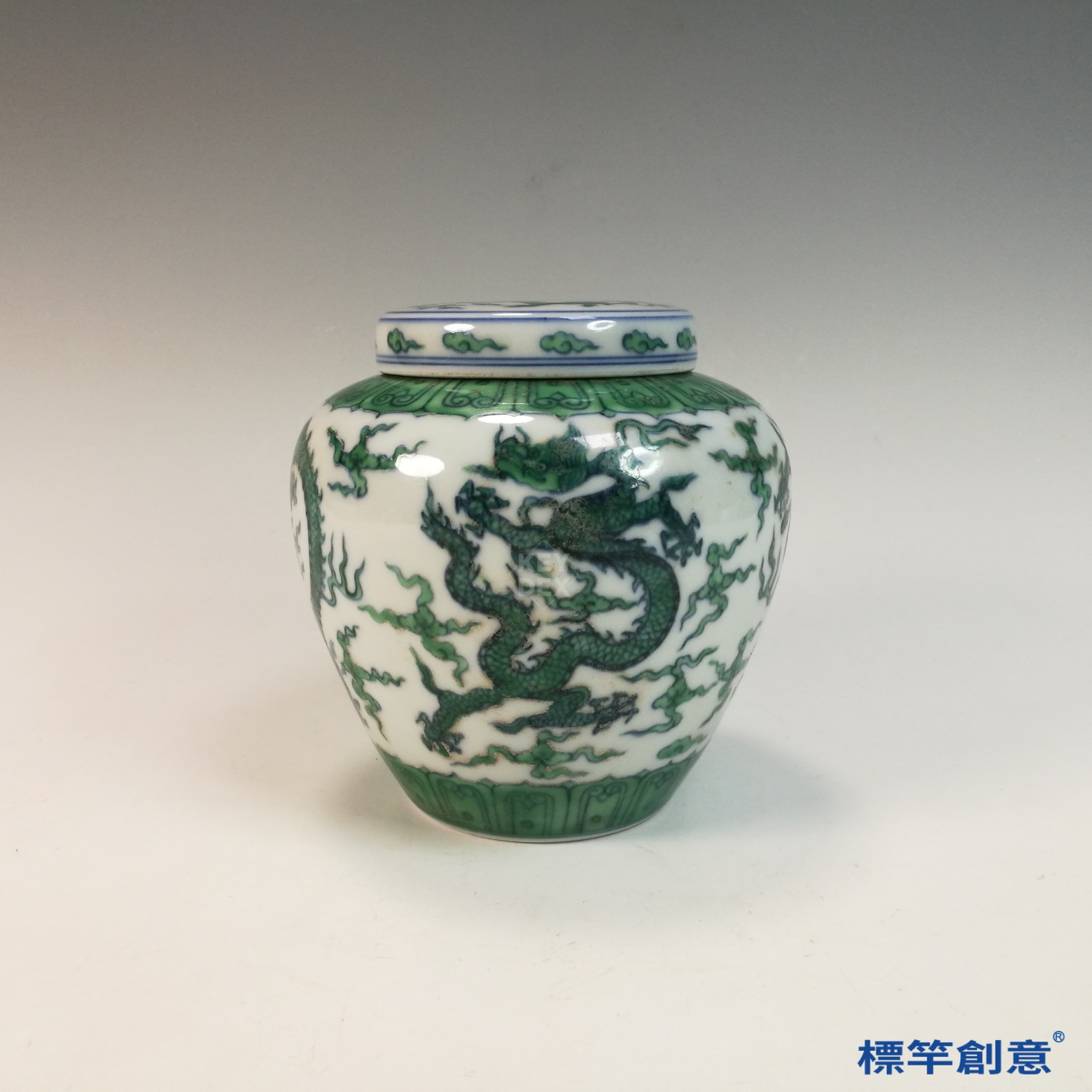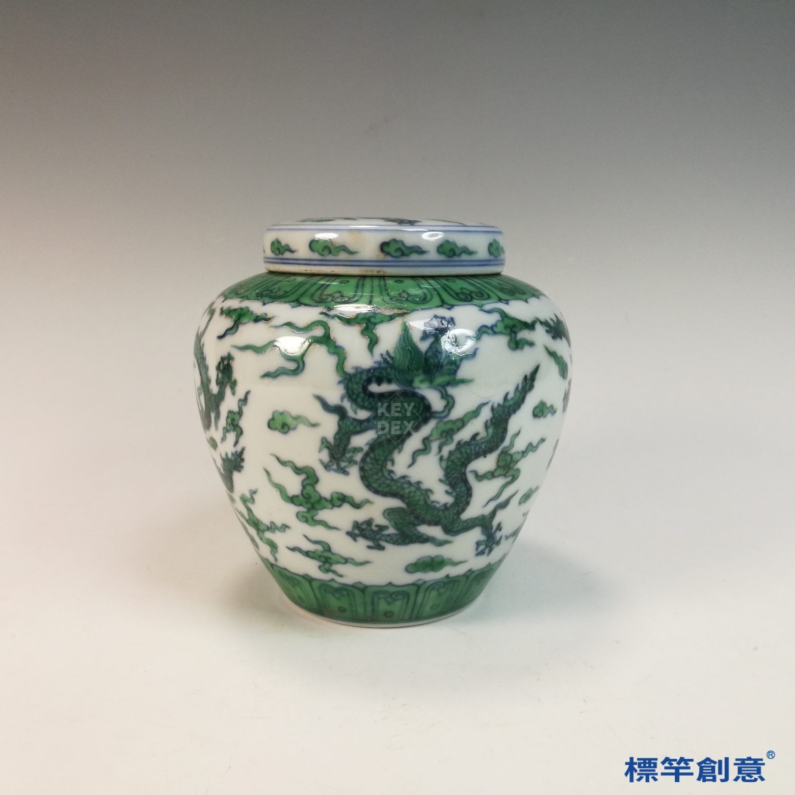 HB109 明中晚期青花綠彩成化款青花五爪雲龍紋蓋罐