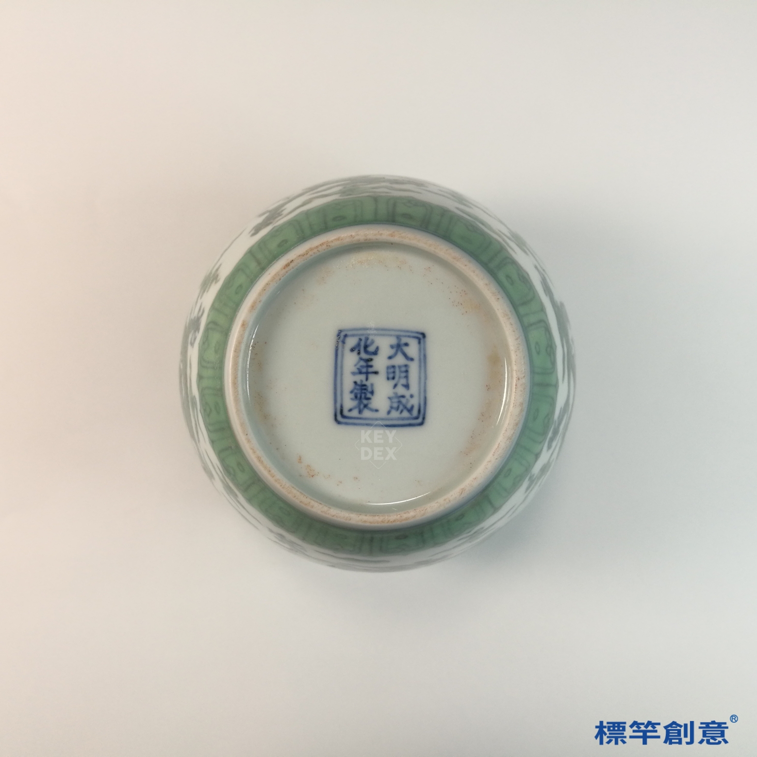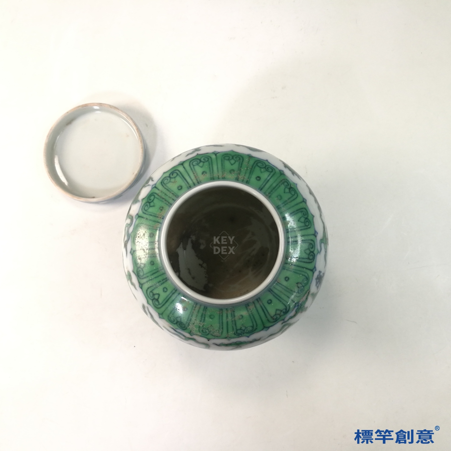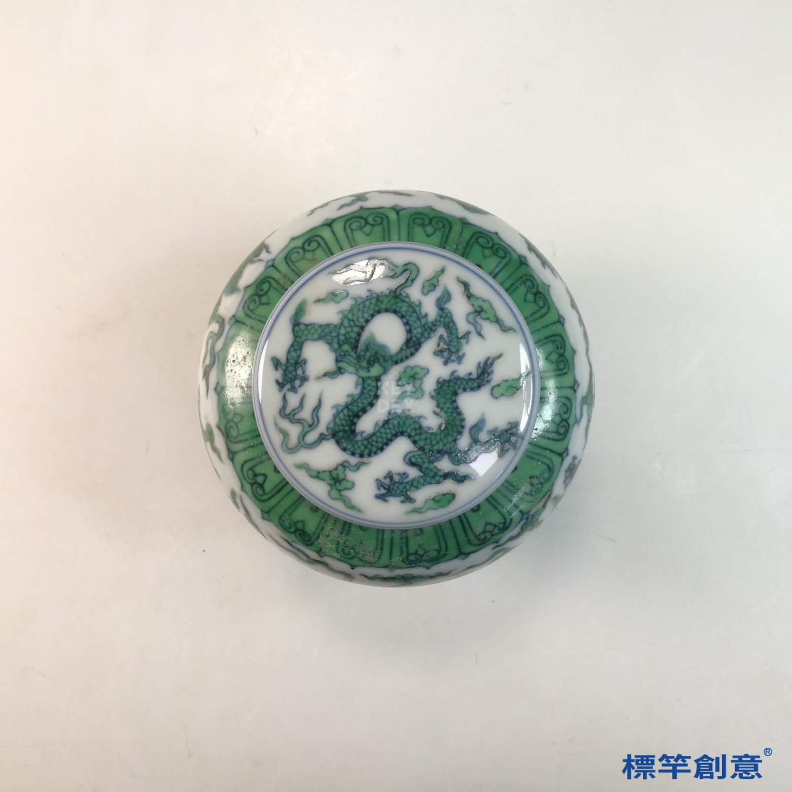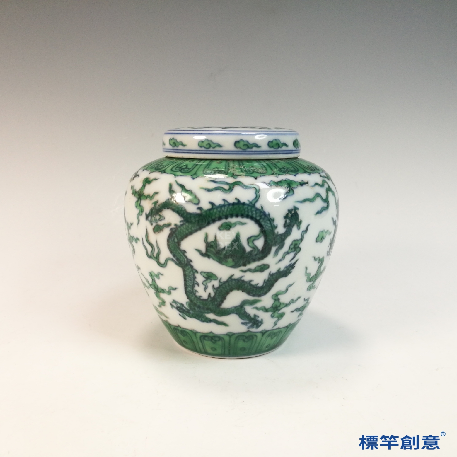 HB109 明中晚期青花綠彩成化款青花五爪雲龍紋蓋罐