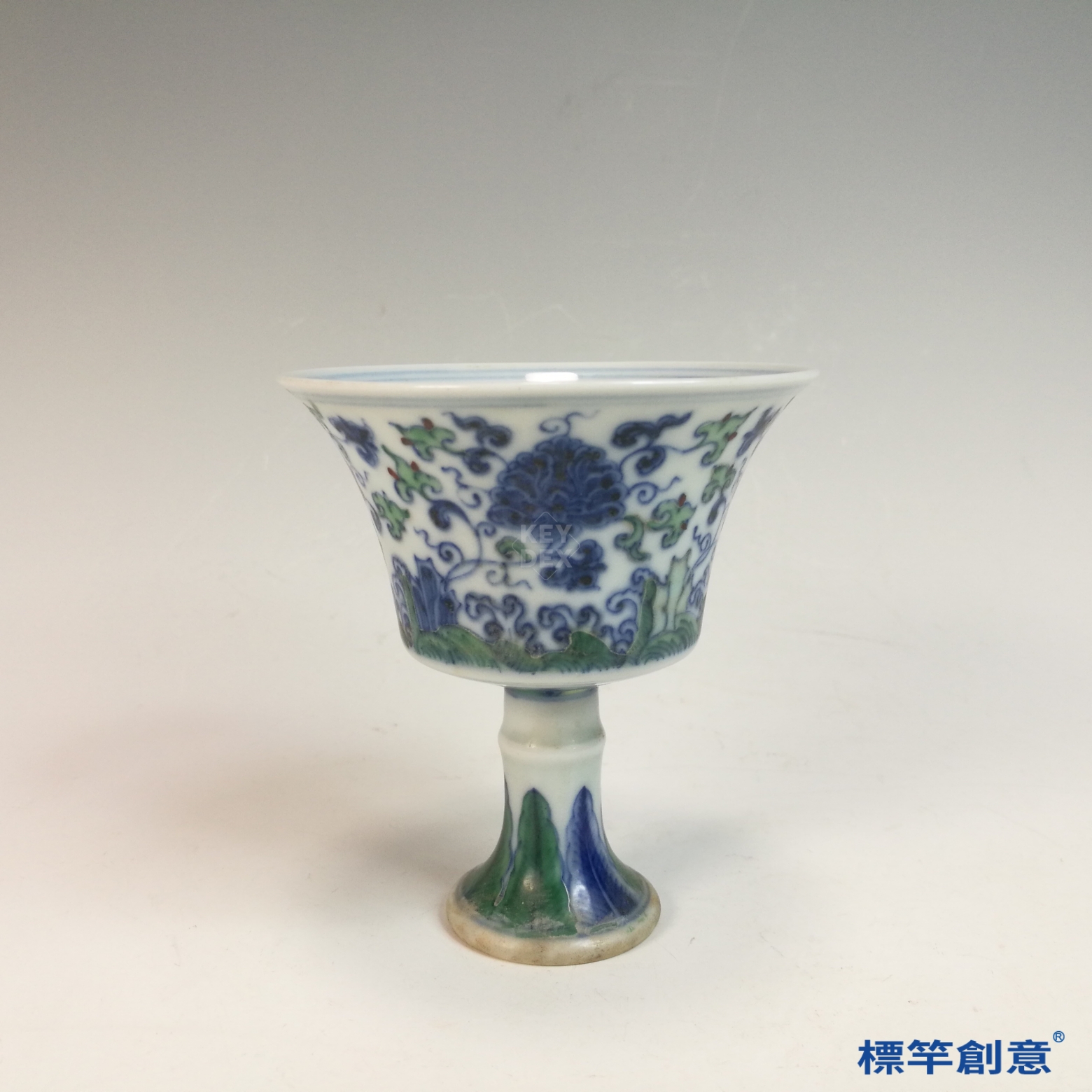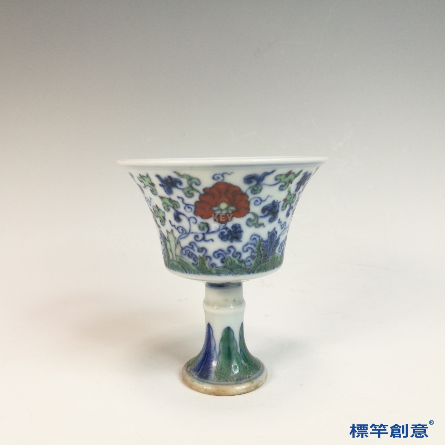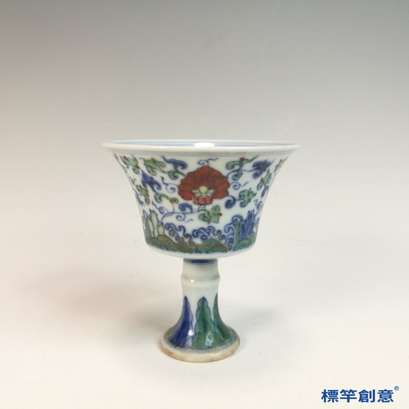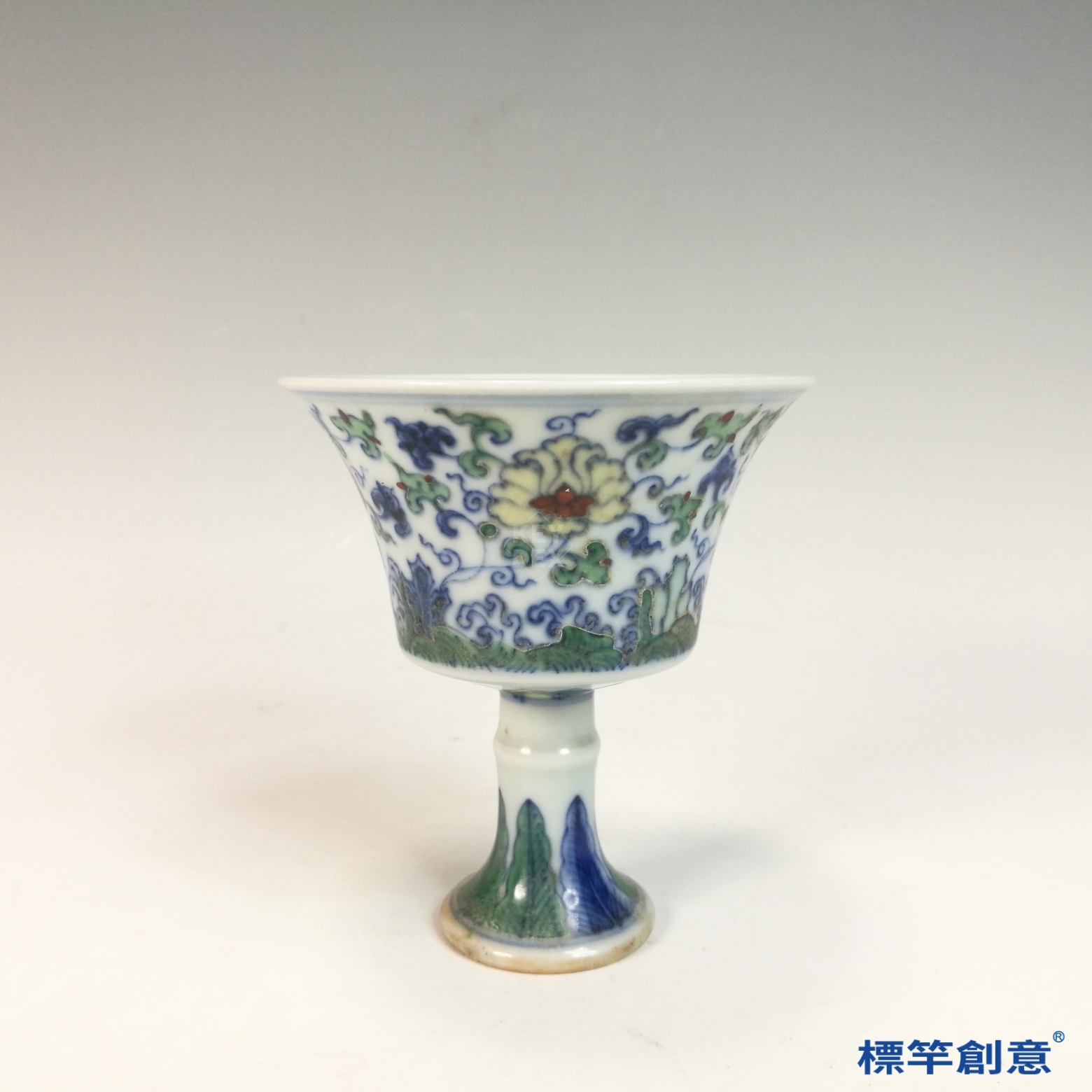HB112 明中晚期鬥彩成化款纏枝花卉紋喇叭口高足杯