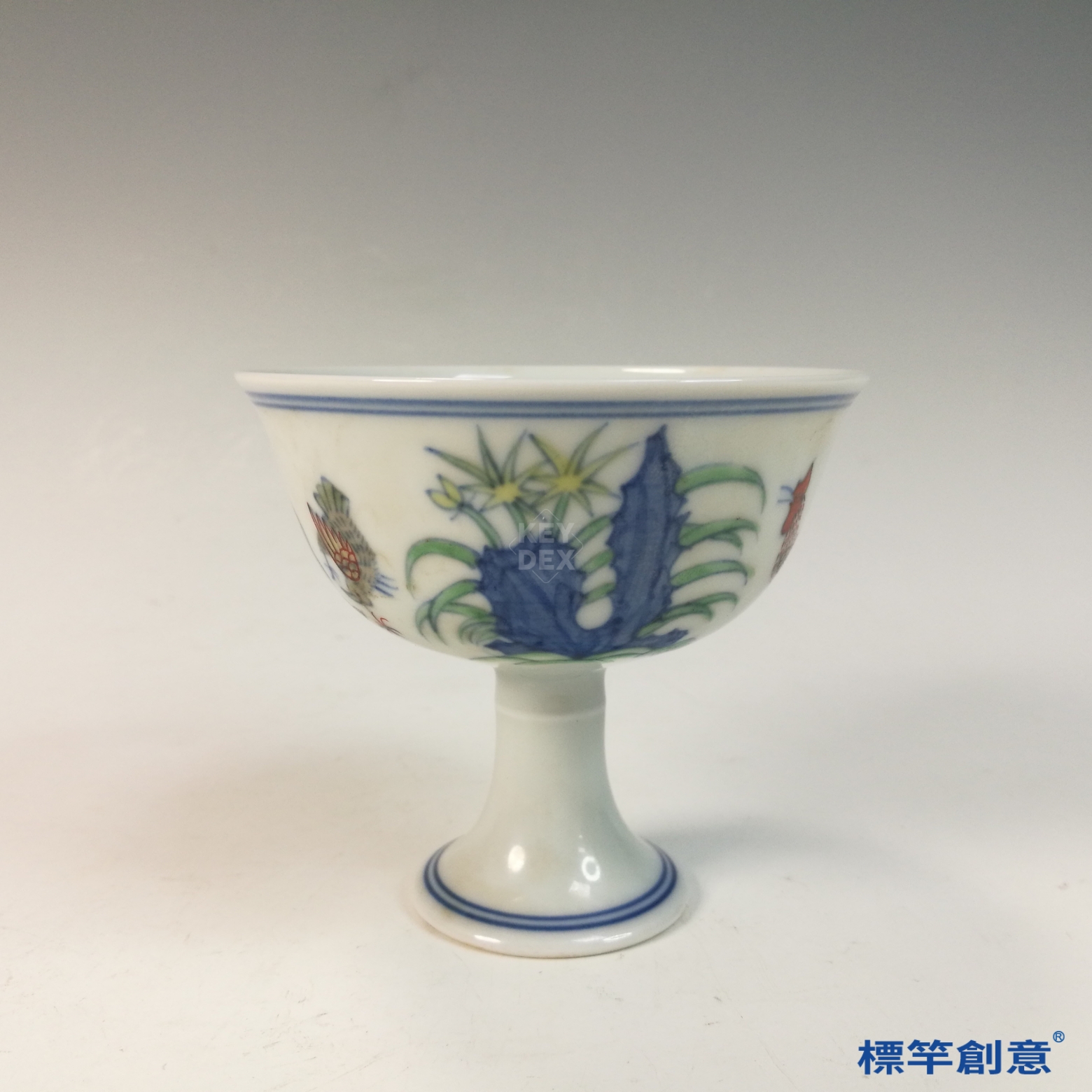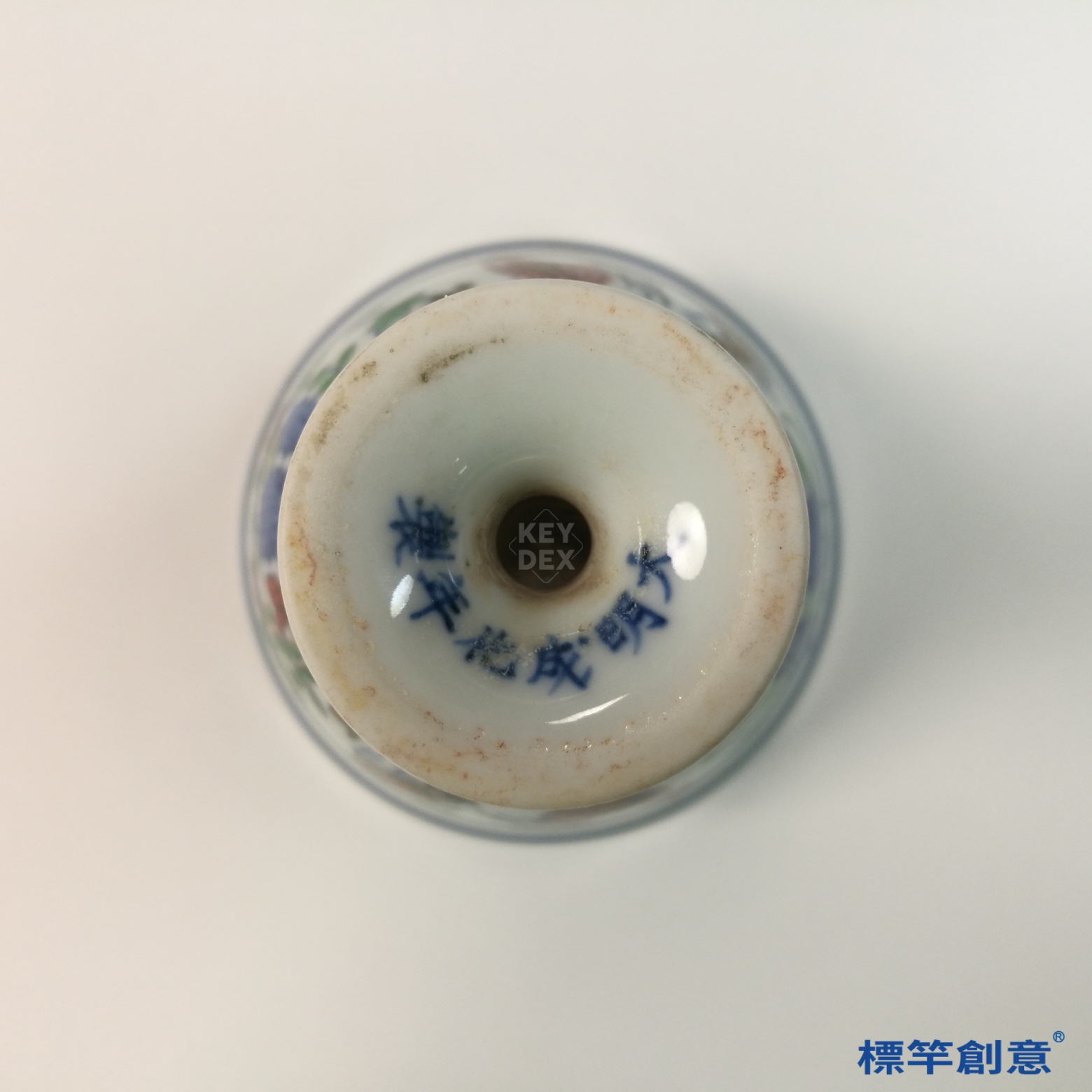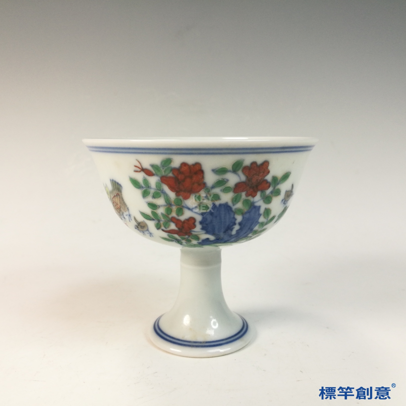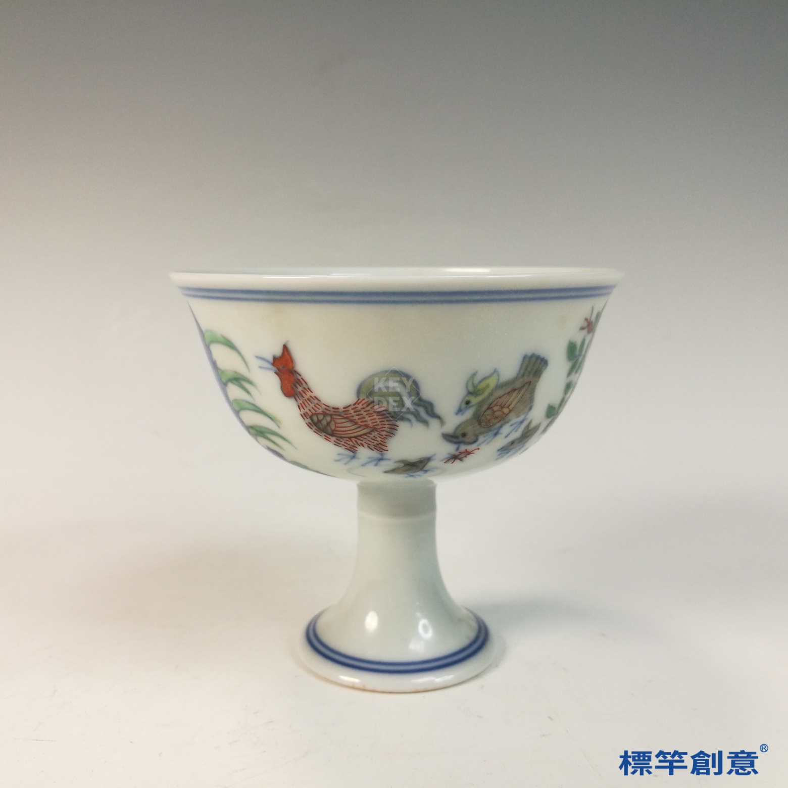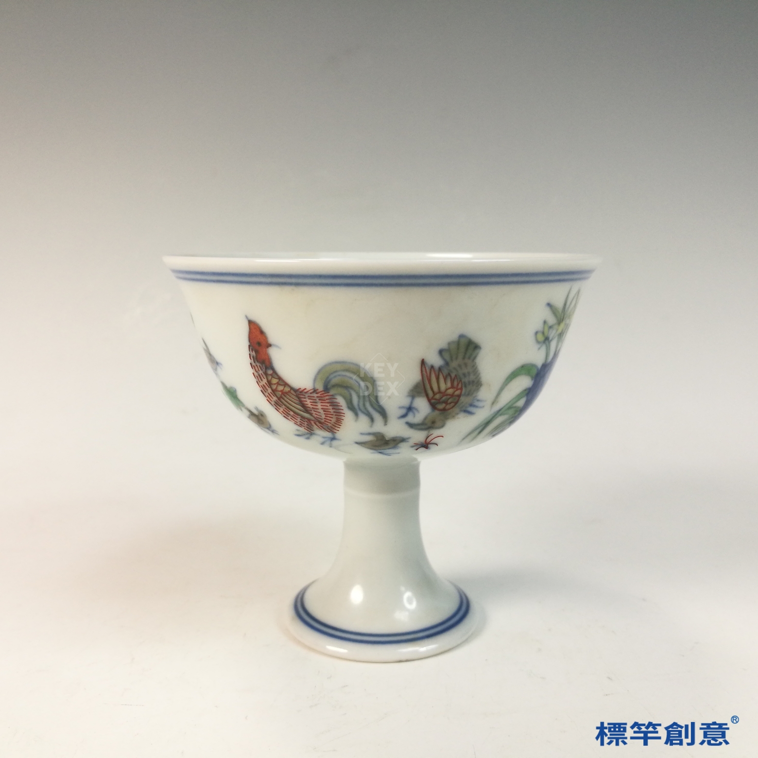 HB115 明中晚期鬥彩成化款雞雛牡丹紋高足杯