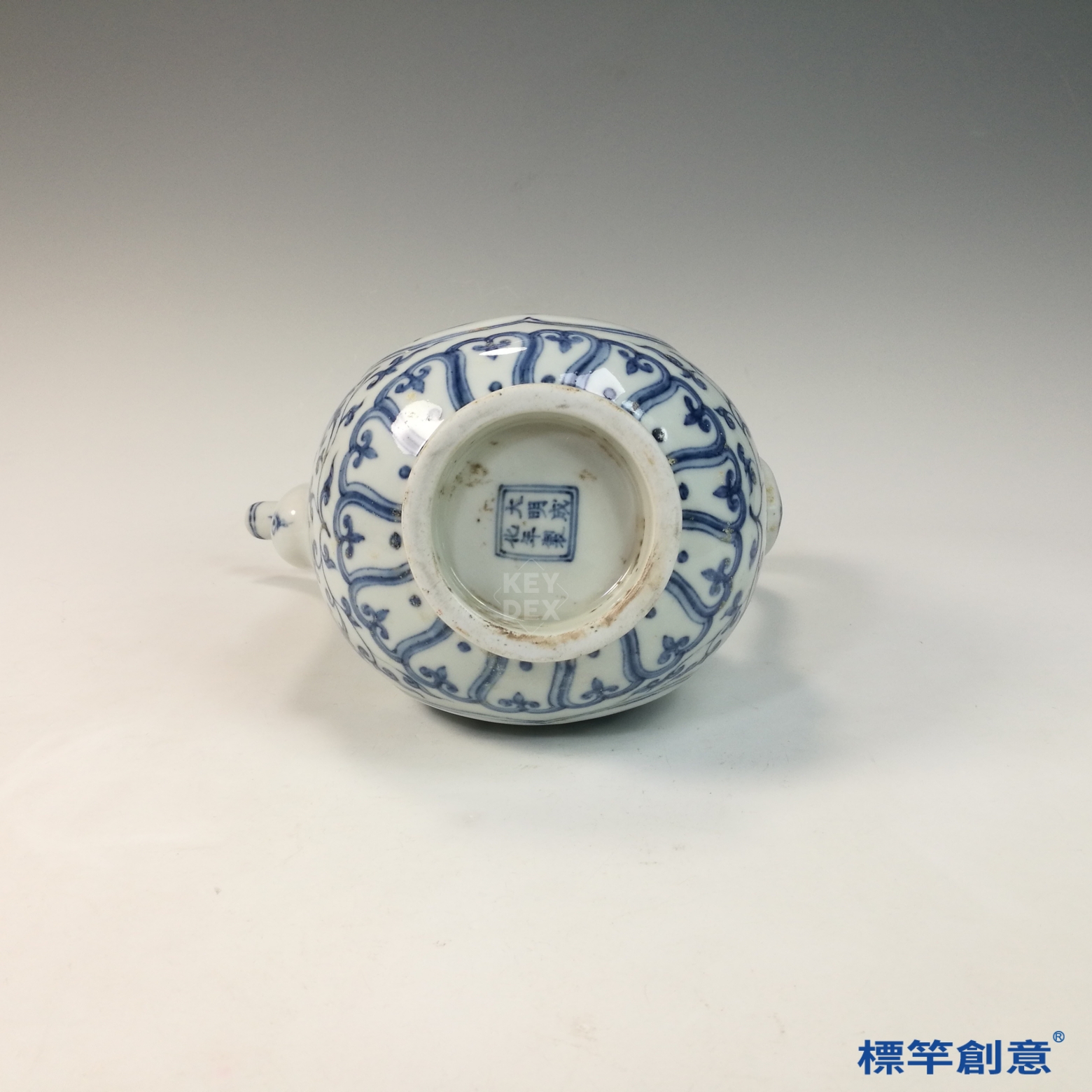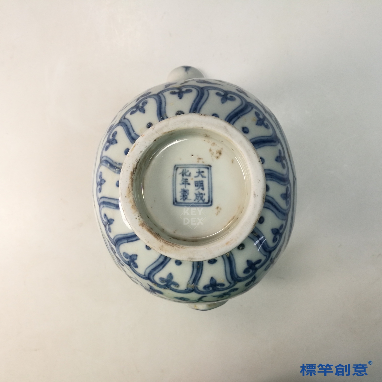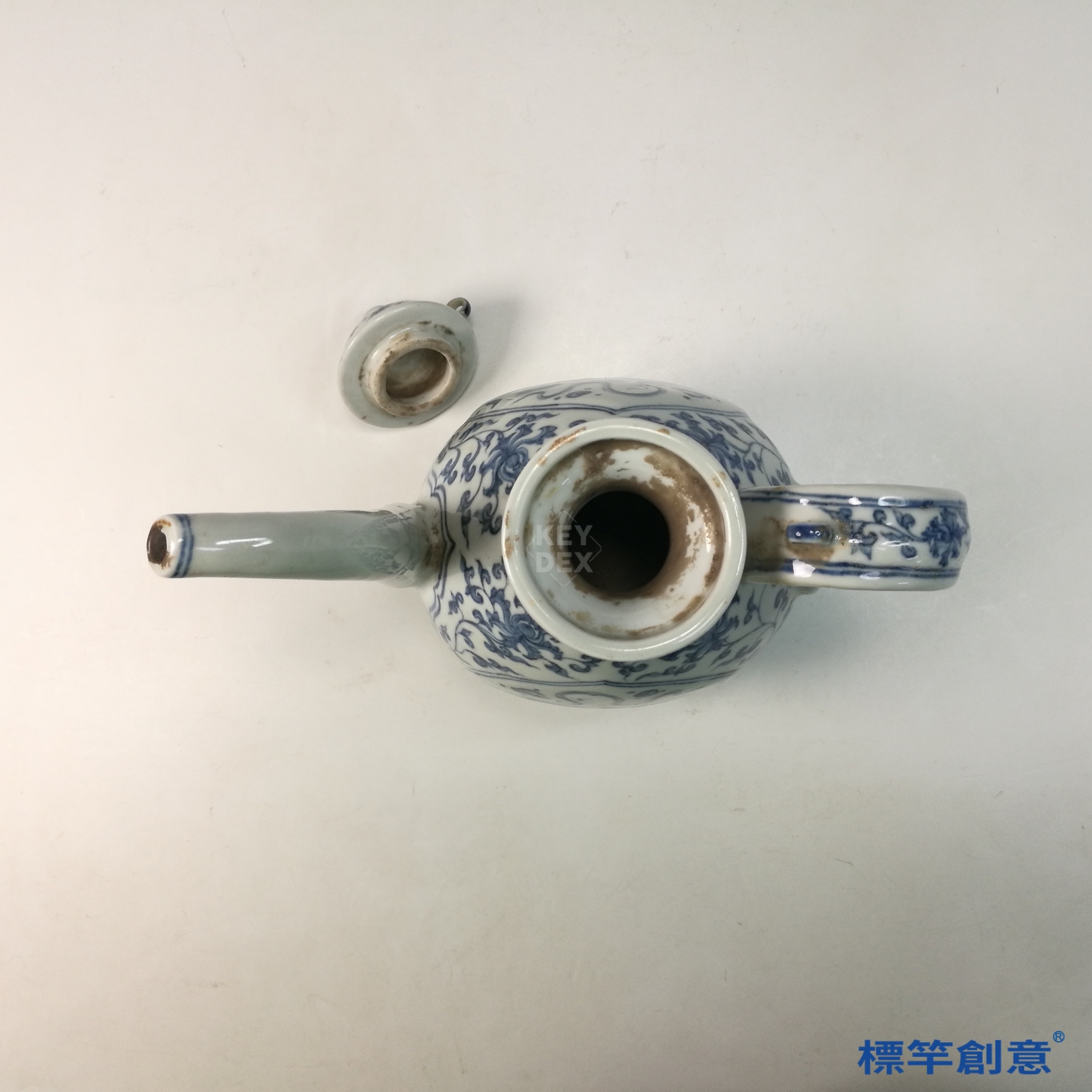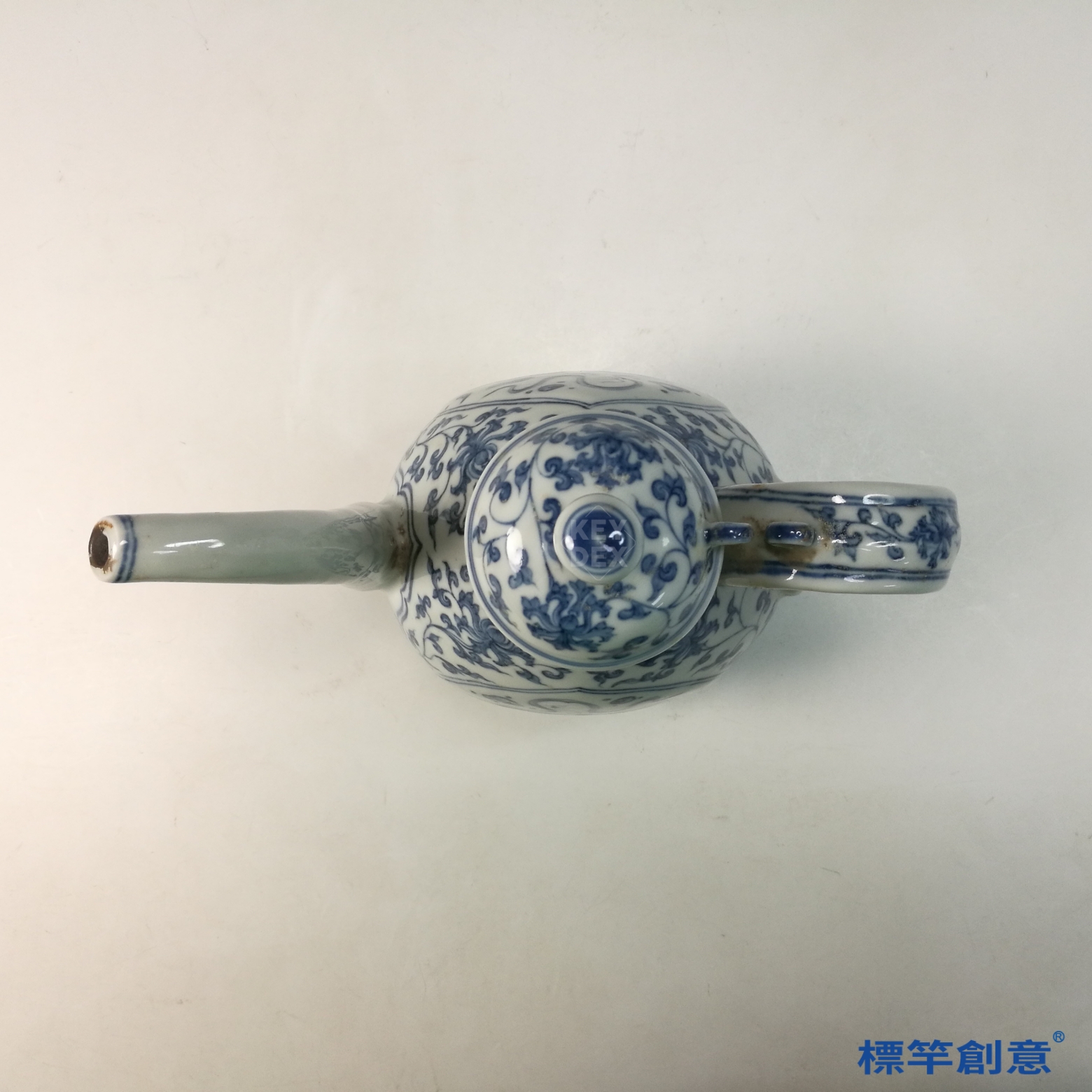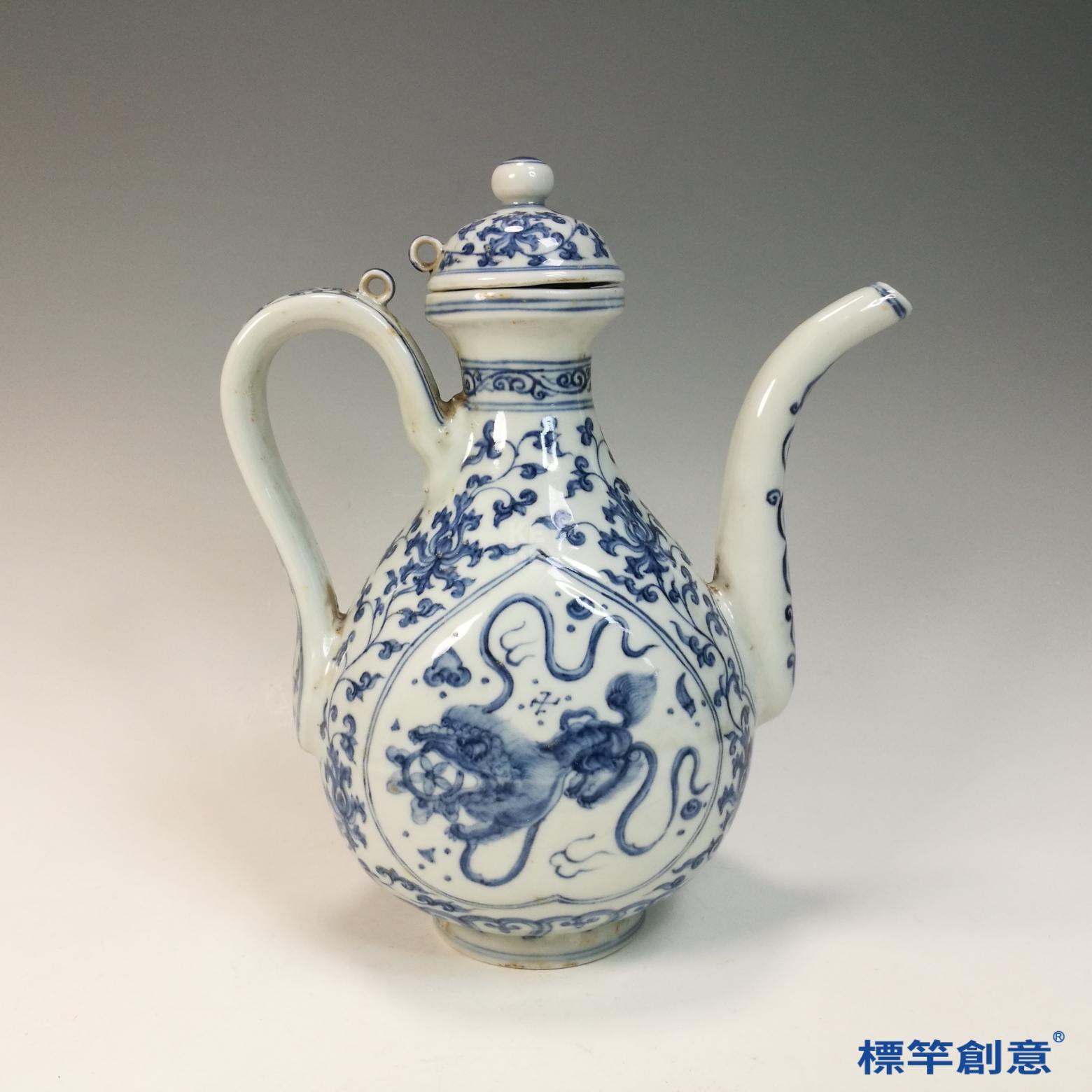 HB116 明中晚期靑花成化款獅子戲球紋帶蓋執壺