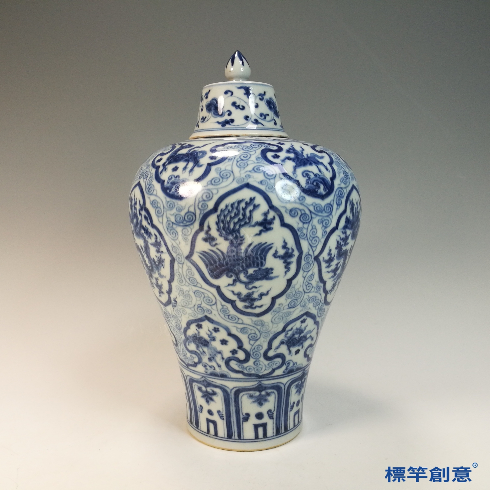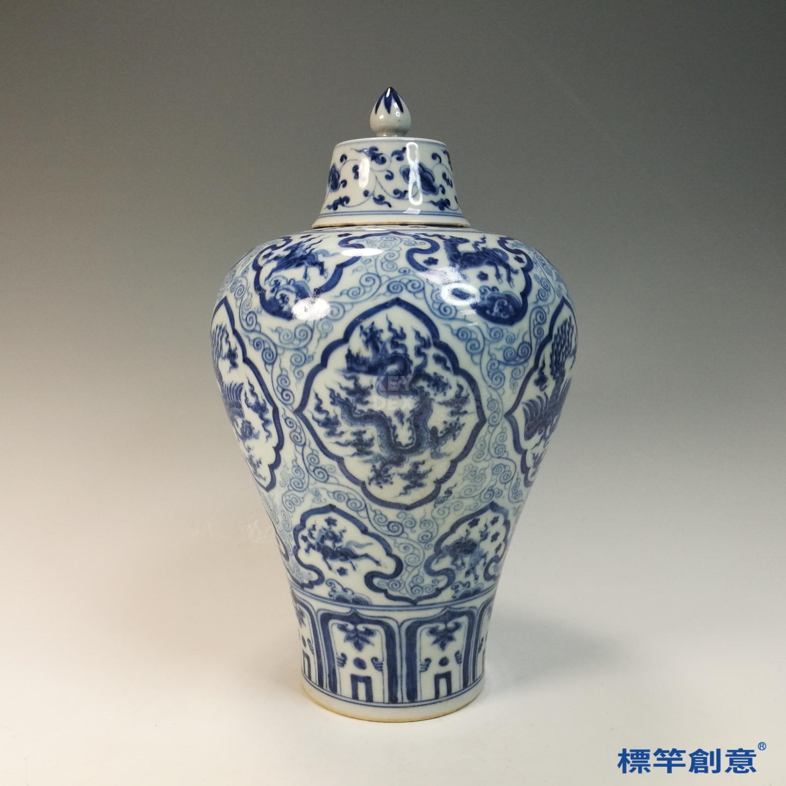 HB118 明中晚期青花成化款龍鳳紋帶蓋梅瓶