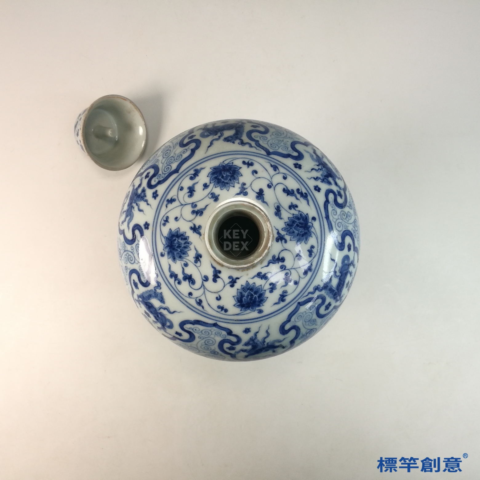 GA006 宋代湖田窯青白釉刻蓮瓣紋帶蓋供水鉢
