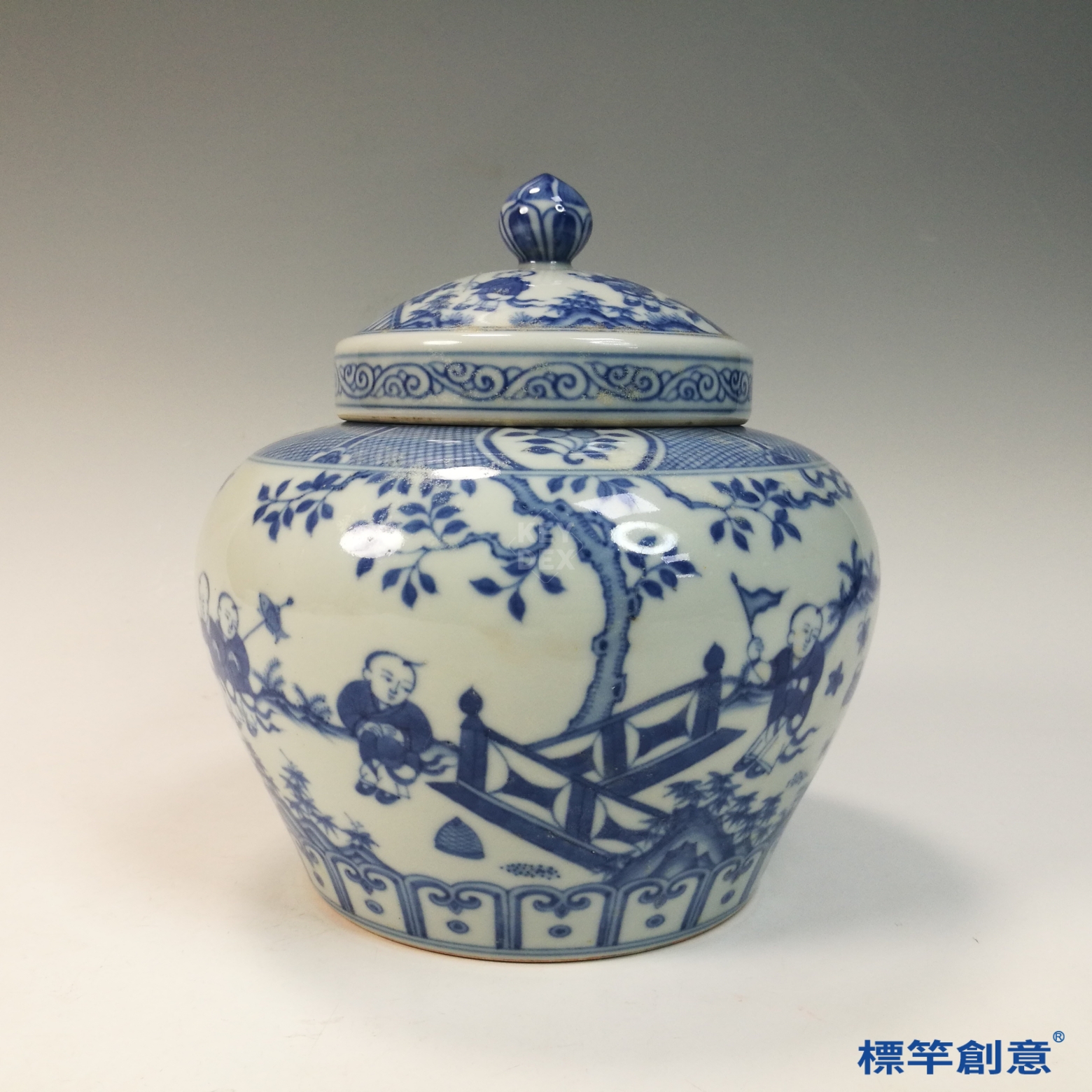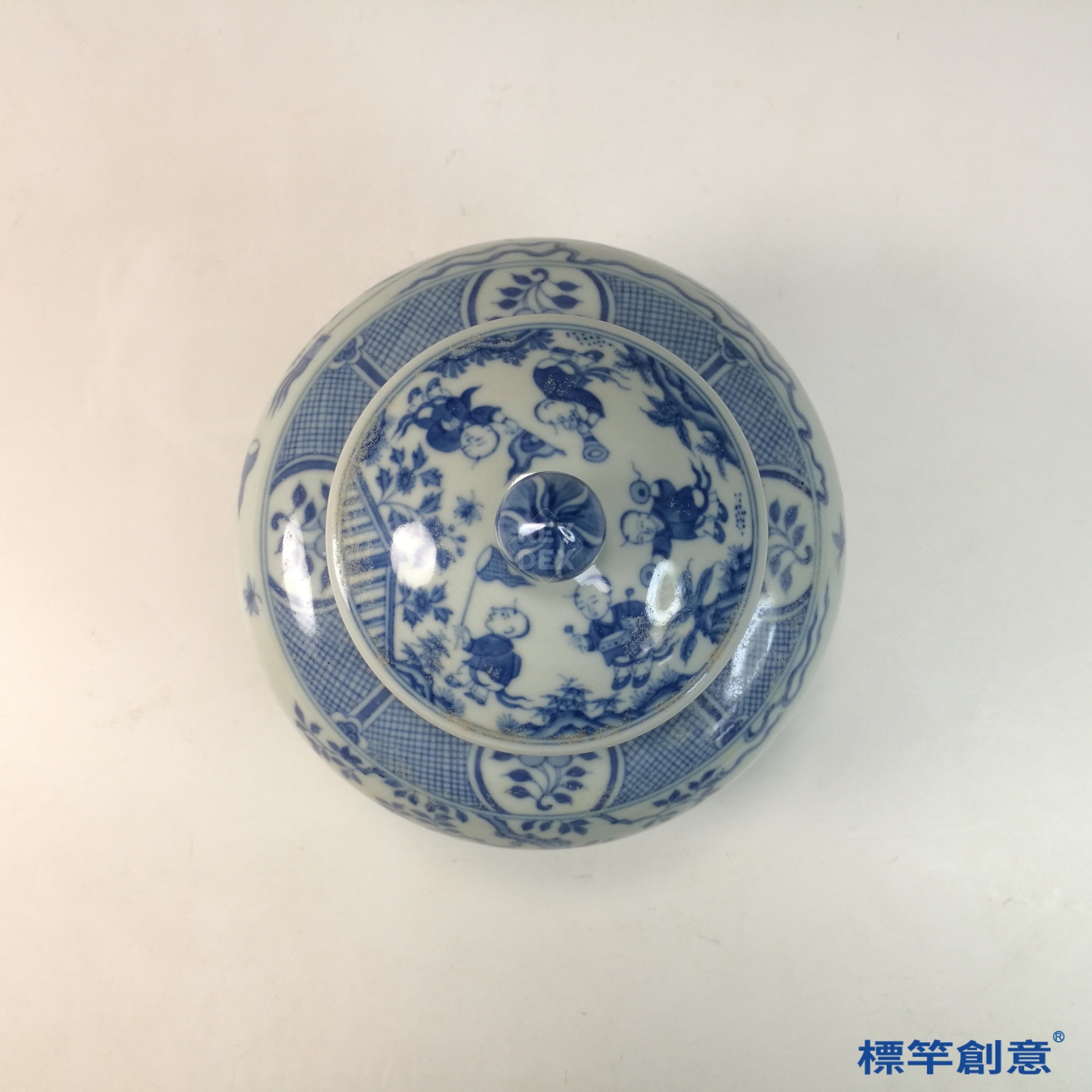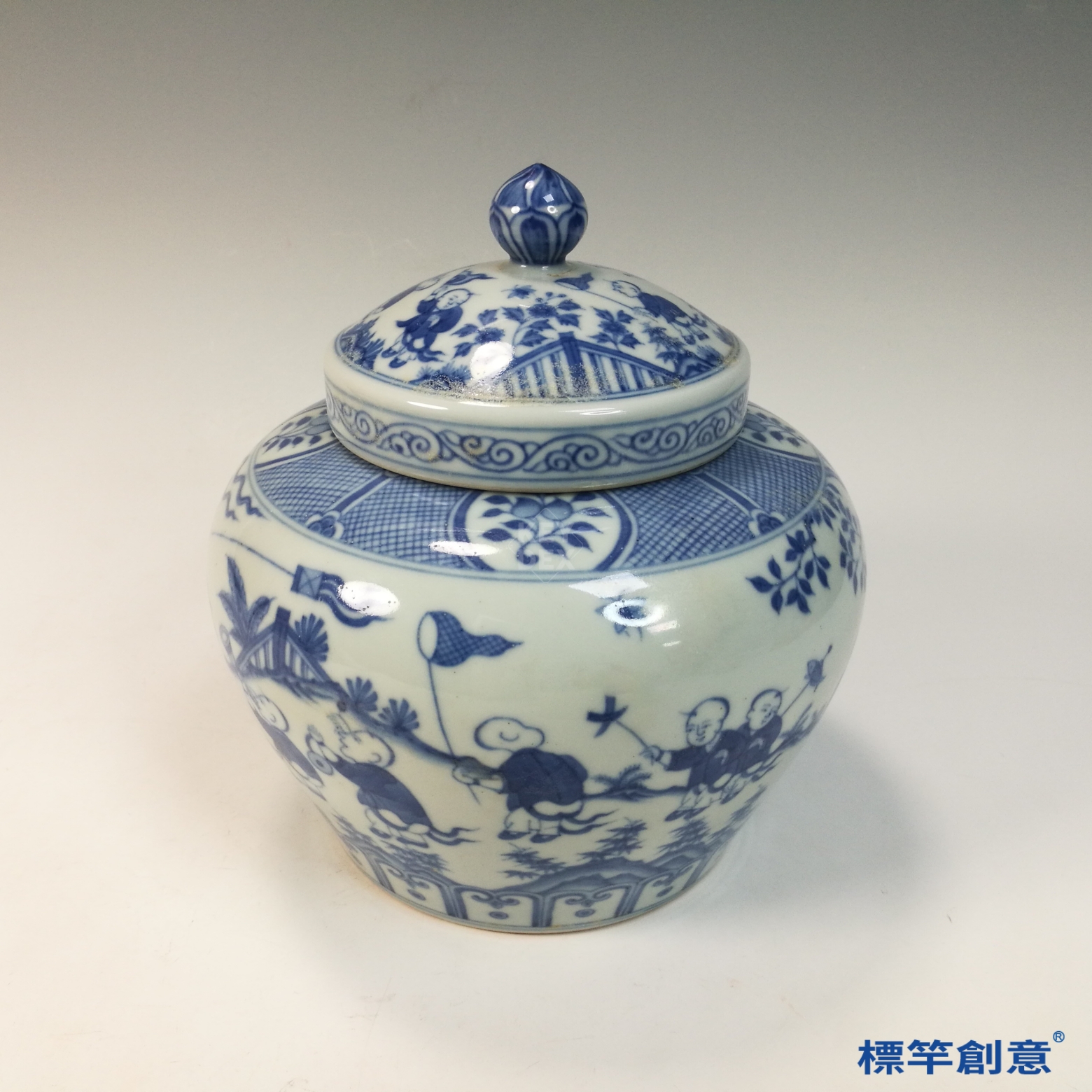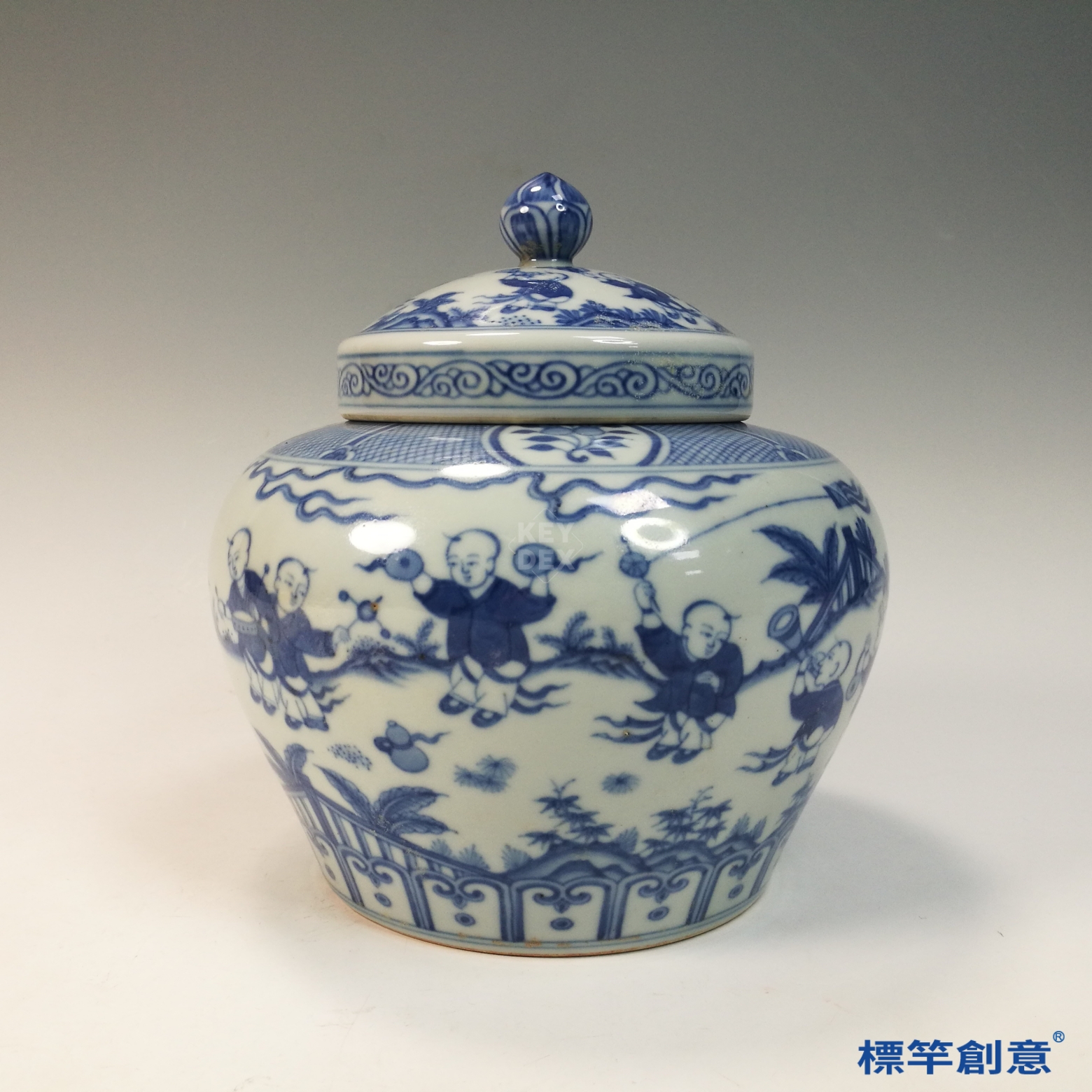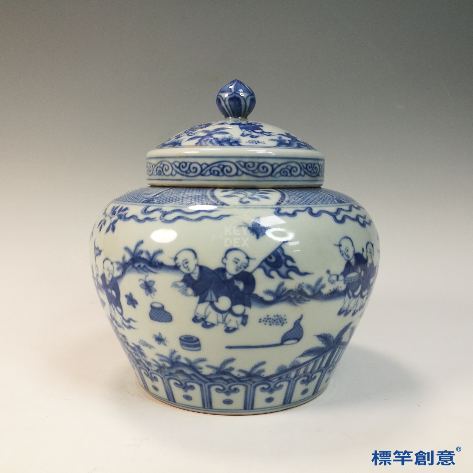 HB120 明中晚期青花成化款嬰戲紋蓋罐