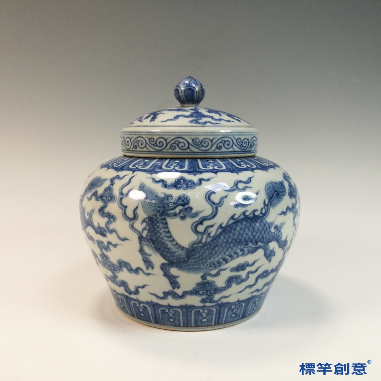 HB121 明中晚期青花成化款麒麟紋蓋罐