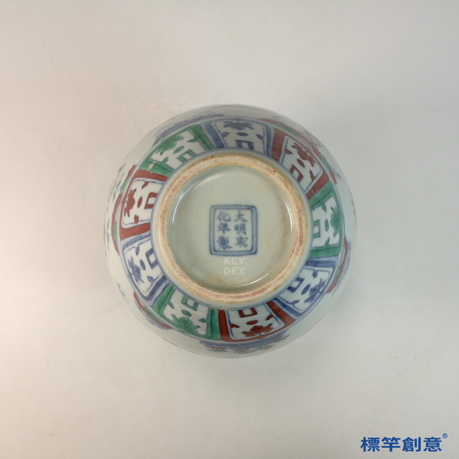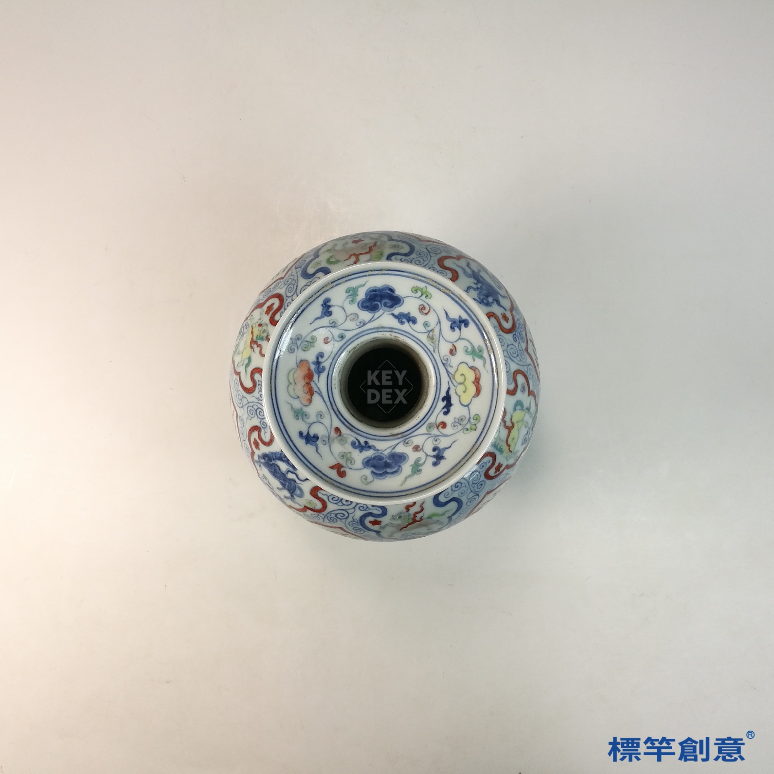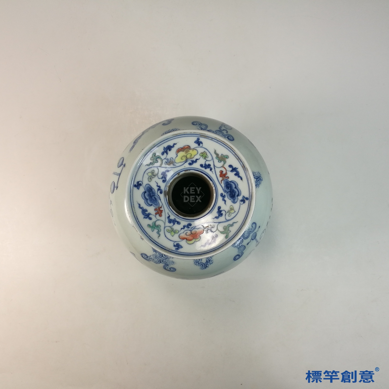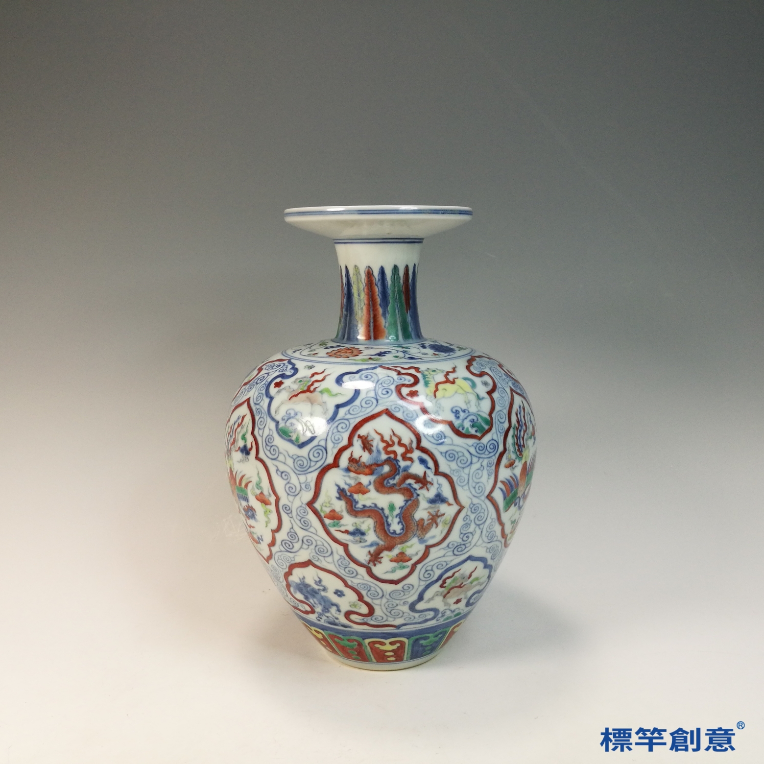 HB122 明中晚期青花五彩成化款嬰戲紋盤口瓶一對