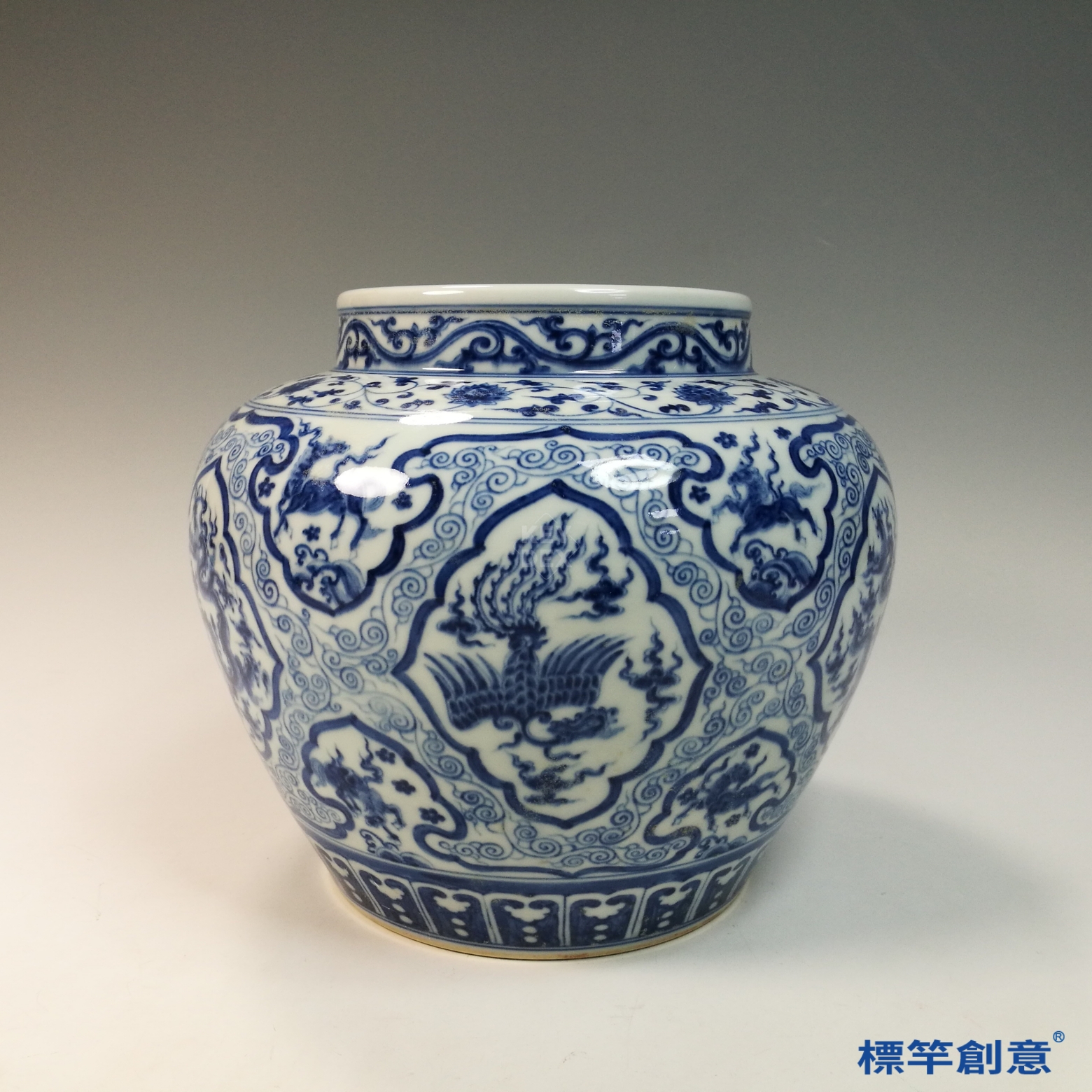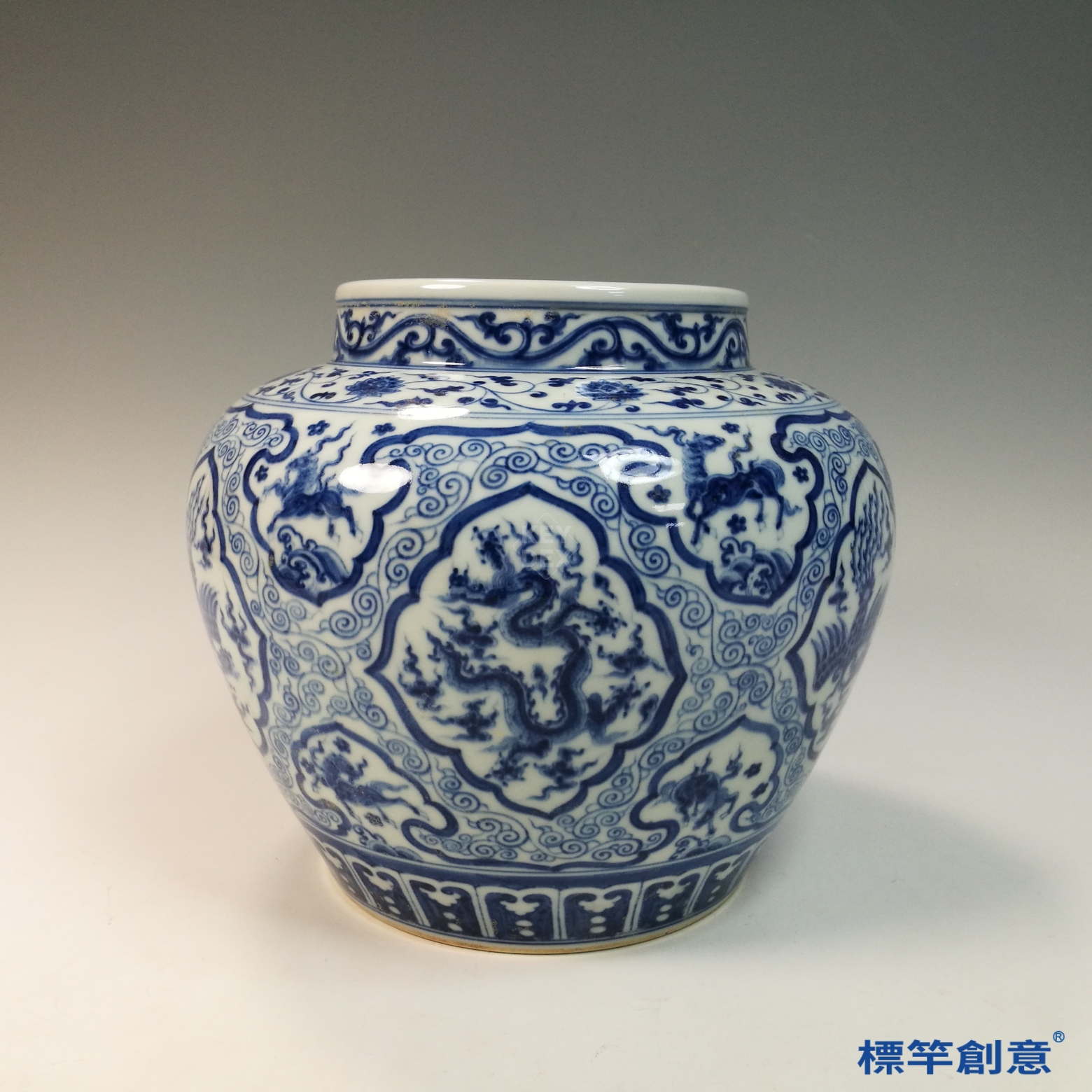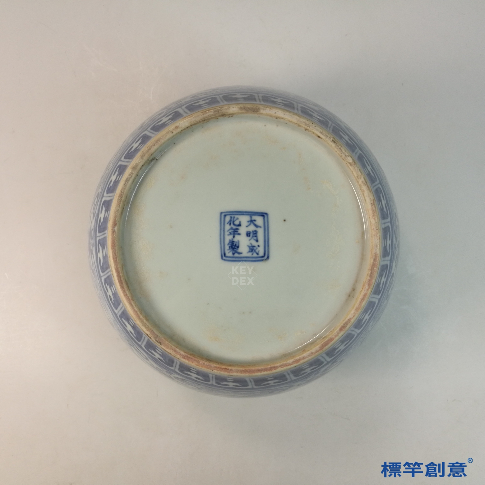 HB124 明中晚期青花成化款龍鳳紋蓋大罐