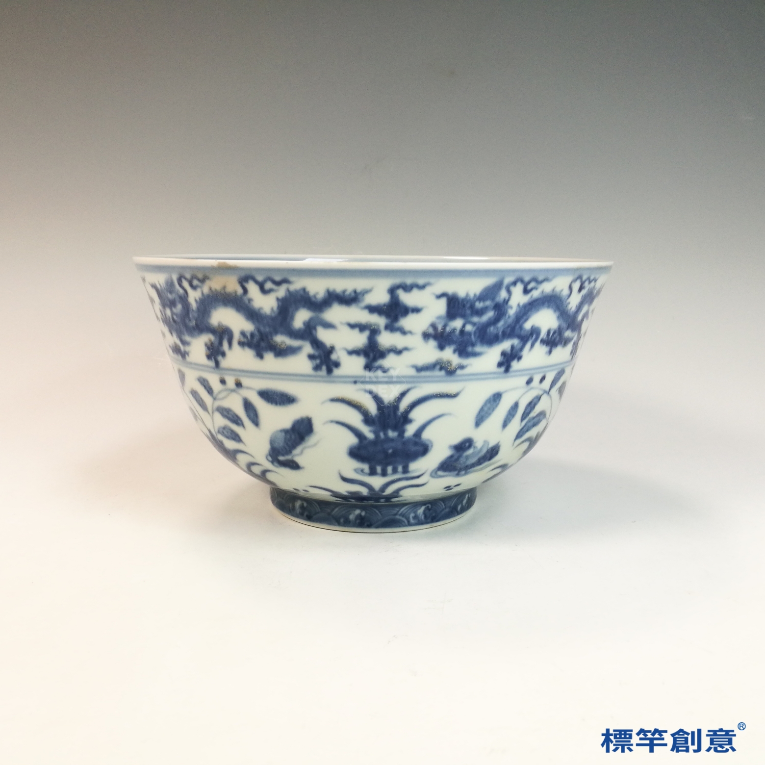 HB127 明中晚期青花成化款蓮塘鴛鴦紋大碗