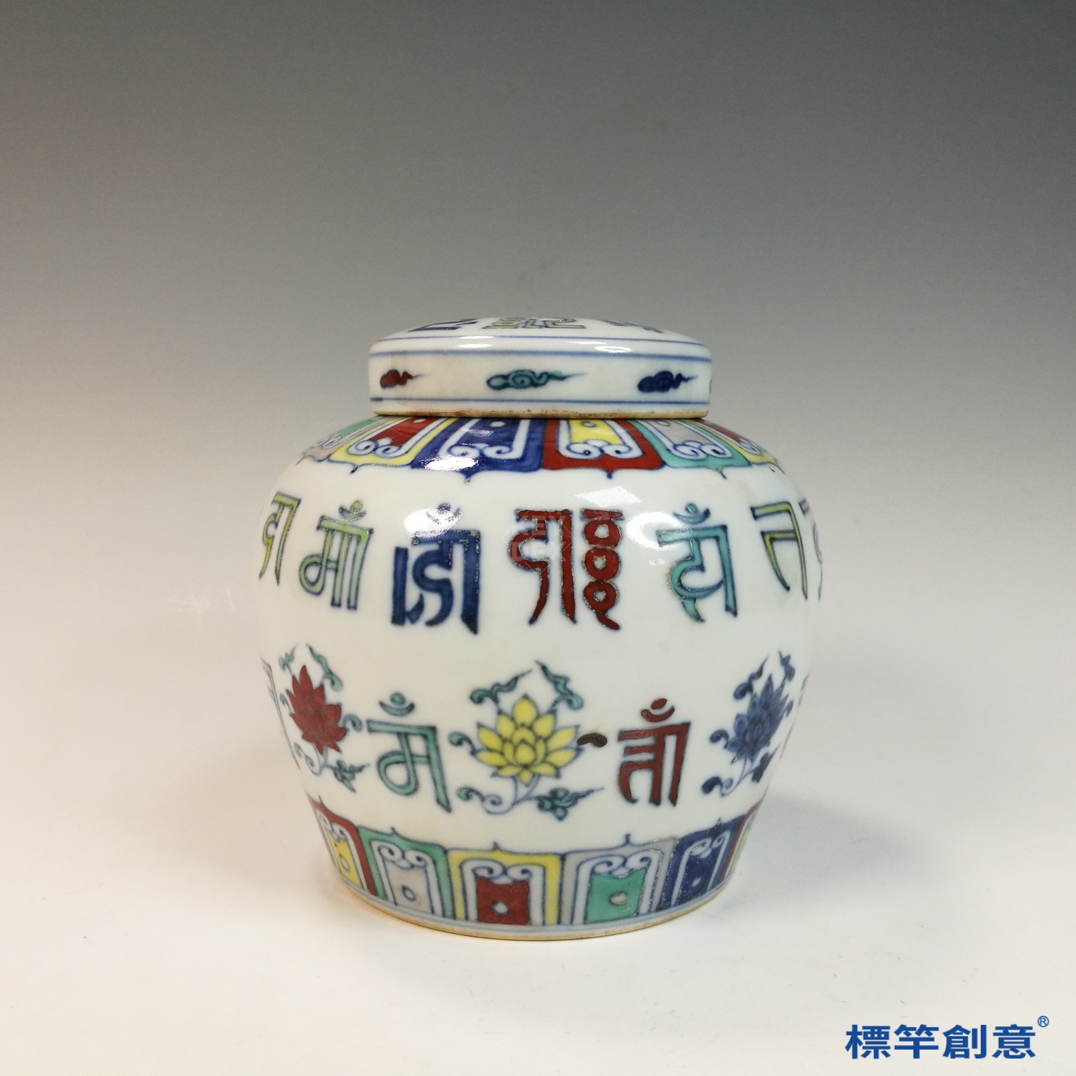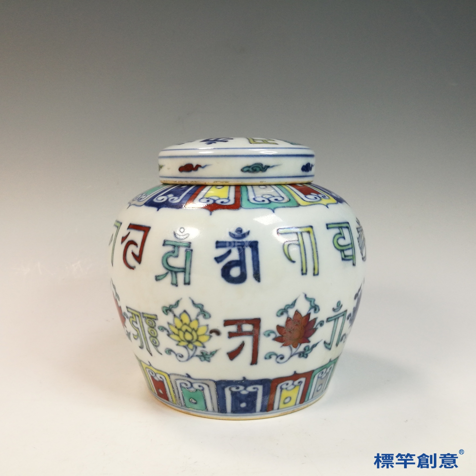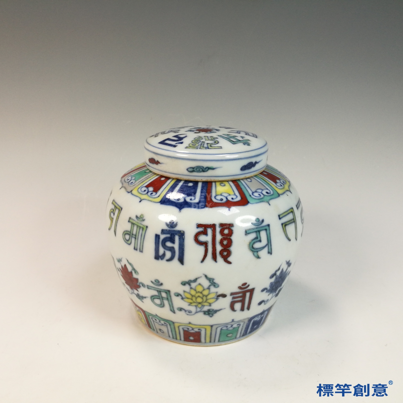 HB133 明中晚期鬥彩天字款蓮花紋梵文罐