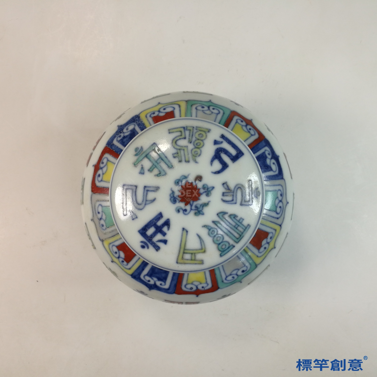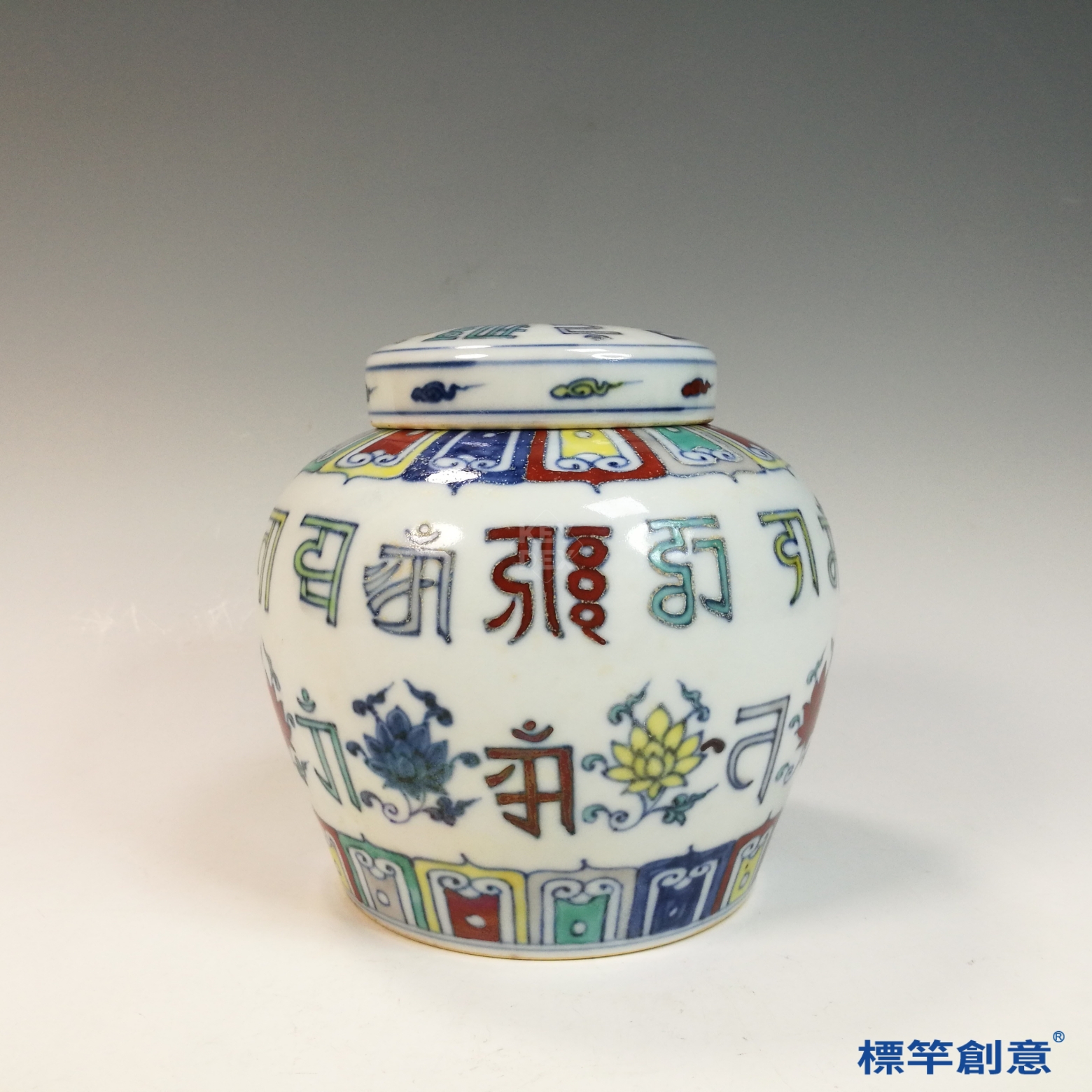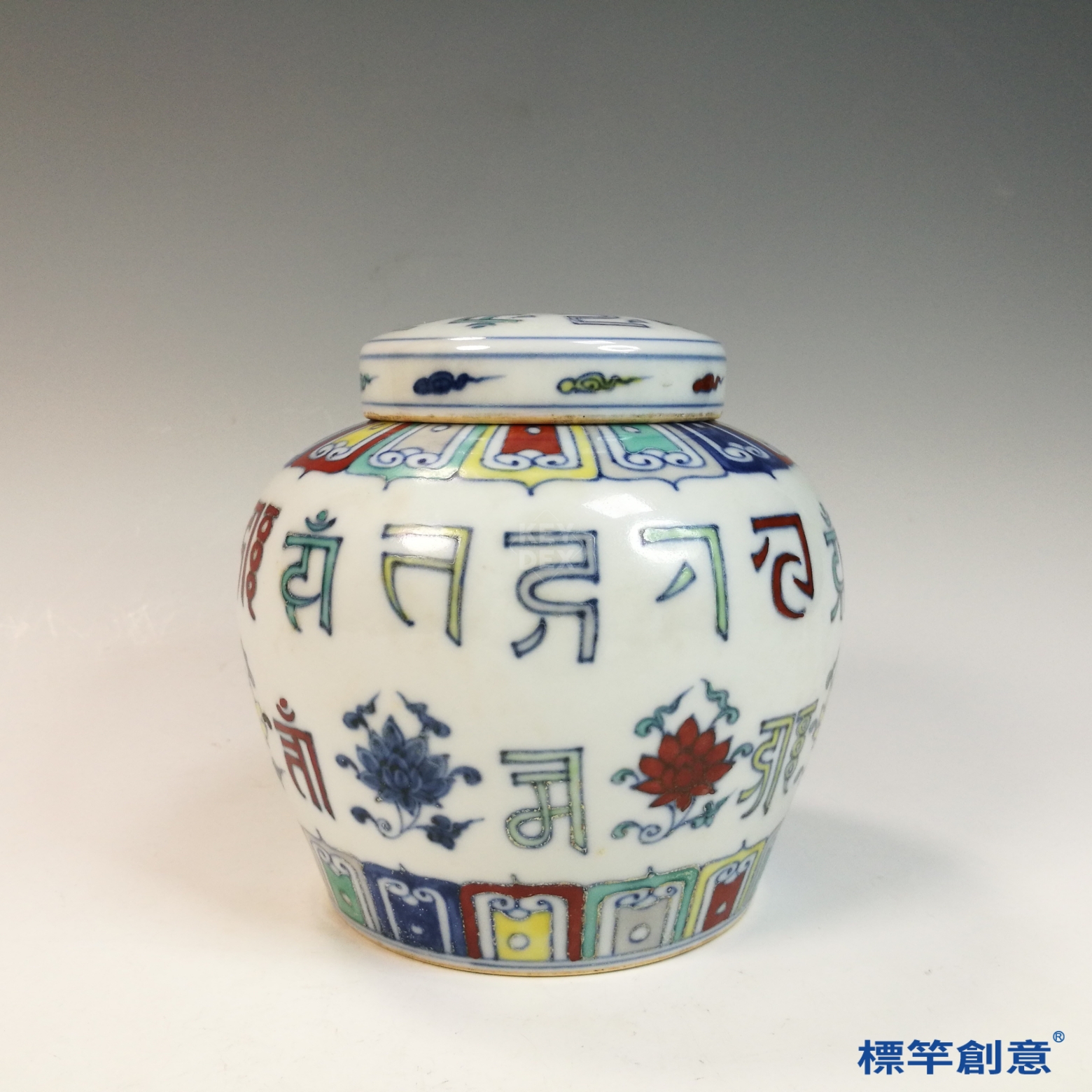 HB133 明中晚期鬥彩天字款蓮花紋梵文罐