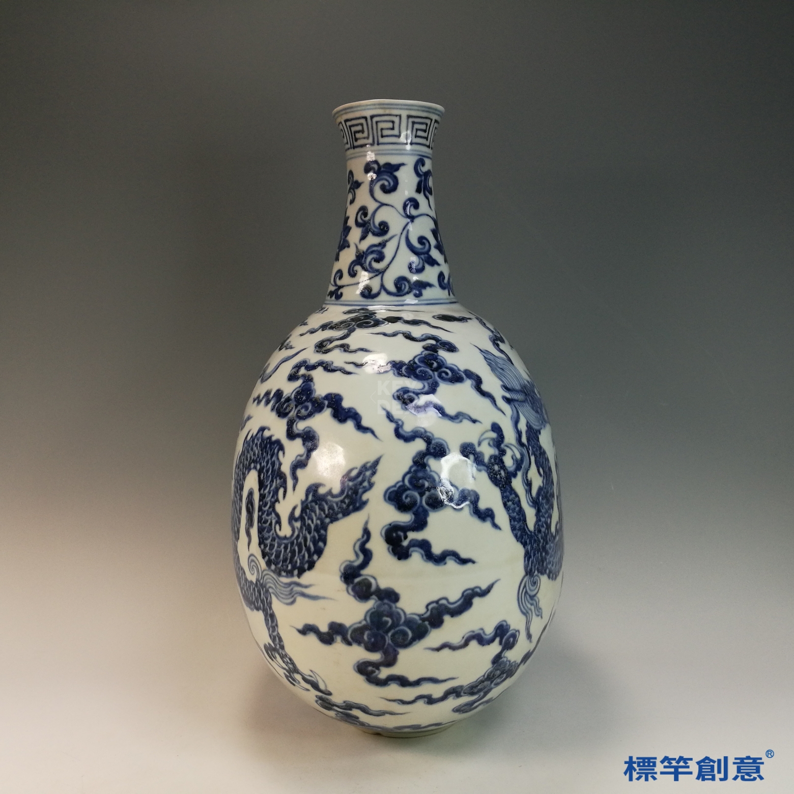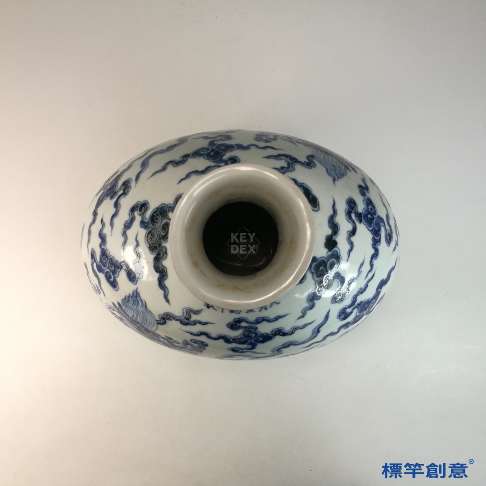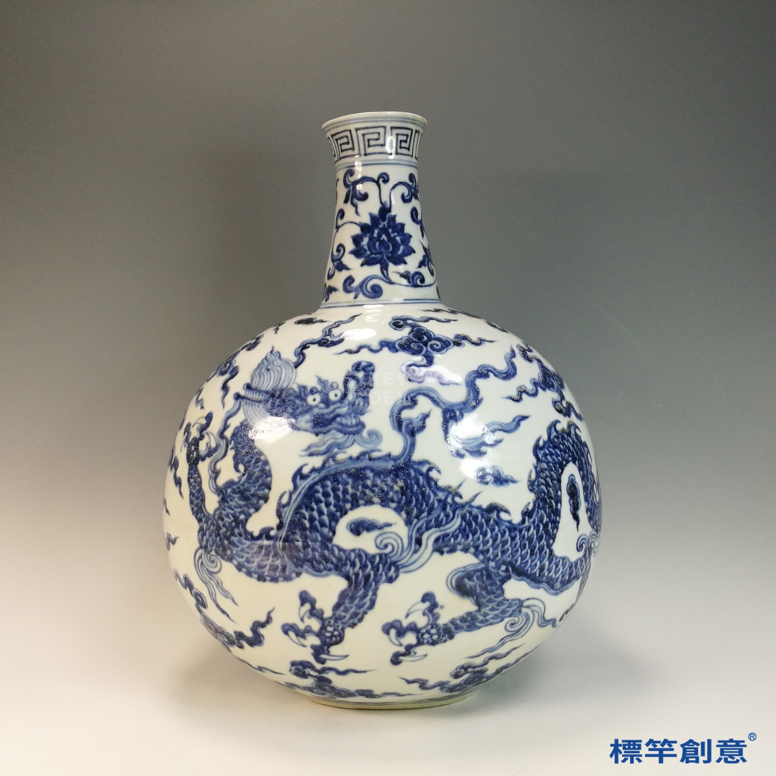 HB141 明宣德景德鎭官窯青花繪三爪龍紋抱月扁瓶