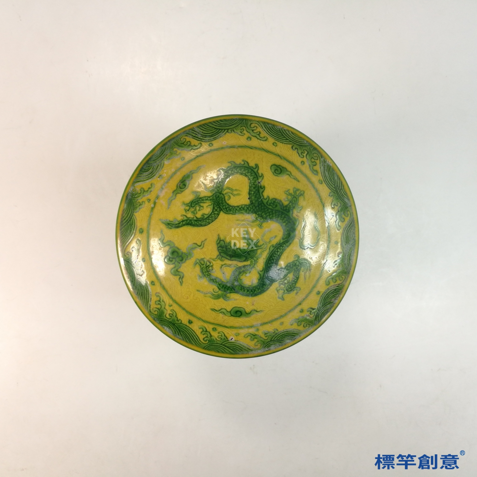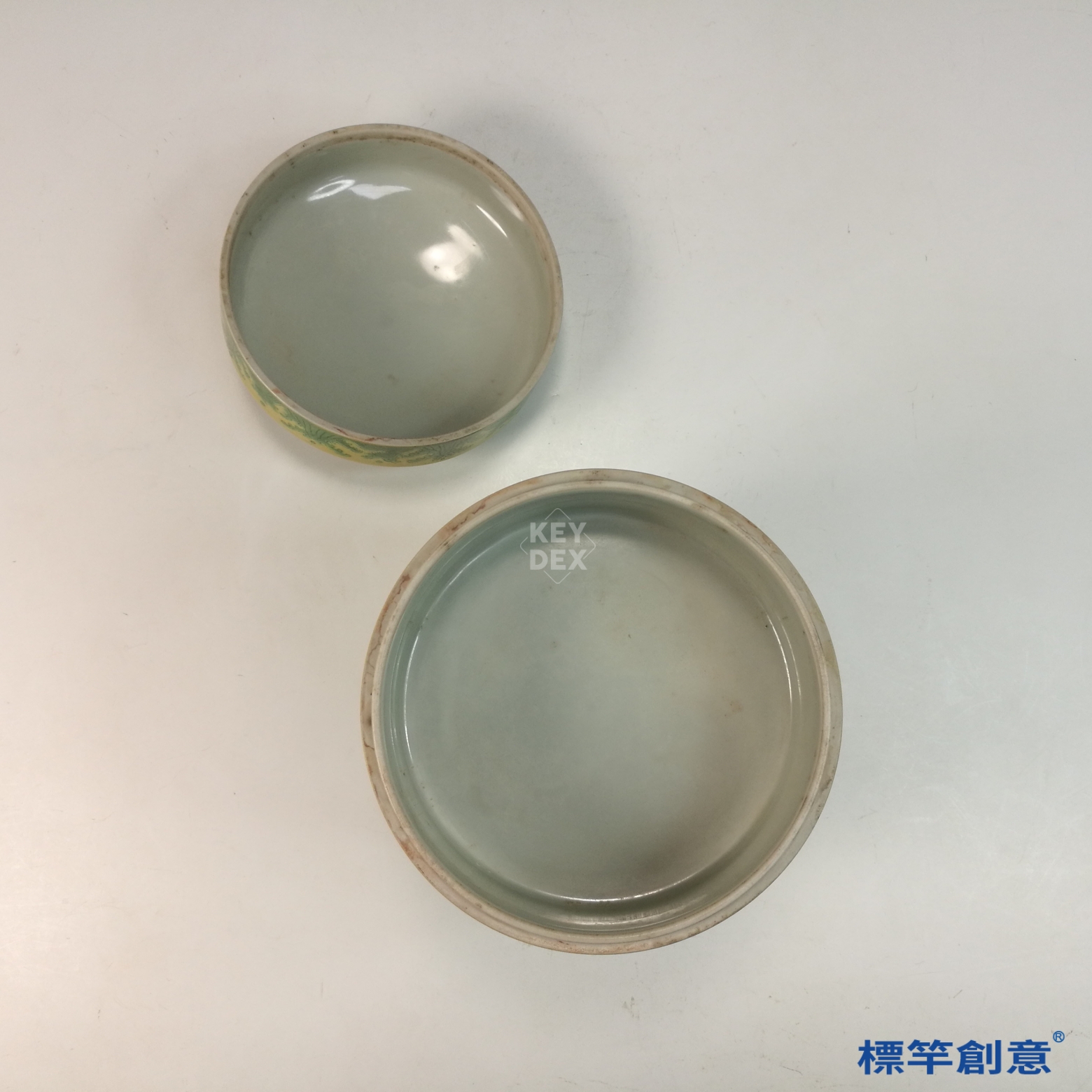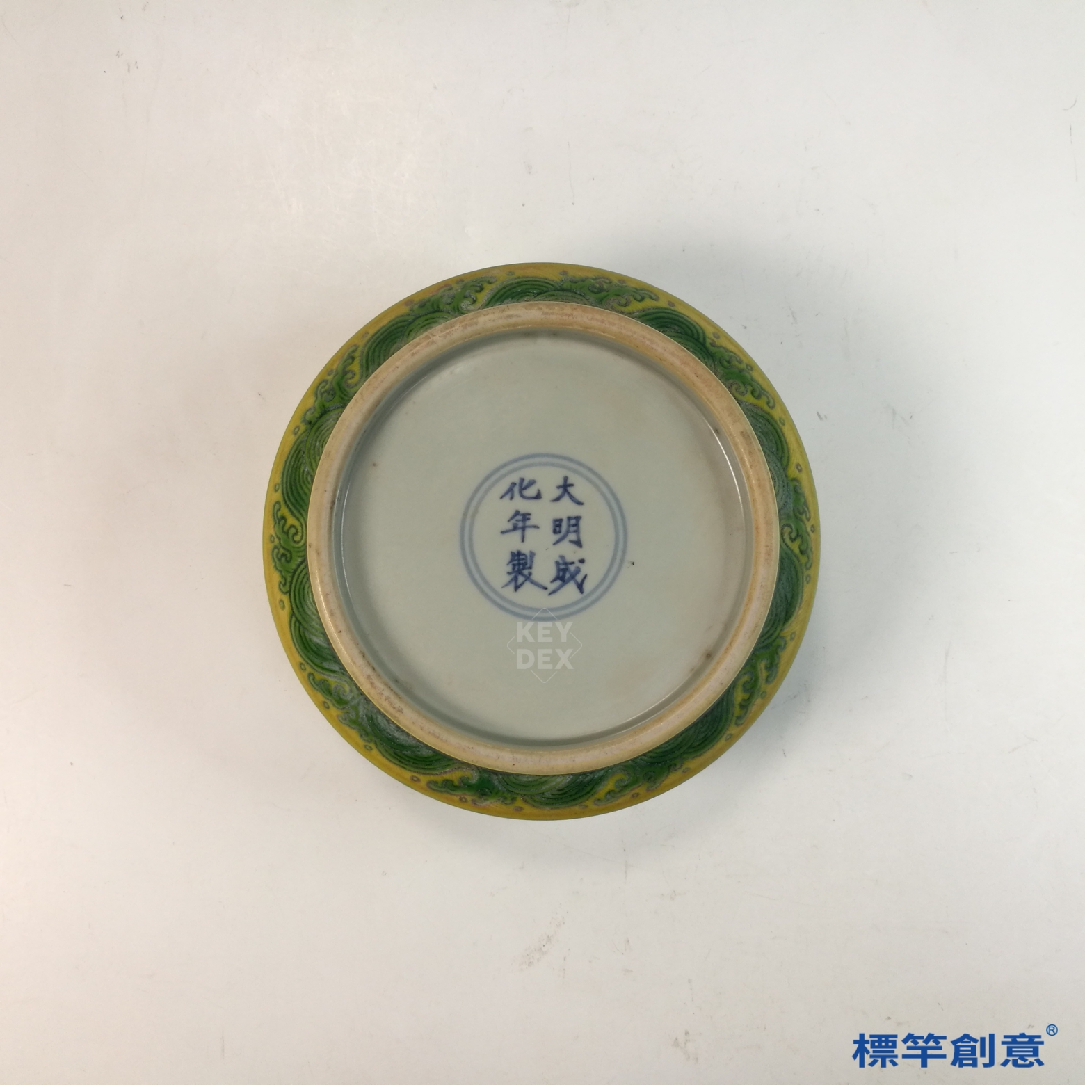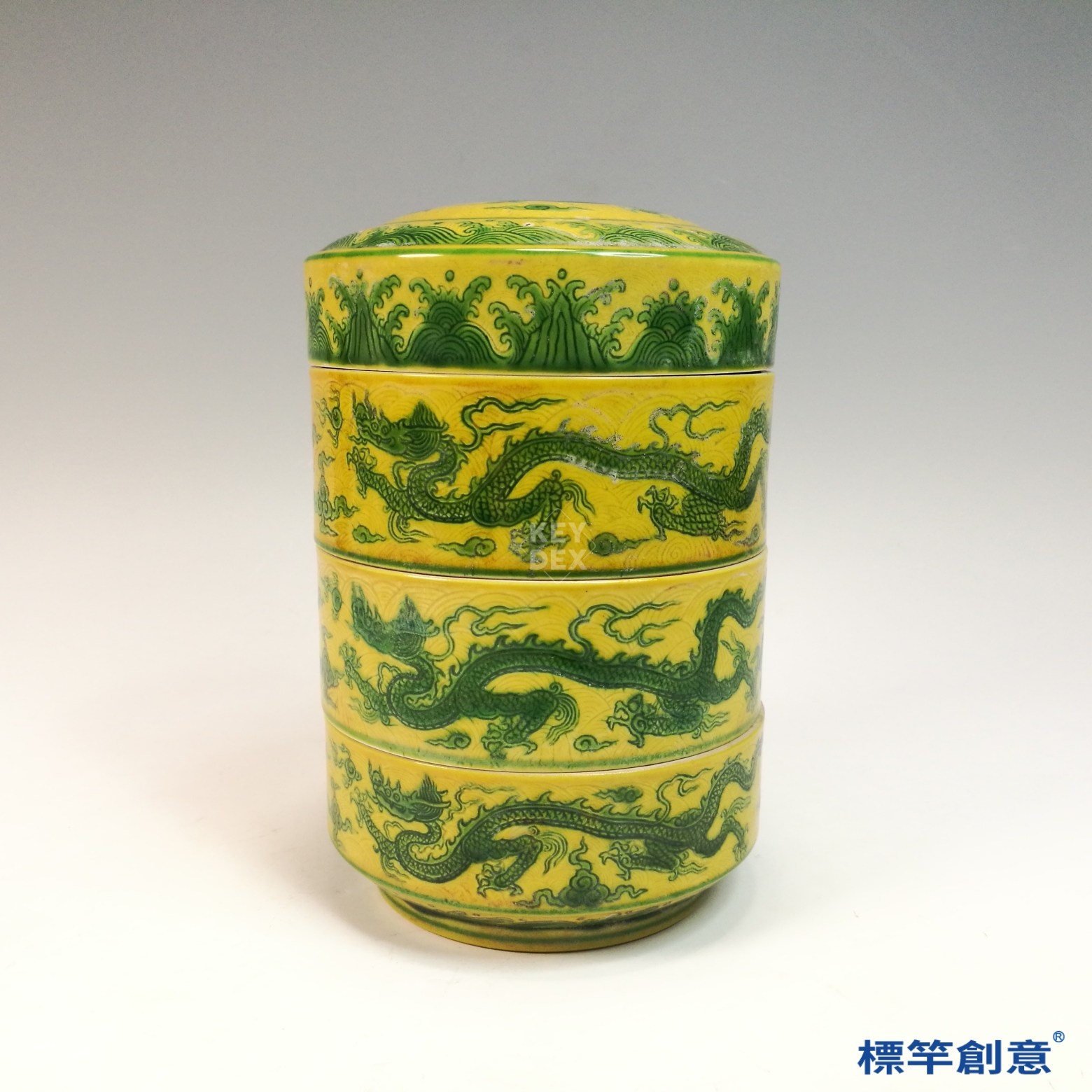 HB144 明代成化景德鎭官窯黃釉綠彩五爪龍紋三層套盒