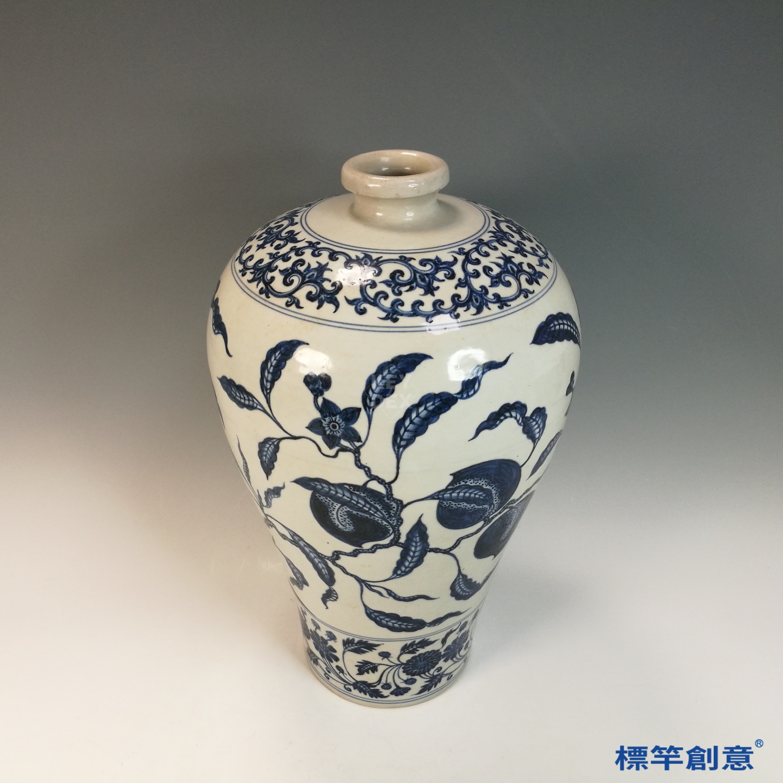 HB145 明代萬曆景德鎭窯青花石榴枝葉紋梅瓶