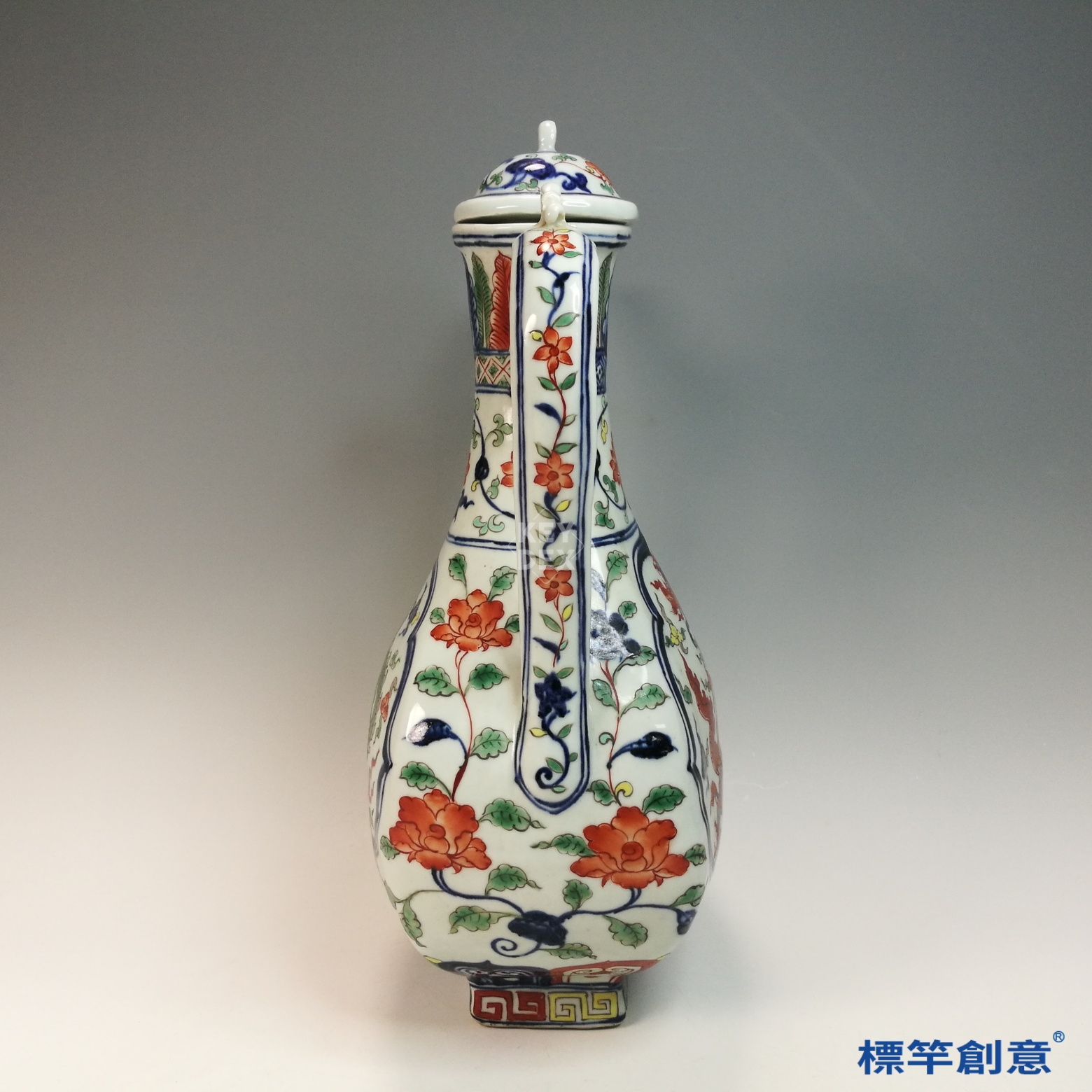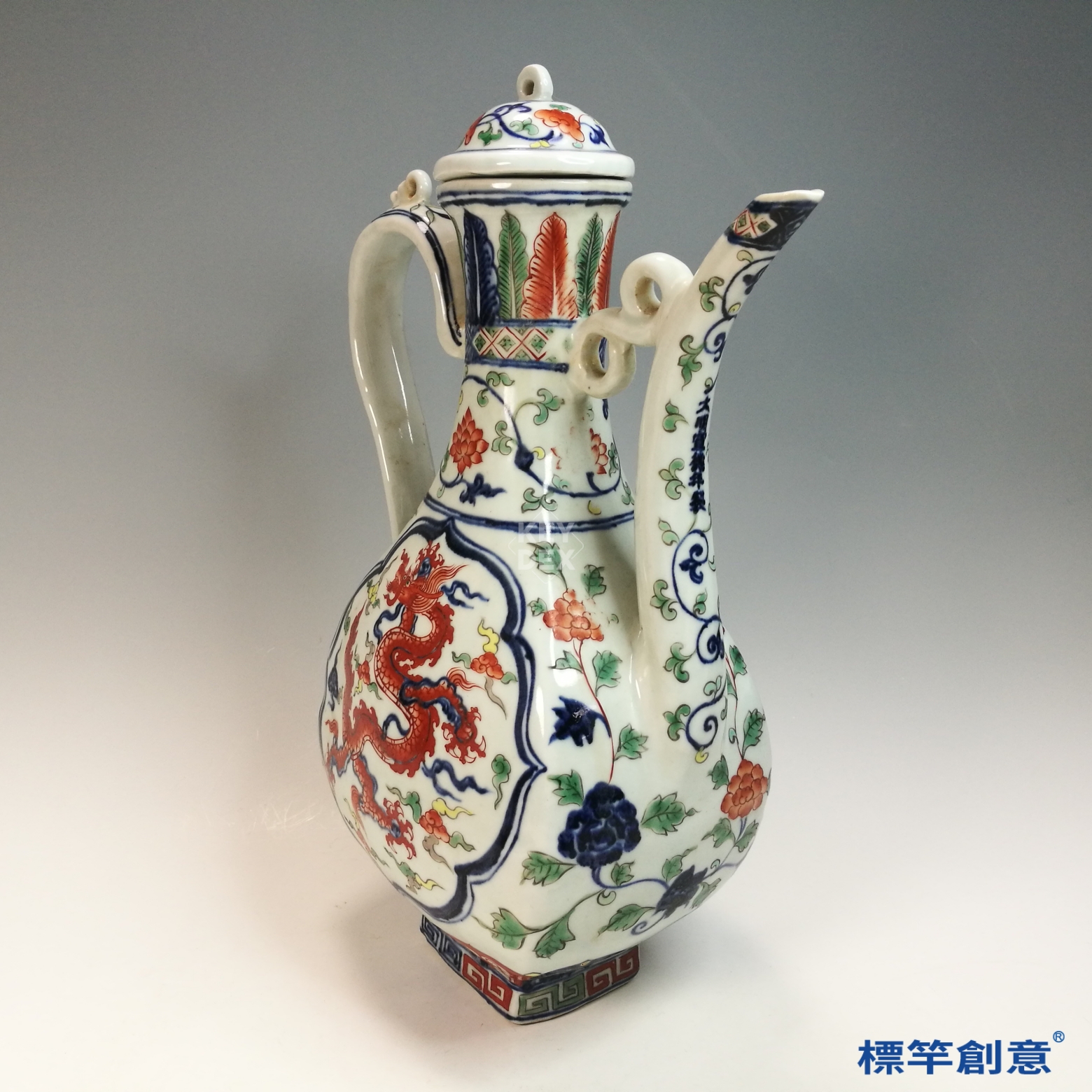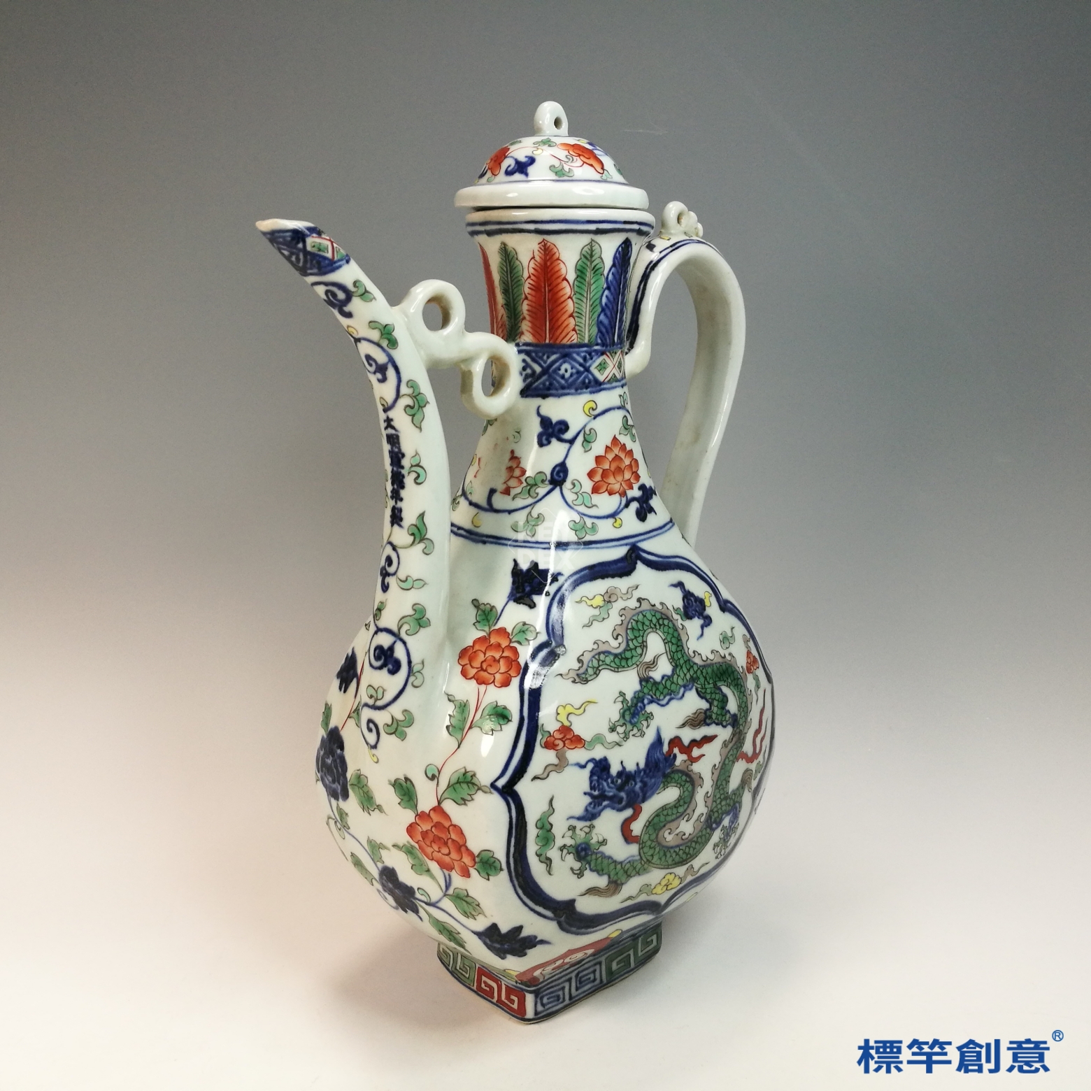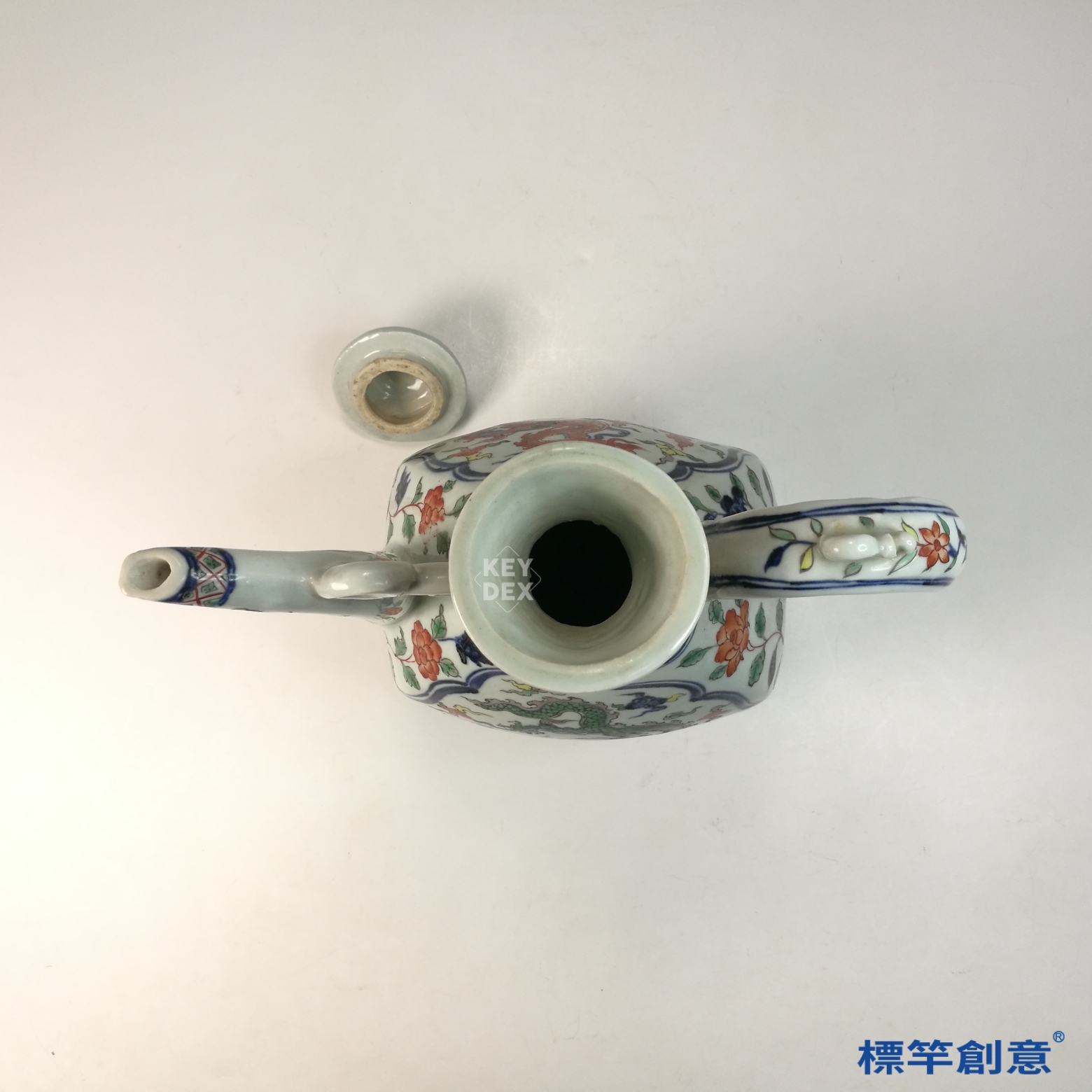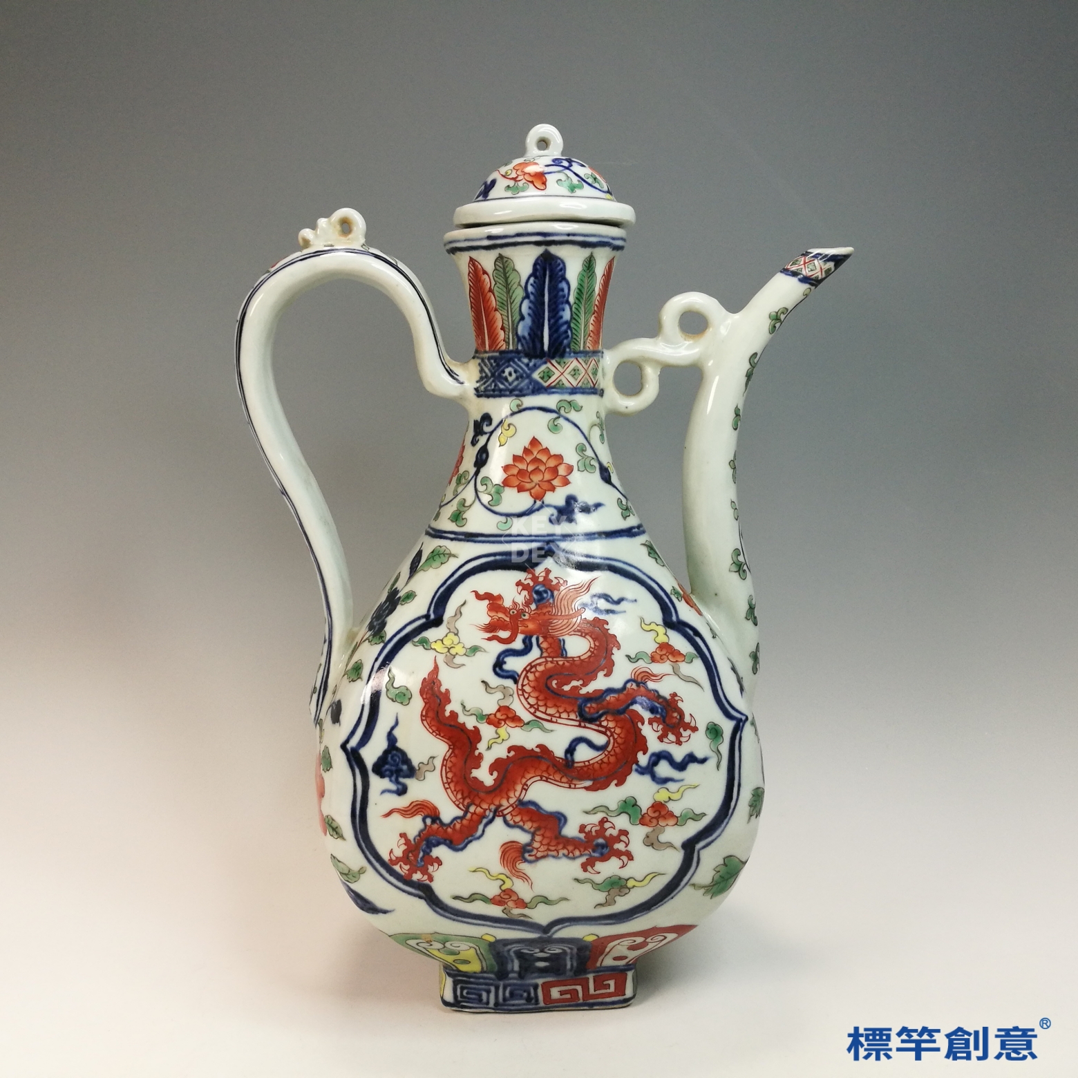 HB146 明代嘉靖景德鎮民窯五彩五爪龍紋宣德款外銷執壺