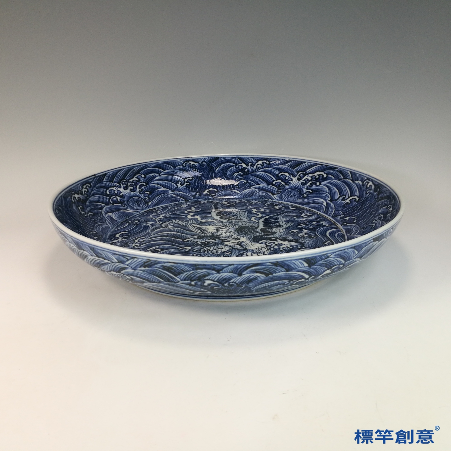HB147 明代宣德景德鎮窯青花海水飛象紋盤
