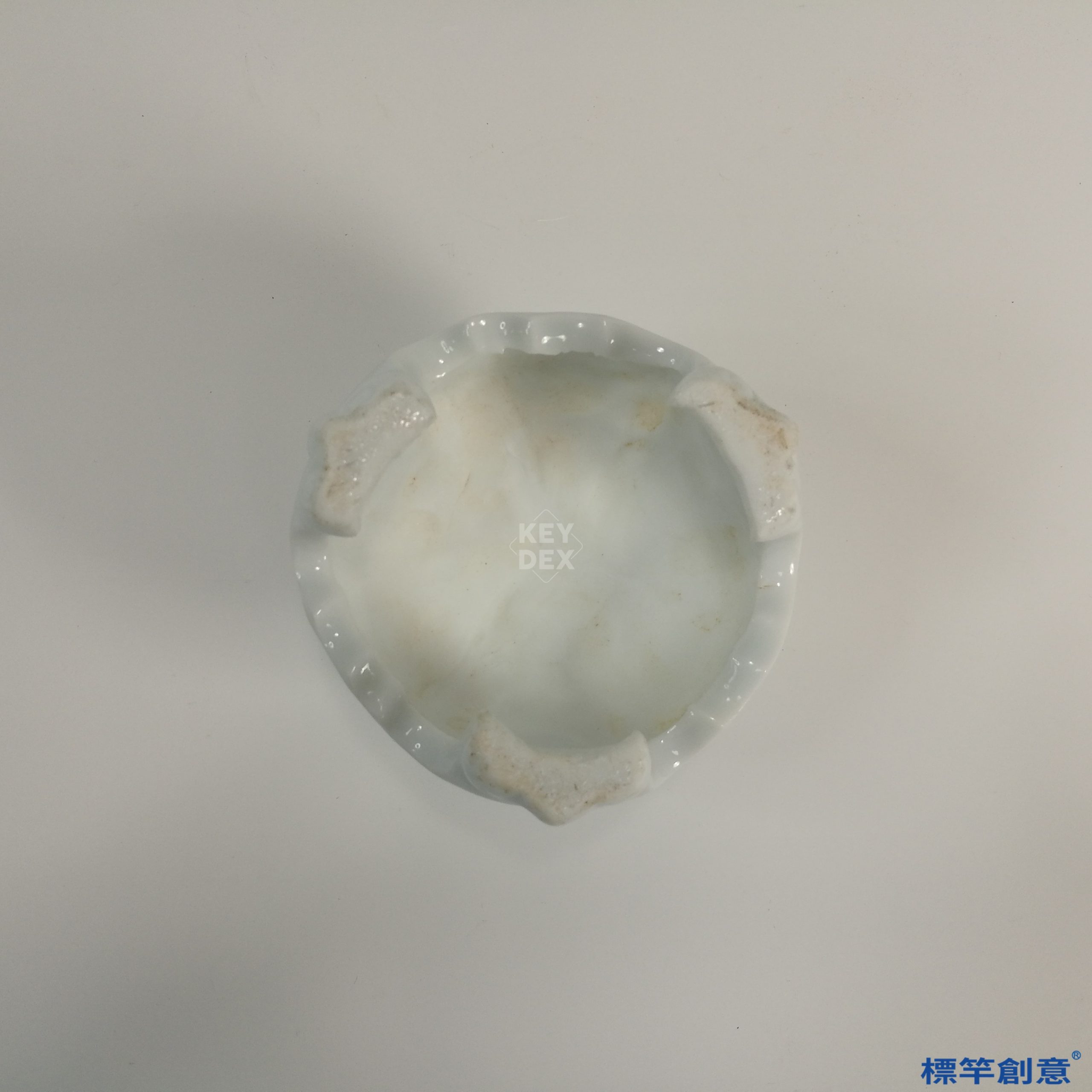 以模製成形,雕刻蓮瓣紋後施釉,高溫氧化焰燒成,燒成溫度約在1250℃。胎釉結合緊密,整體燒成均勻,足見清晚景德鎮窯成熟技藝。