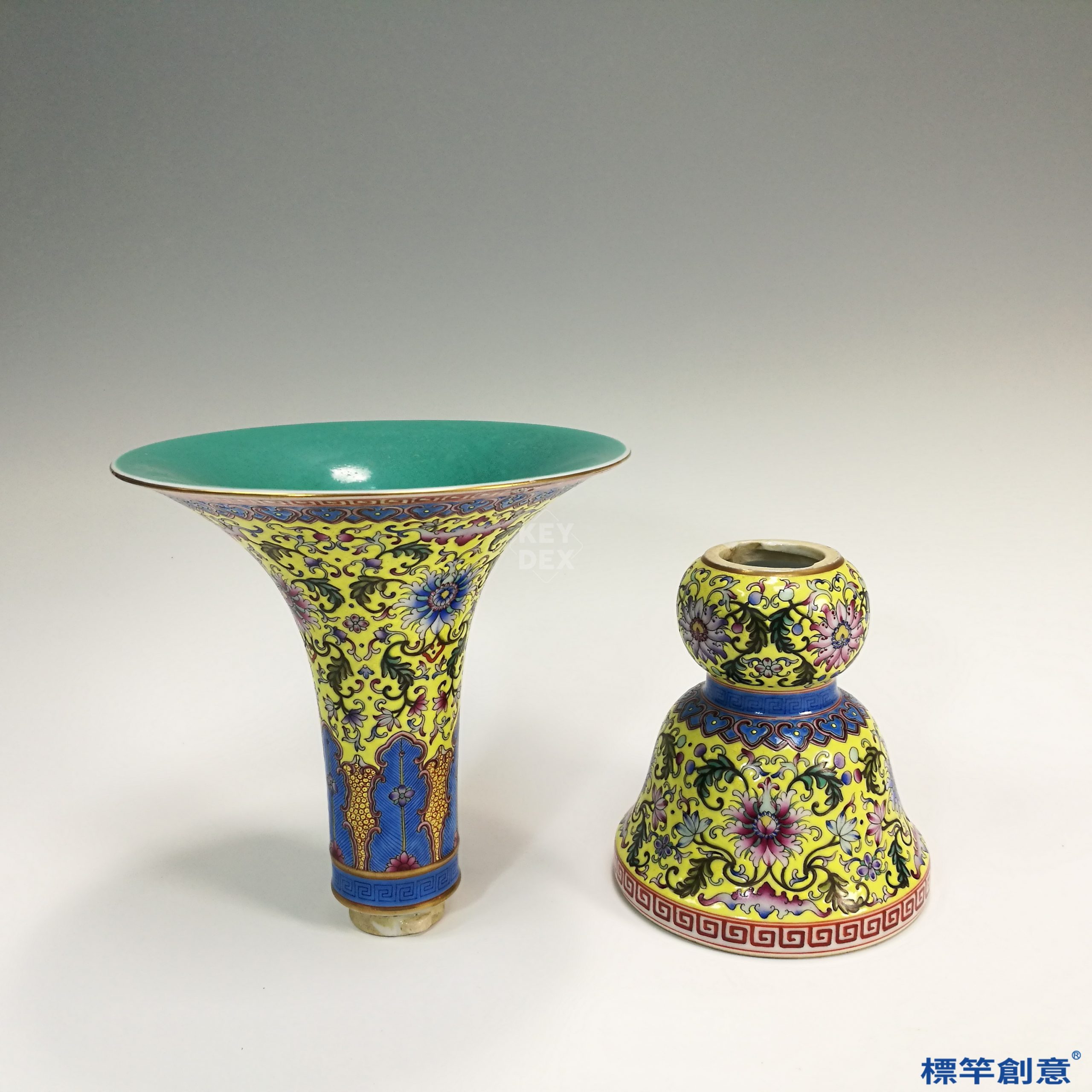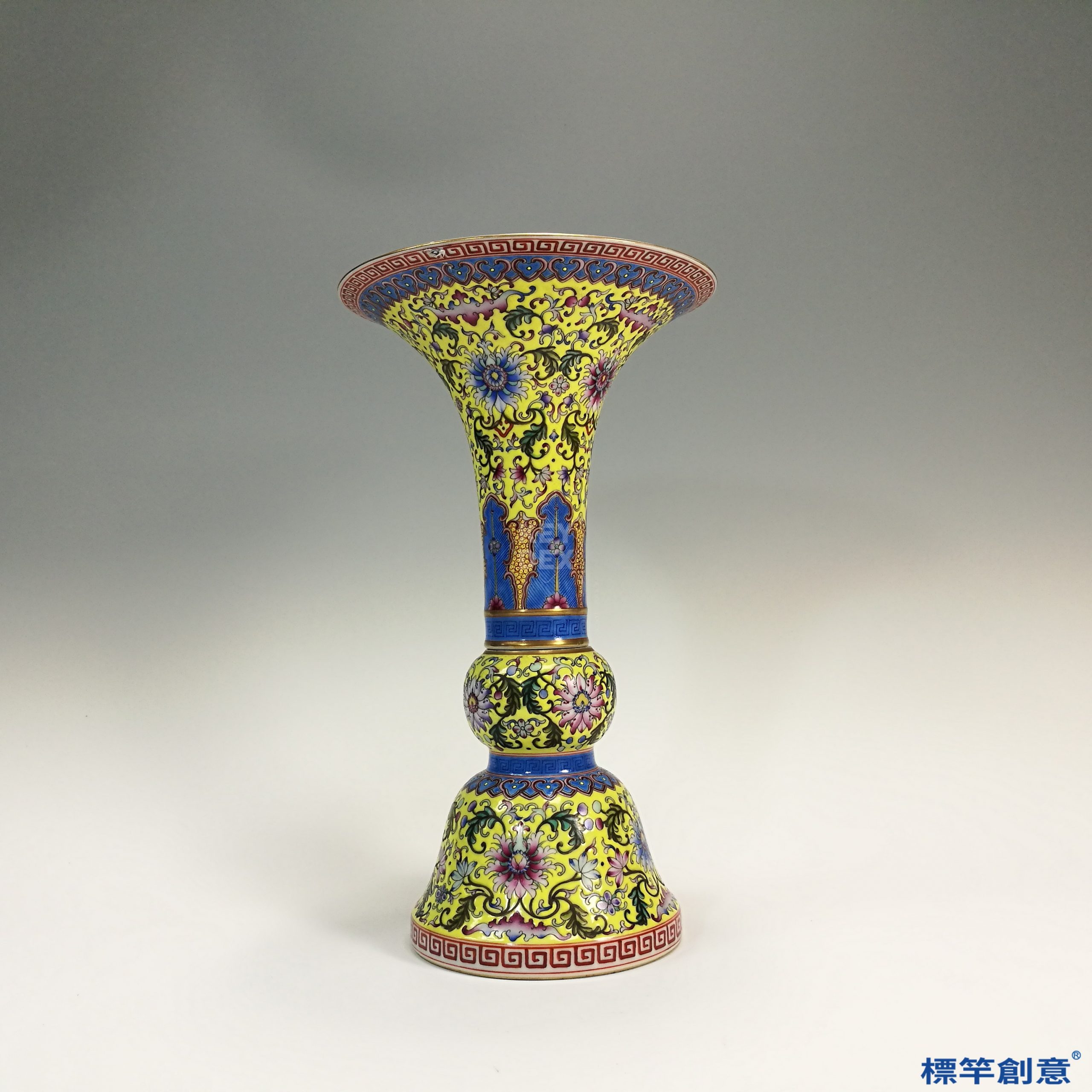 IA015 清代晚期景德鎮窯黃釉琺瑯彩繪仿古瓷觚