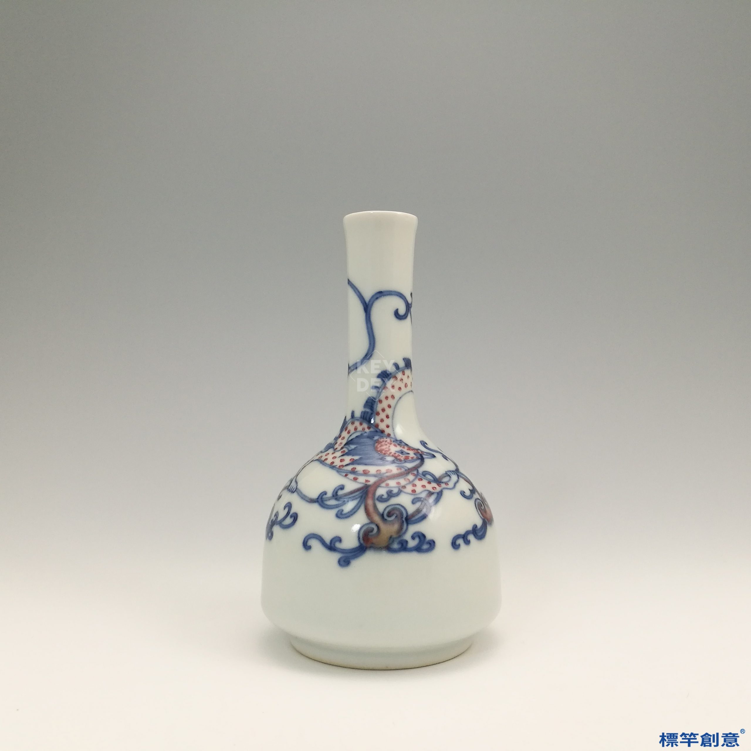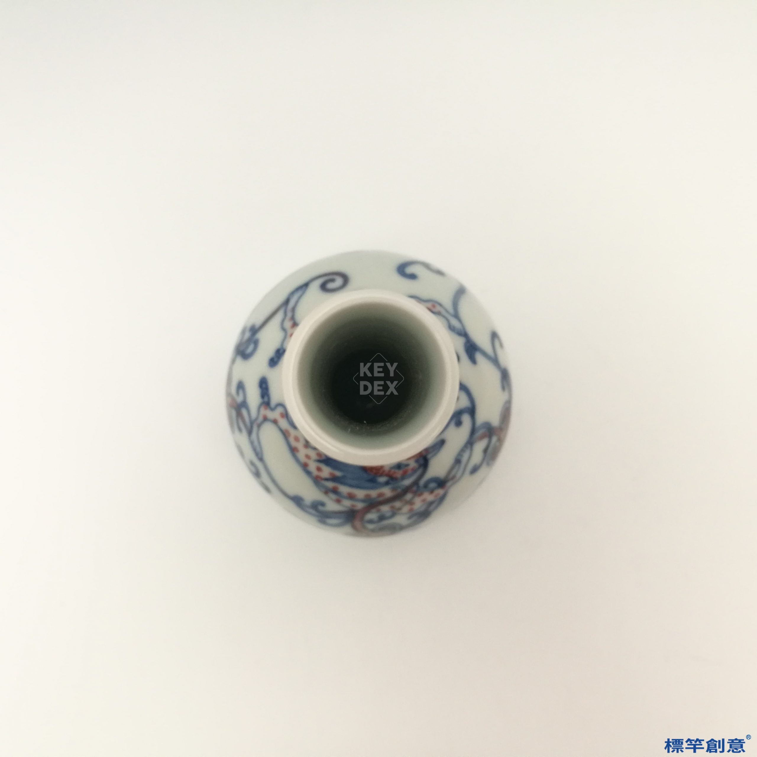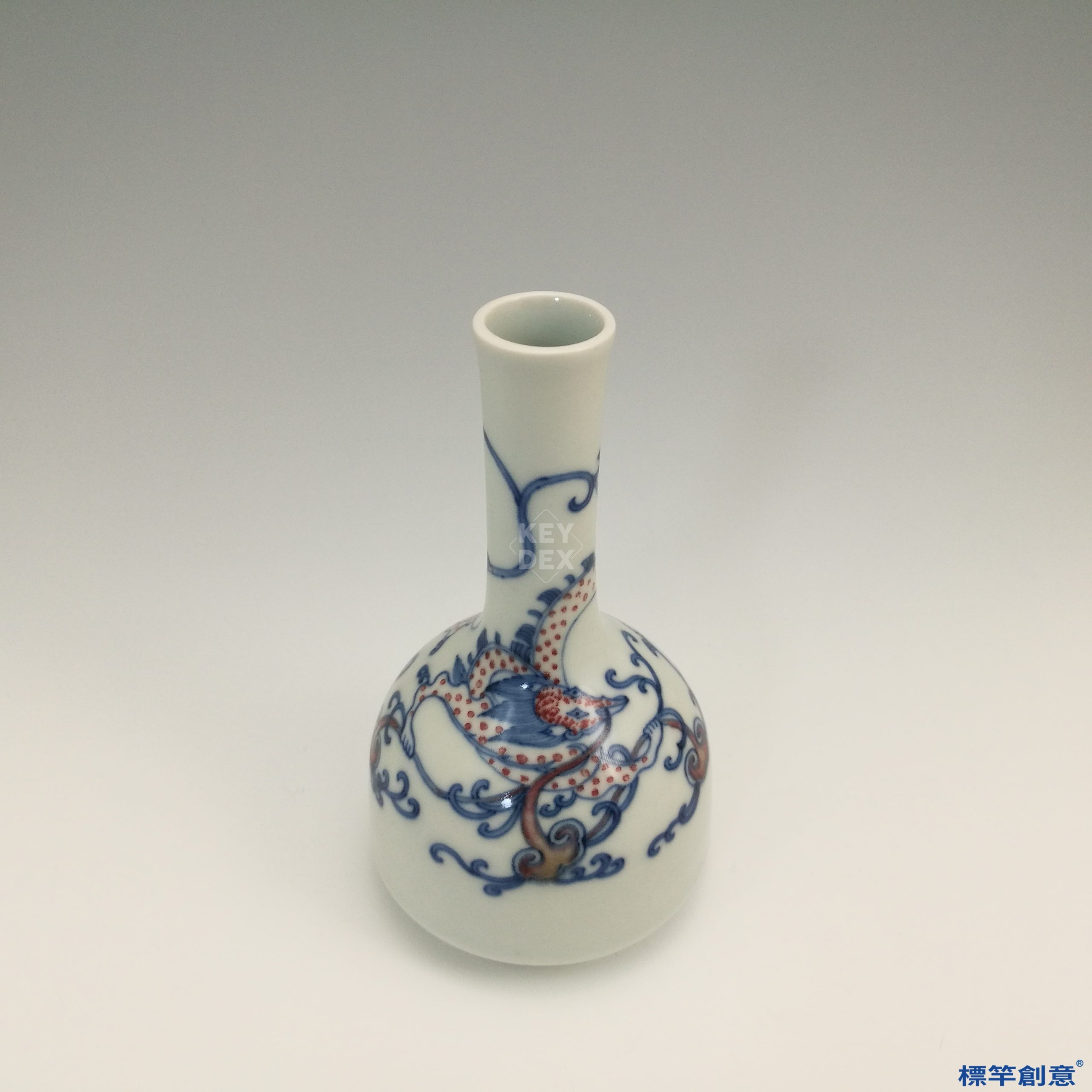 IA020 清代嘉慶景德鎮窯青花釉裡紅龍銜靈芝紋搖鈴尊