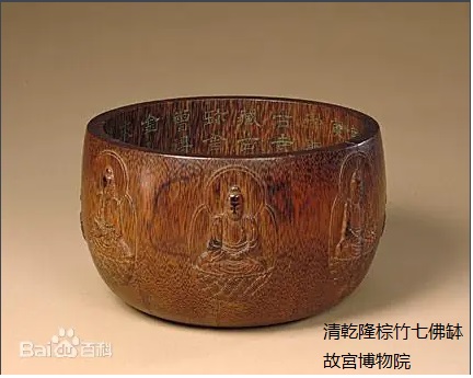 三,之後,用廣榔木刻出七佛鉢,廣榔木七佛鉢送京後,北京故宮誤判為棕竹雕刻,取名「棕竹七佛鉢」,此鉢木質鬆軟故沒有刻偈文。