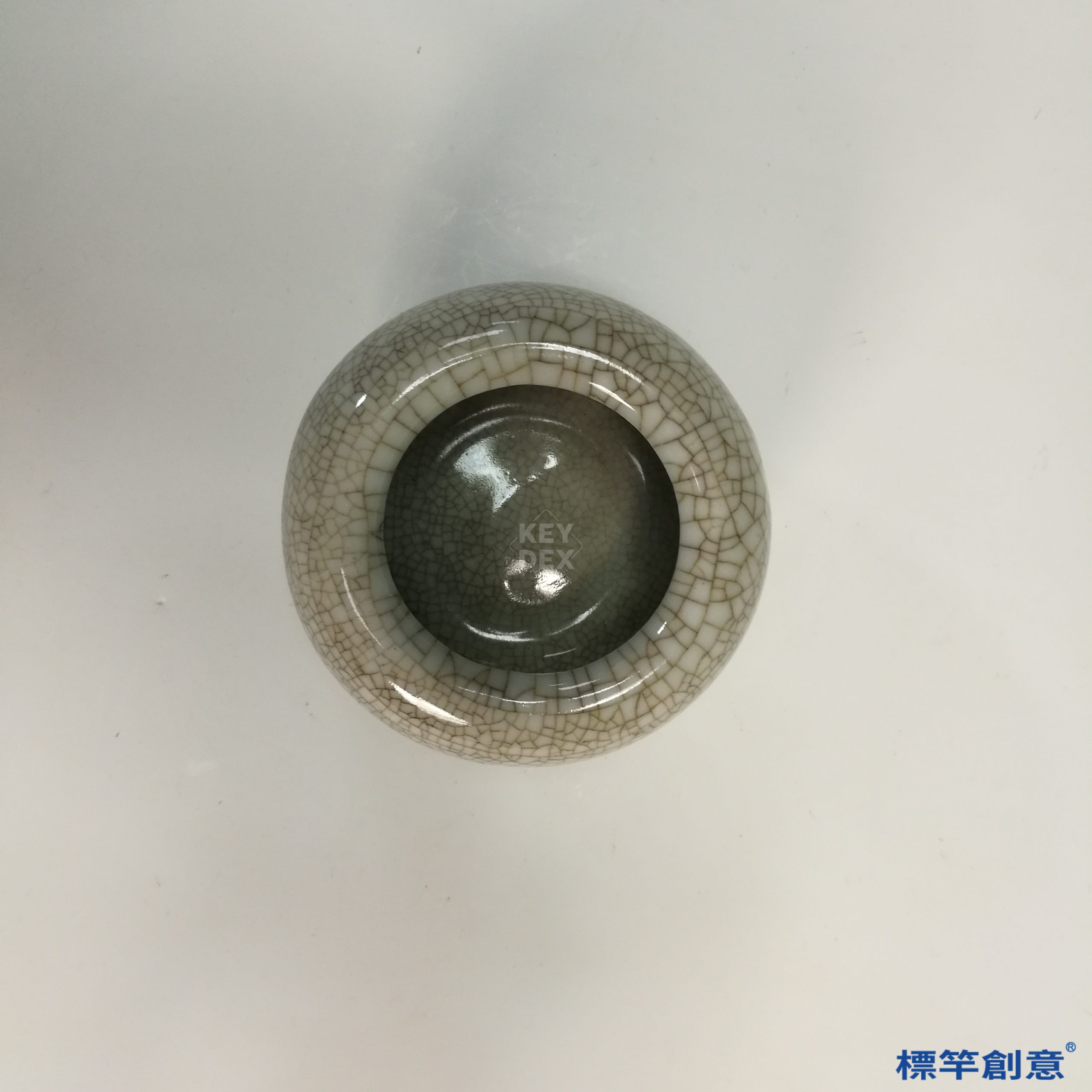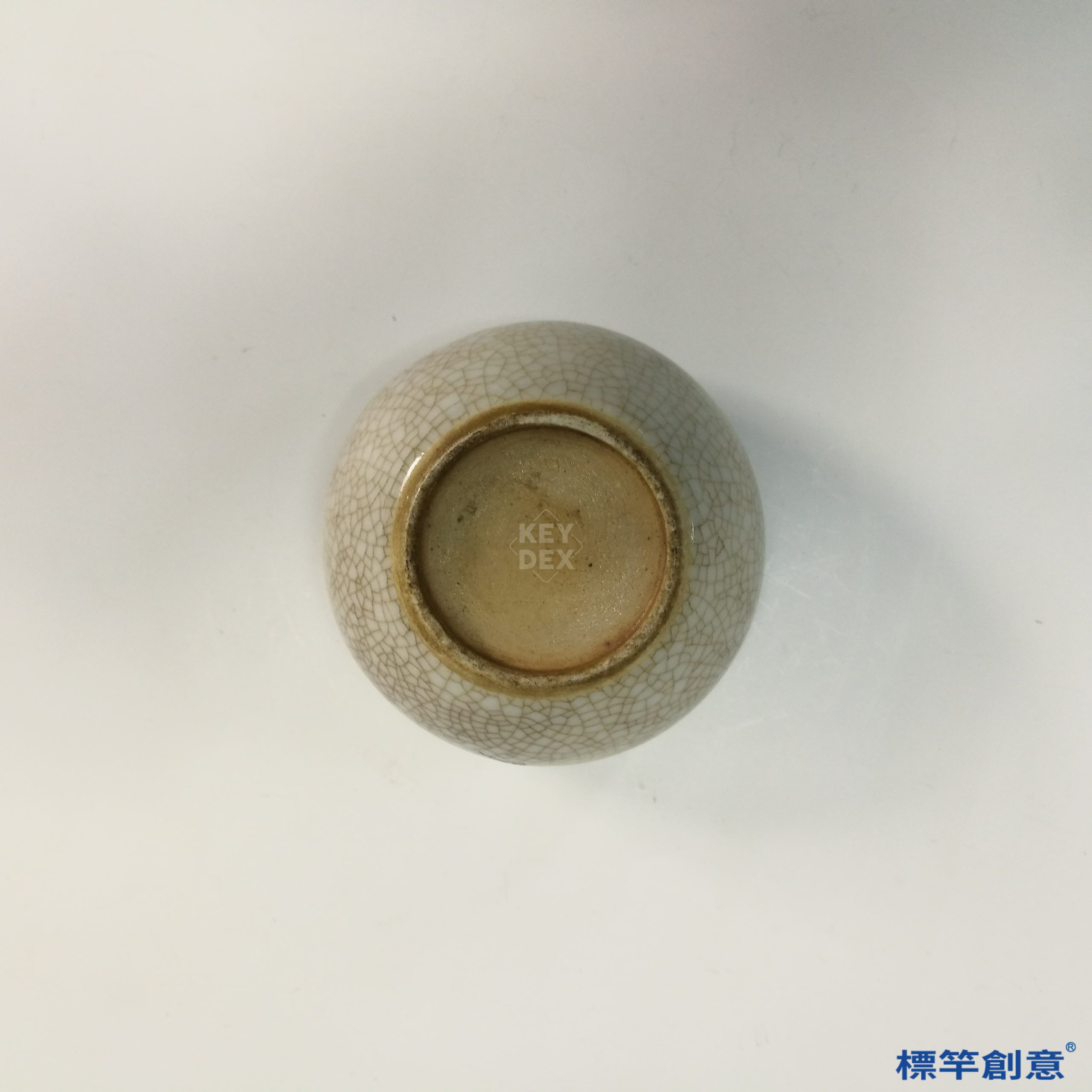 器形修坯完成後,施白釉入窯於還原焰中高溫燒製,燒成溫度約在1280℃左右。冰裂紋因胎釉冷熱收縮率差異,燒成冷卻後自然開片,形成紋理分明、錯落有致的冰裂裝飾。